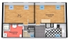 Lille entré/gang, opholdsstue med dobbeltdør til spisestue