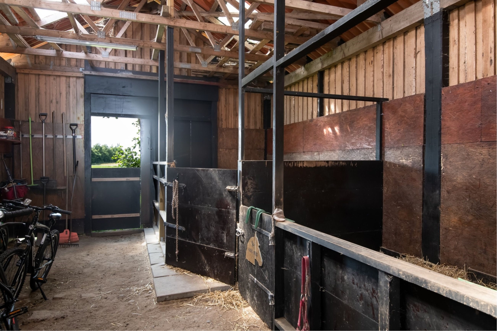70 m² medbygget garage med opvarmet hobbyrum og fyrrum med moderne fastbrændselskedel, hvilket giver billig opvarmning af hele ejendommen. 44 m² fritliggende bygning opført i 2015 i dag med 2 små hestebokse, men vil være anvendelig til flere formål.