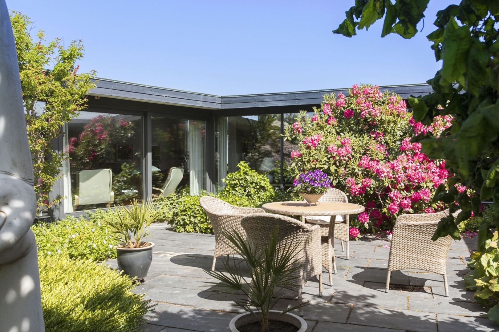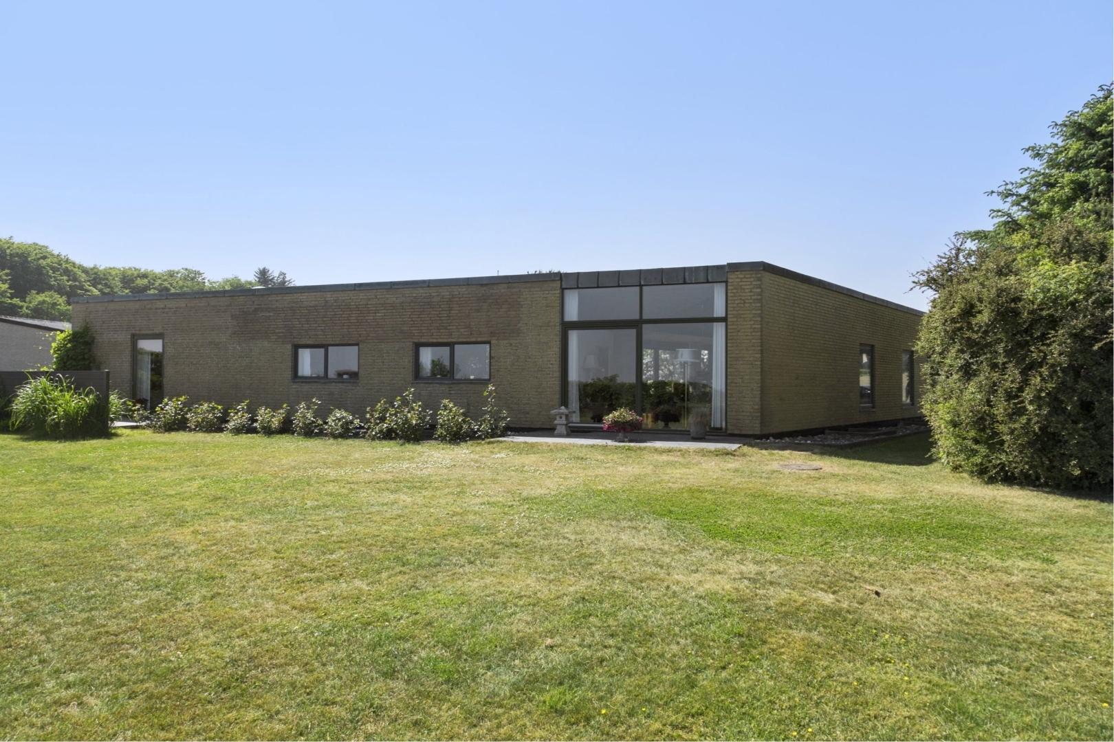 Villaen og den dobbelte carportbygning danner rammen om en helt lukket og ugeneret gårdhave hvor I her vil I kunne nyde privatheden.