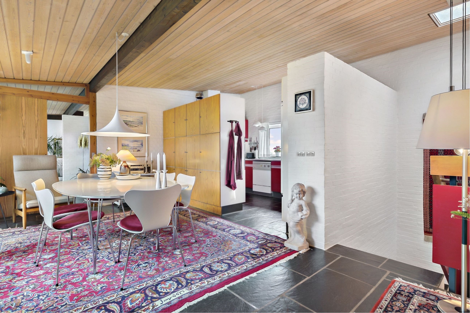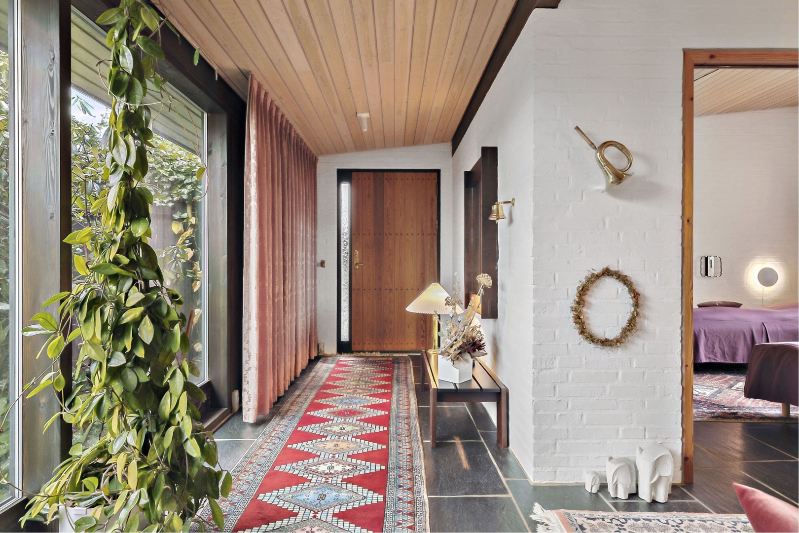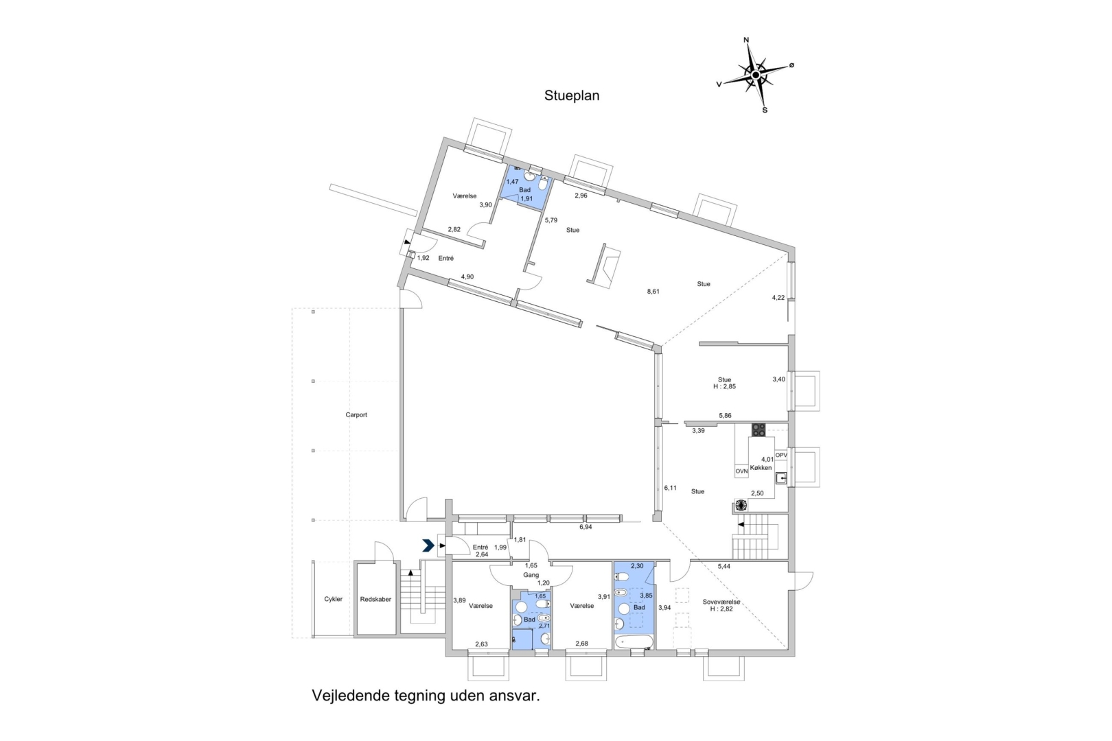 Villaen indeholder: Entre - Børne-/gæsteværelse - Badeværelse med bruseniche - Dejlig opholdsstue med åben pejs (afmeldt) og et ca. 4 meter bredt østvendt gulv-til-loft vinduesparti hvor den smukke havudsigt kan nydes - Spisestue med havudsigt - Køkken alrum med havudsigt og udgang til den store gårdhave via det store skydedørsparti - Elegant nedgang til kælder via en brugervenlig trappe - Stort soveværelse med masser af skabe, udgang til morgenterrasse samt direkte adgang til badeværelse - Stort badeværelse med væghængt toilet, badekar, bruseniche, klinkegulv med gulvvarme samt 2 ovenlysvinduer.