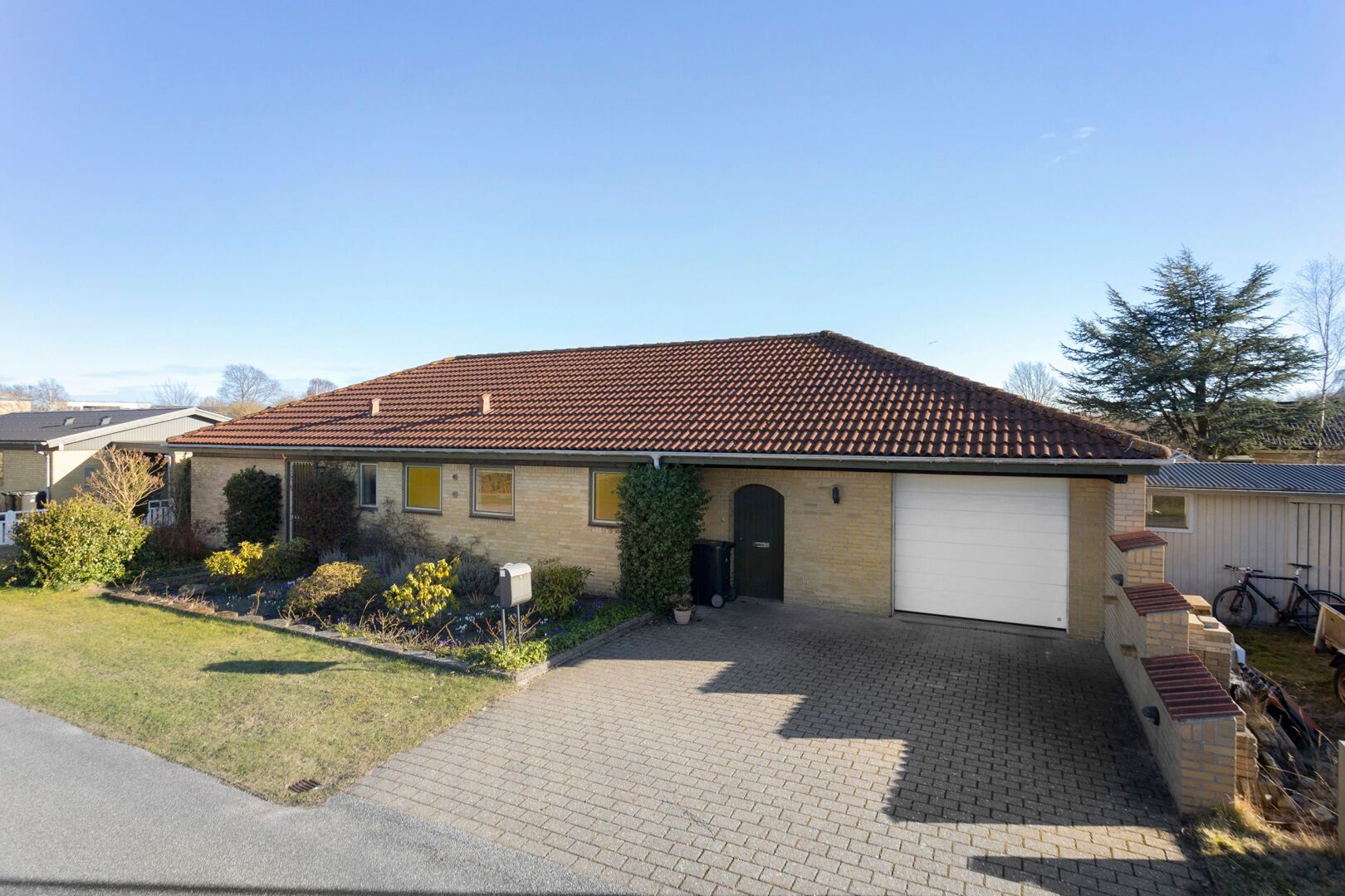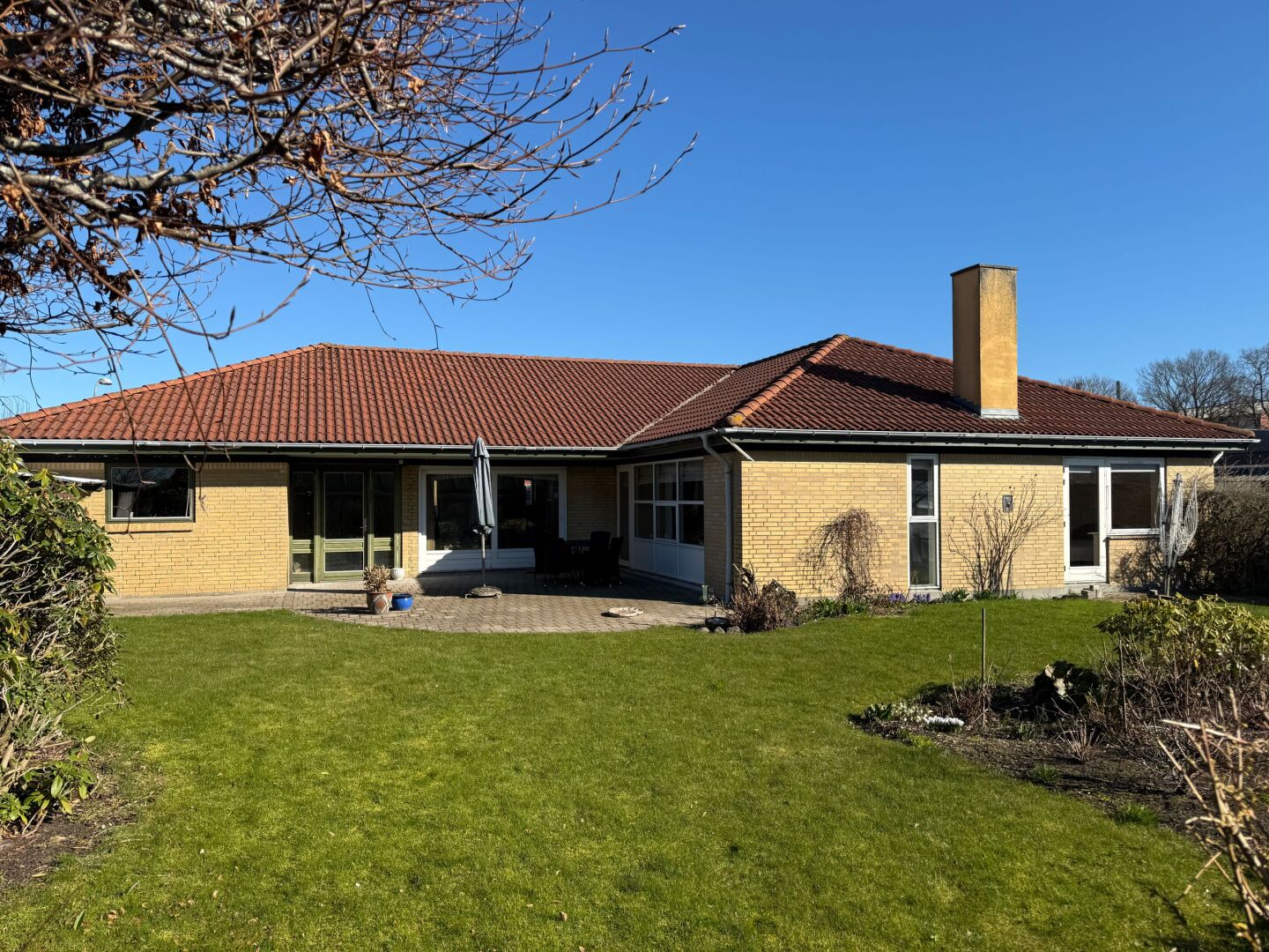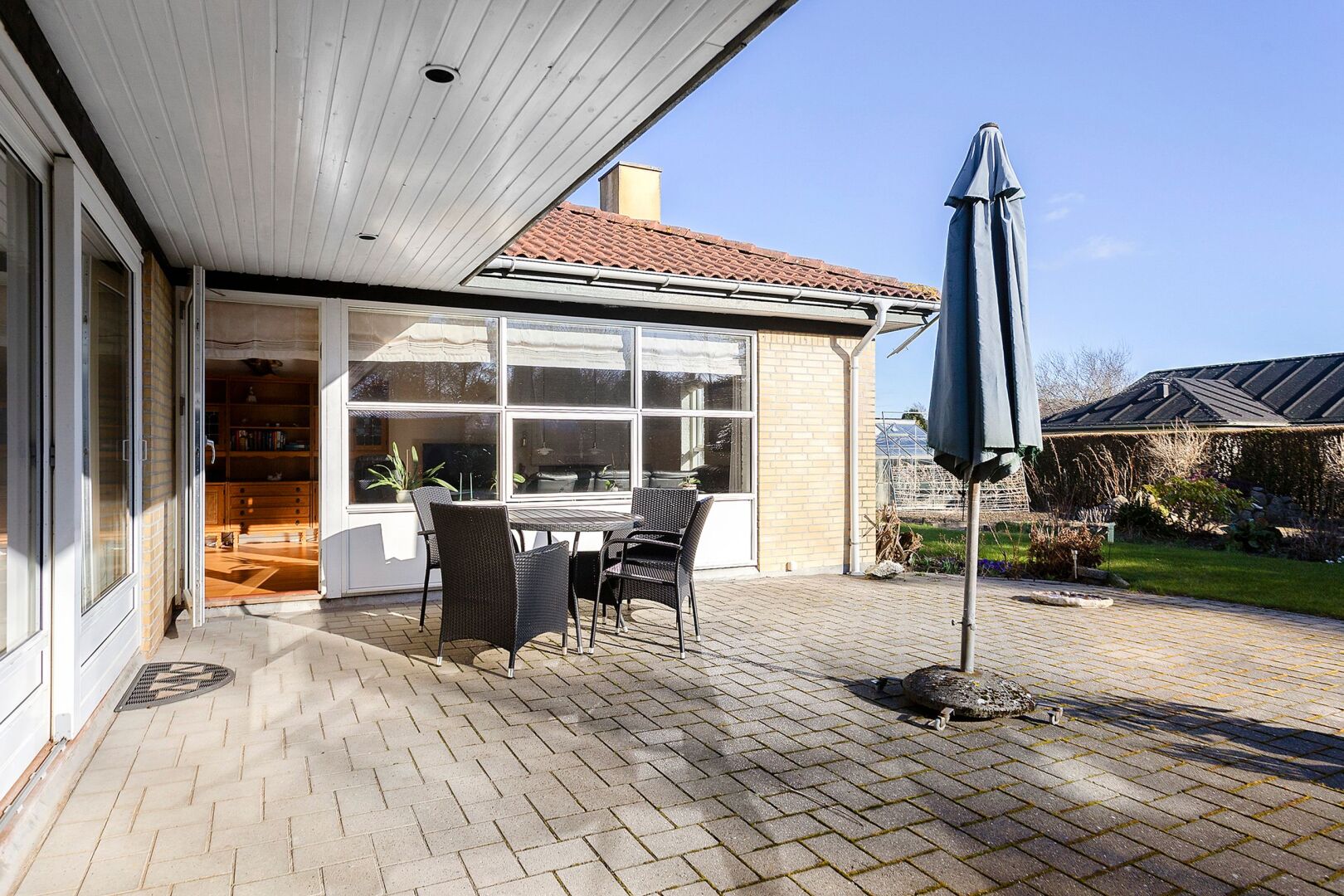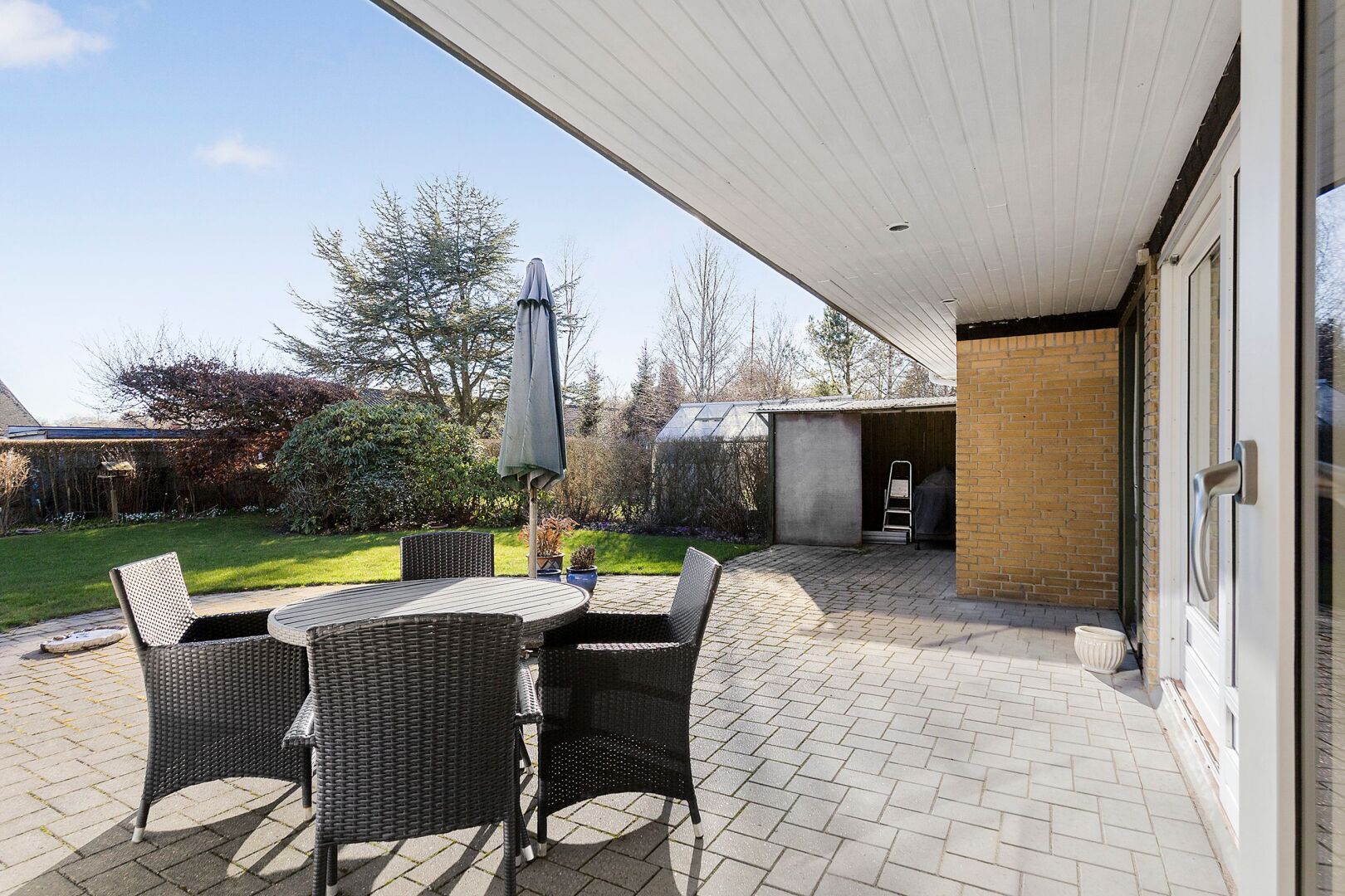 Hertil kommer en skøn sydvendt have samt en delvist overdækket terrasse, der indbyder til udeliv når temperaturen er til det.