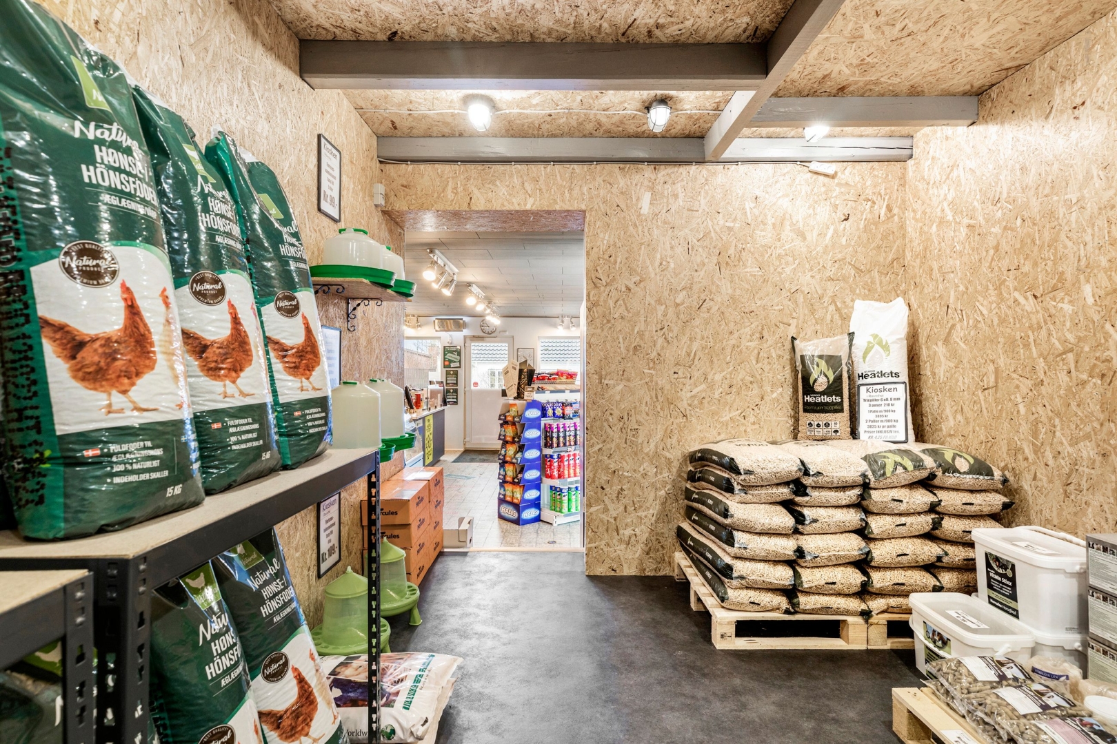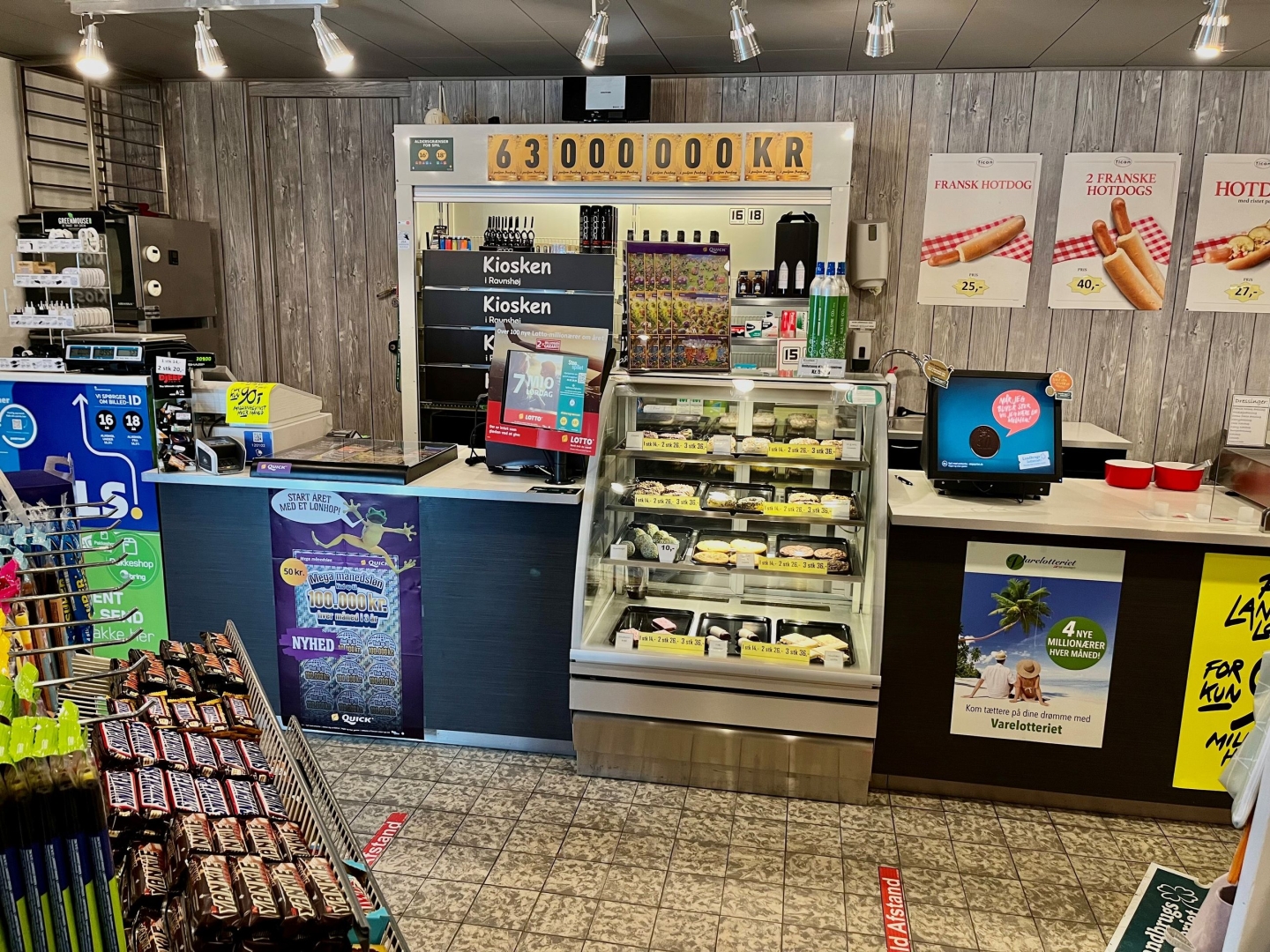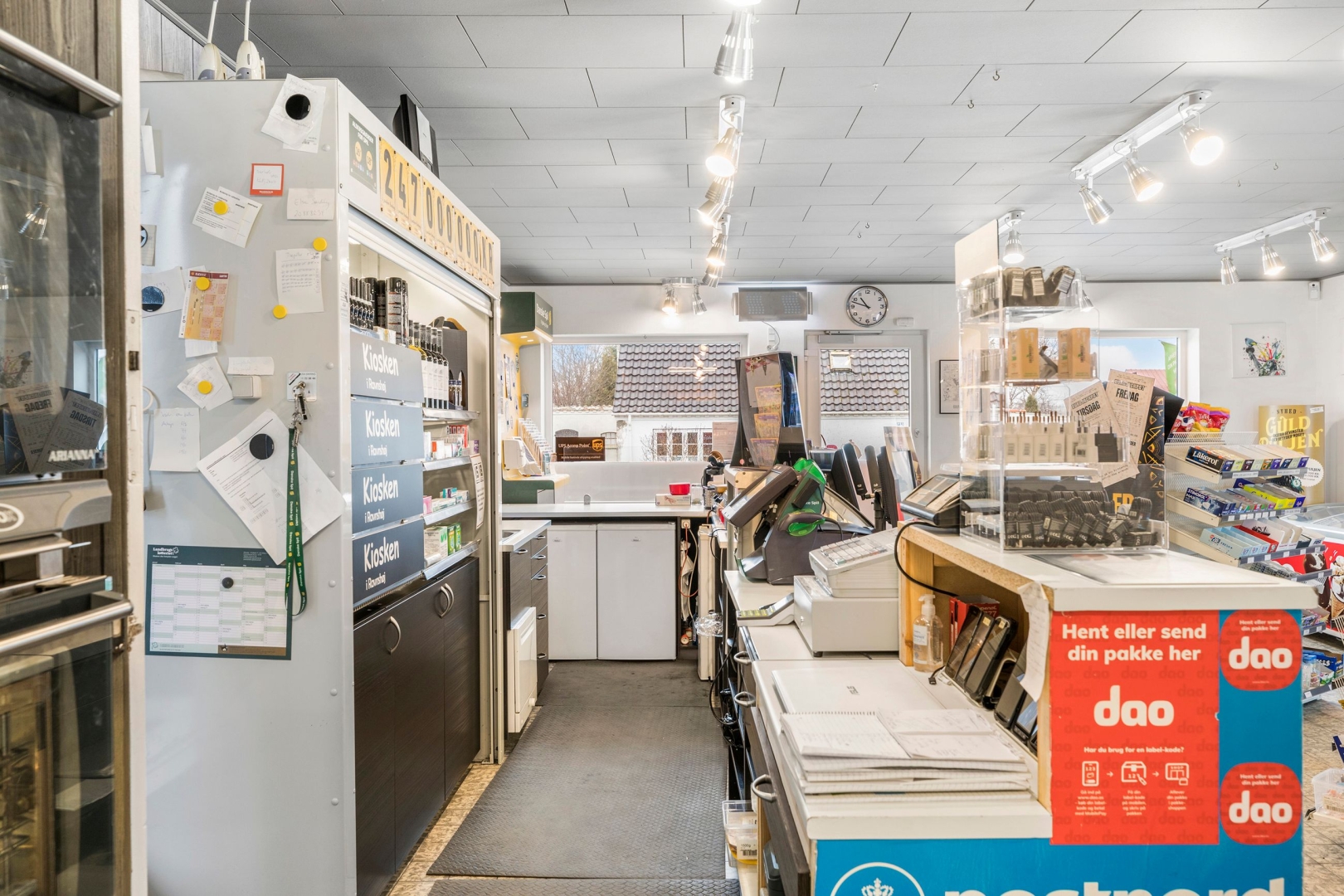 Butikslokalet har mange anvendelsesmuligheder. Drives i dag som velfungerende kiosk med klassiske kiosk-varer som slik, chips, øl og vand, tobaksvarer, kage samt franske hotdogs. Fastfood delen kan nemt udvides, hvis man har lyst til at lægge mere fokus herpå. Derudover er der en stor omsætning på tips og lotto, og kiosken fungerer også som byens pakkeshop. Der er endvidere en afdeling med salg af dyrefoder, samt træpiller og flaskegas. Gode lagerlokaler med masser af muligheder, da det har støbt gulv og udgang til garage samt trappe til loftrum.