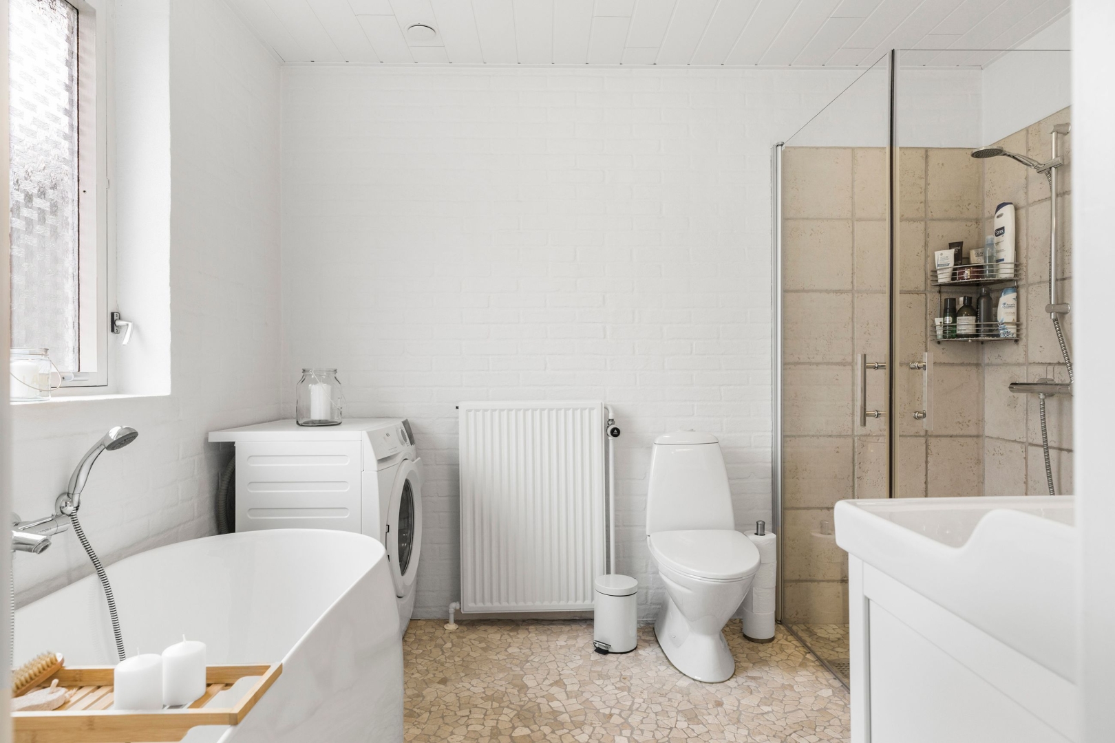 Udvendig er huset malet og fremstår i fin stand. Der er hulmursisoleret, isoleret mellem dæk og termoruder i både træ og plastrammer
