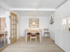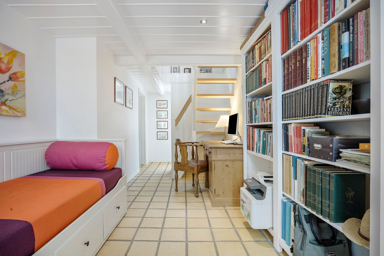 Indretningen af boligen er både hyggelig og praktisk. Stueplan rummer en entré med skydedørsgarderobe og klinkegulv, et bryggers med plads til vaskefaciliteter, samt et køkken med fyldningslåger, træbordplade og adgang til spisestuen. Spisestuen og opholdsstuen byder på de originale trægulve, der tilføjer varme og autenticitet. Yderligere er der et kombineret entré- og kontorareal med gulvvarme, elegant trappe til første sal og udgang til solgården. Badeværelset i stueplan har gulvvarme, klinker og en praktisk bruseniche.