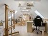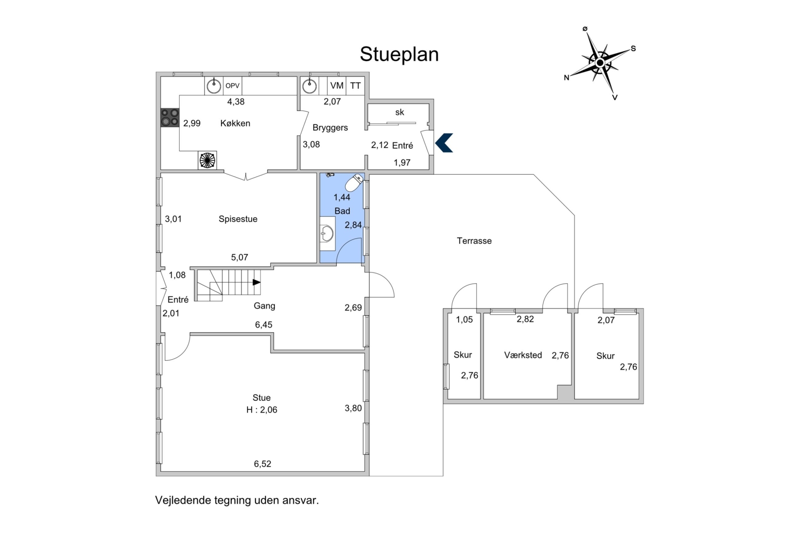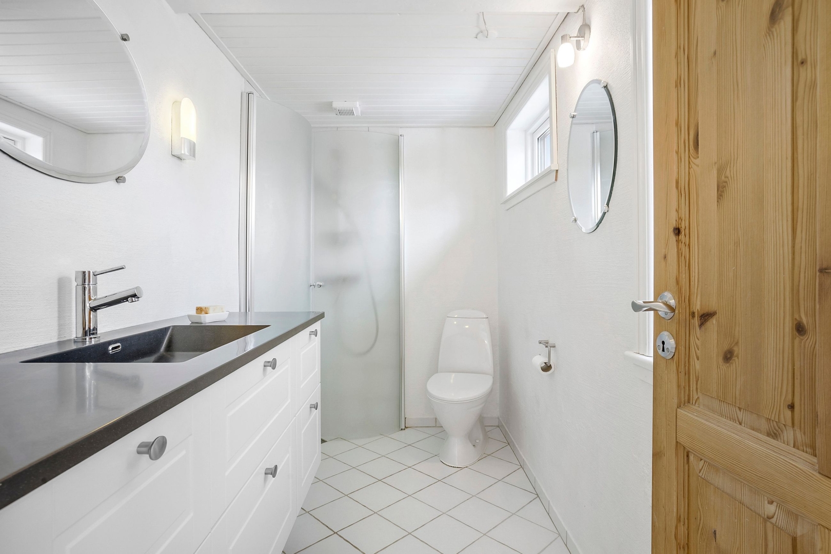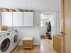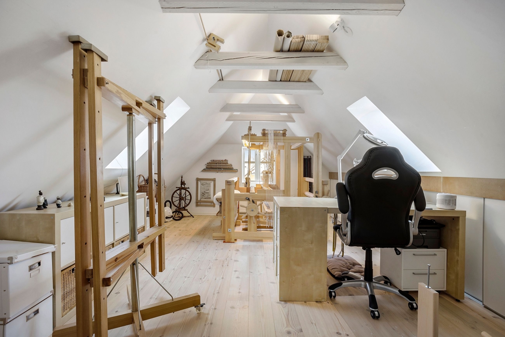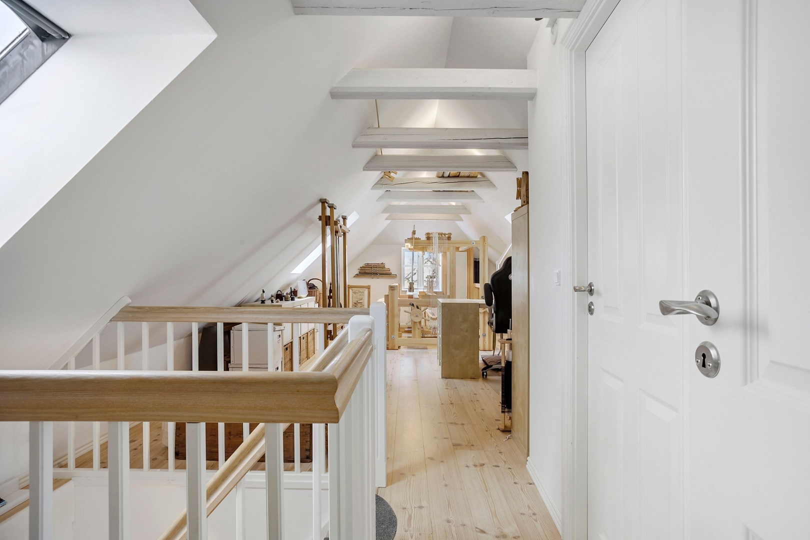 På første sal finder I et stort soveværelse med loft til kip, synlige hanebånd og skyde skabe, et badeværelse med kvist og bruseniche, samt et rummeligt repos, der fx kan bruges som ekstra værelse eller aktivitetsrum. Detaljer som skunkopbevaring med skyde skabe, gavlvinduer og tagvinduer gør overetagen både funktionel og indbydende.
