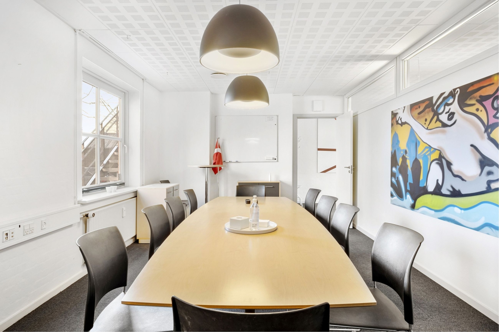 lokale - kontorlandskab med plads til 6 medarbejdere - kopirum - stort mødelokale i forbindelse med
