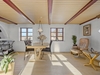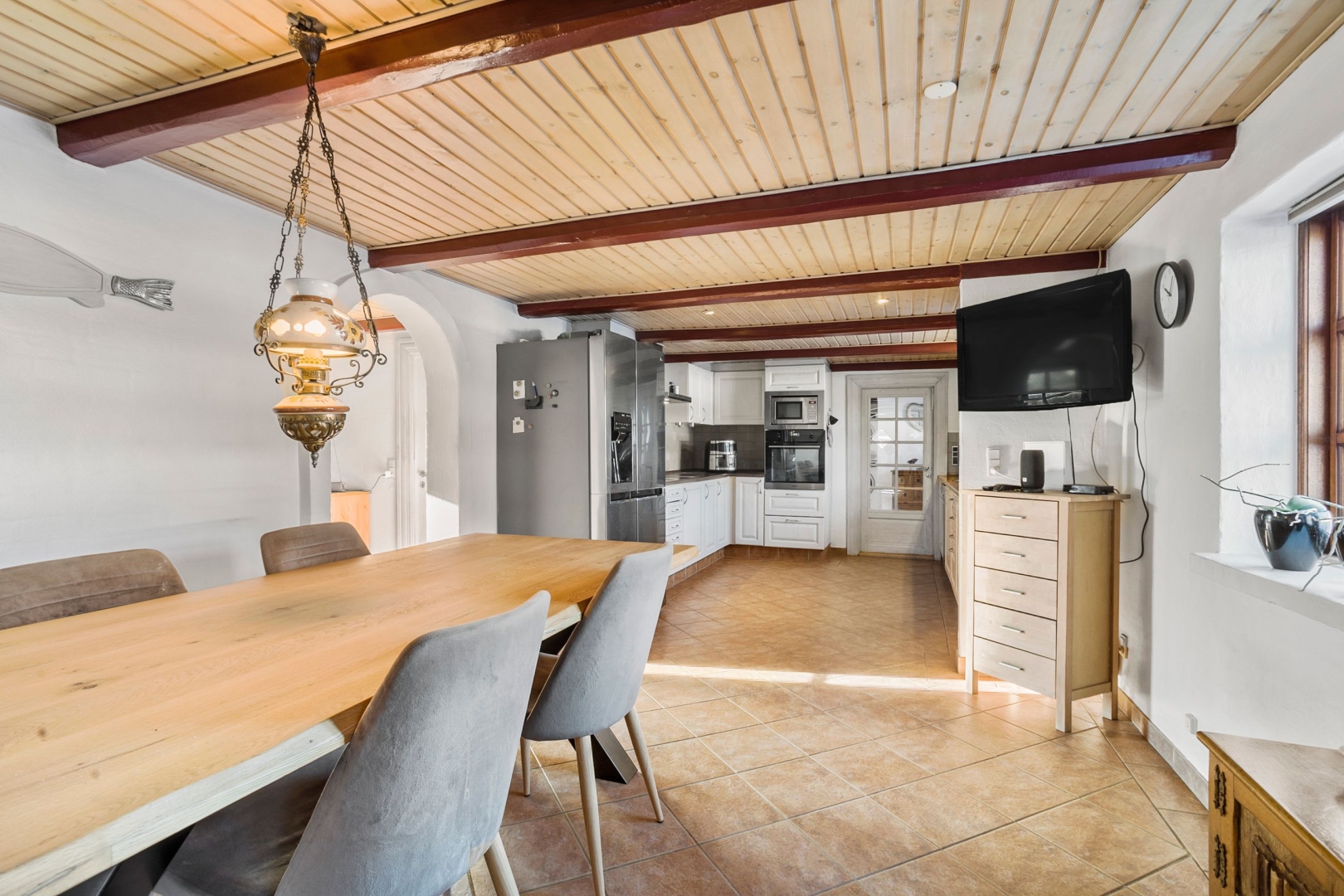 Indenfor møder I et dejligt køkken-alrum med klinkegulv, gulvvarme, synlige bjælker og en hyggelig brændeovn, som skaber en varm atmosfære. Opholdsstuen har ligeledes synlige bjælker, gulvvarme og direkte udgang til en stor, sydvendt terrasse, som er flisebelagt og delvist afgrænset af en havemur perfekt til sommerdage og hyggelige stunder i solen. Fra fordelingsgangen er der adgang til terrassearealerne mod syd, mens soveværelset byder på trægulv og faste skabe. Badeværelset er rummeligt og indrettet med klinkegulv med gulvvarme, hjørnebadekar og separat bruseniche. De to disponible rum det store bryggers med bordplade, vask, vaskemaskine, tørretumbler og udgang, samt værelset med faste skabe udgør praktiske og anvendelige ekstra kvadratmeter, selvom de ikke tæller med i det officielle boligareal.