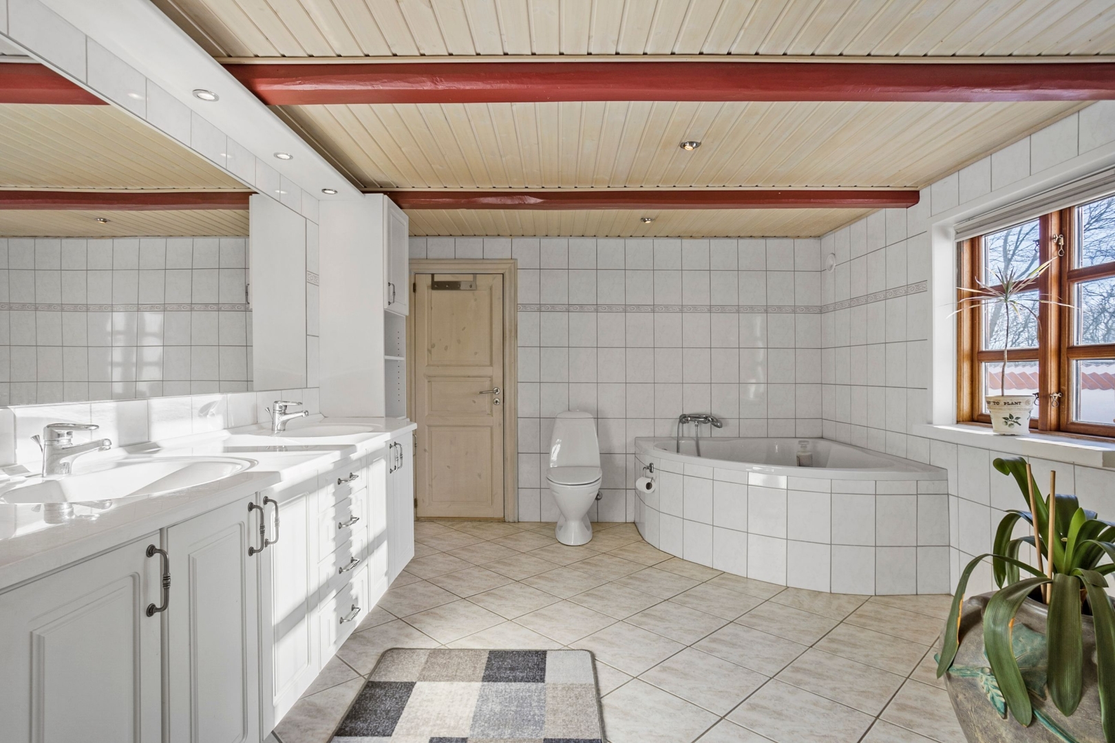 Er I på udkig efter en ejendom med mulighed for jagt eller hestehold, og samtidig ønsker jer en bolig i god stand med et overskueligt antal udhuskvadratmeter og masser af udenomsplads? Så bør I se nærmere på Trinkærvej 2 en harmonisk ejendom med en smuk, hvid facade, klassiske sprossevinduer og et flot rødt tegltag, som pryder hele bygningsmassen.