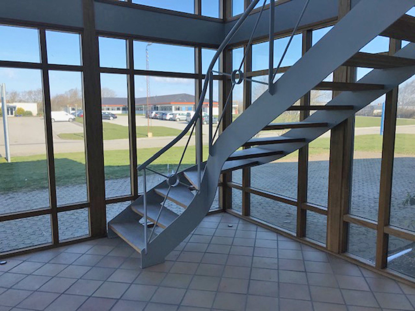 fører en trappe op til førstesalen, hvor der findes et stort møderum/showroom samt arkivfaciliteter. I stueplan