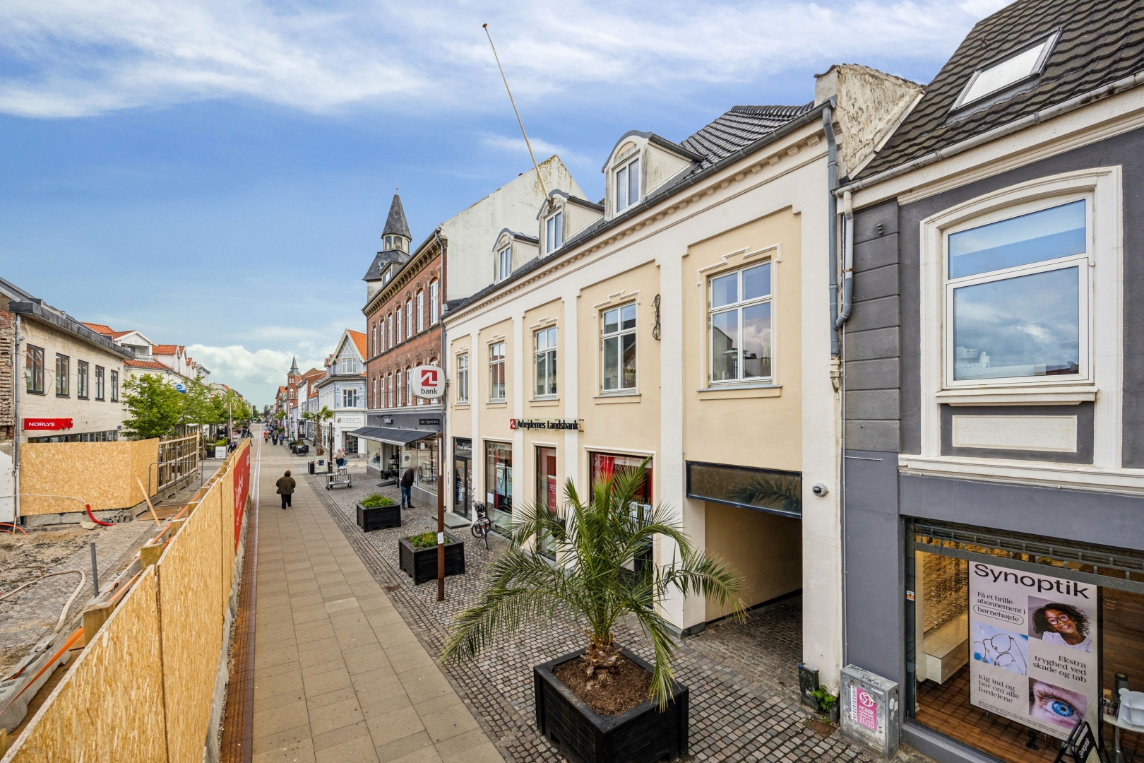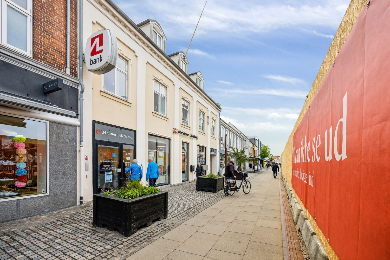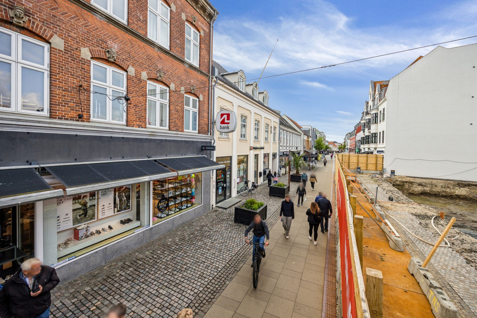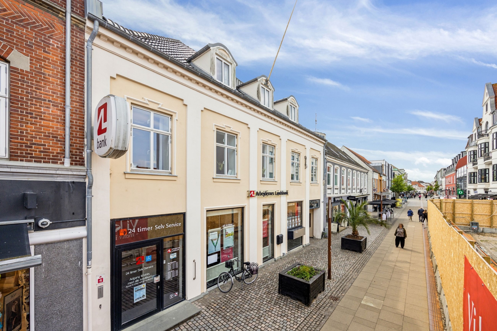 I markant byejendom med en aaaa+ beliggenhed udlejes 212 regulært butikslokale med flere udstillingsvinduer med tilhørende lager, kontor og toilet, samt mulighed for at til leje mindre lager i kælder. Lejemålet er beliggende i stueplan med attraktive butikker som naboer og genboer. Her kan bl.a. nævnes Skoringen Norlys, Restaurant Impire, Søstrene Grene, Thiele, Name it, Change, Normal, Only, Jack & Jones og H&M og mange flere.