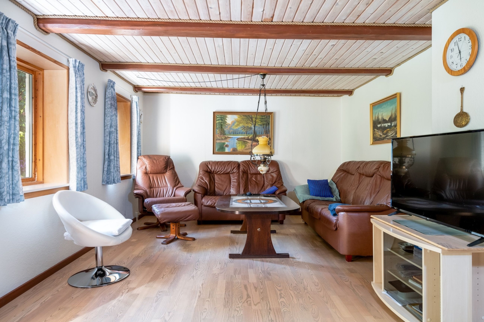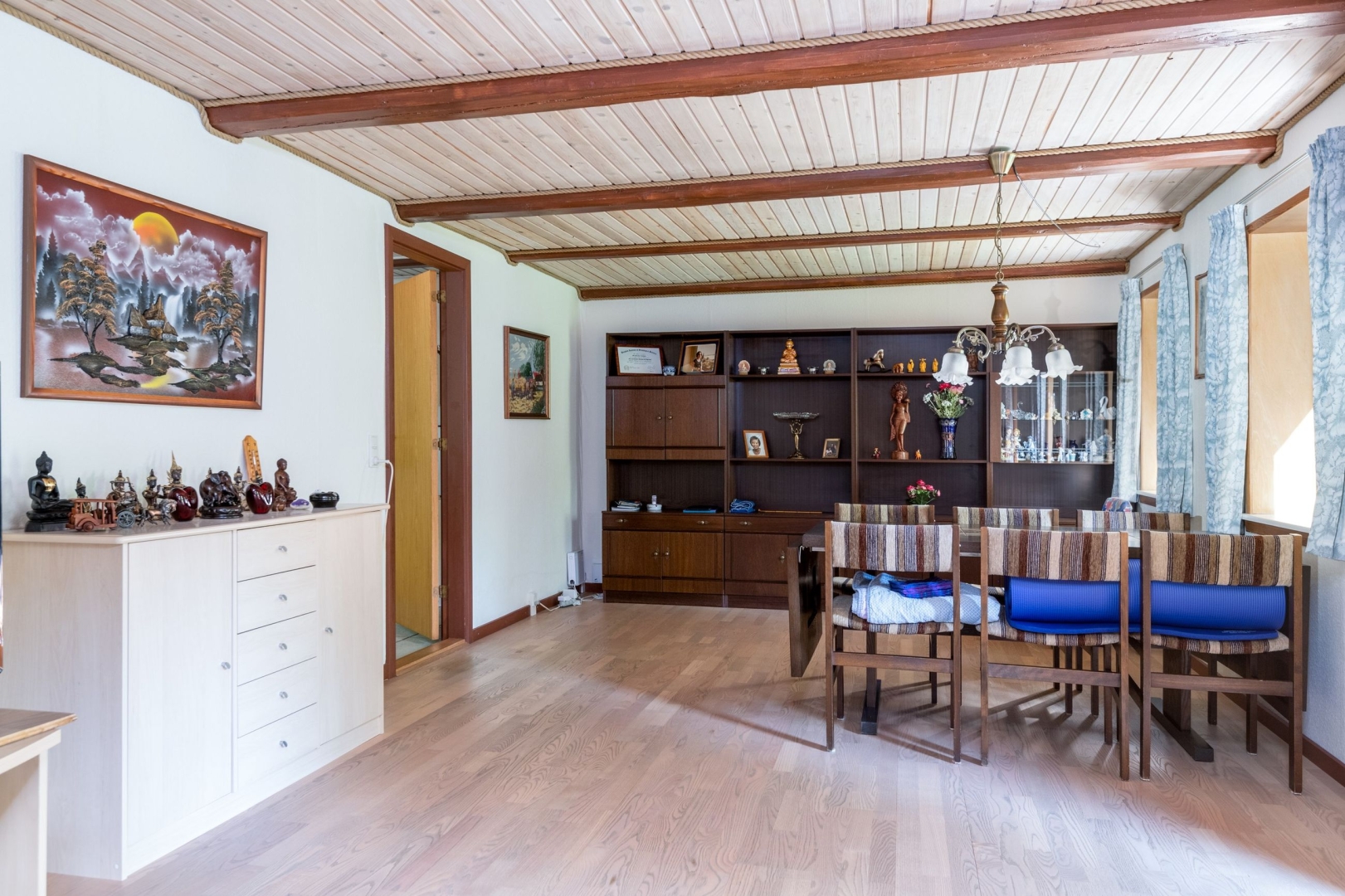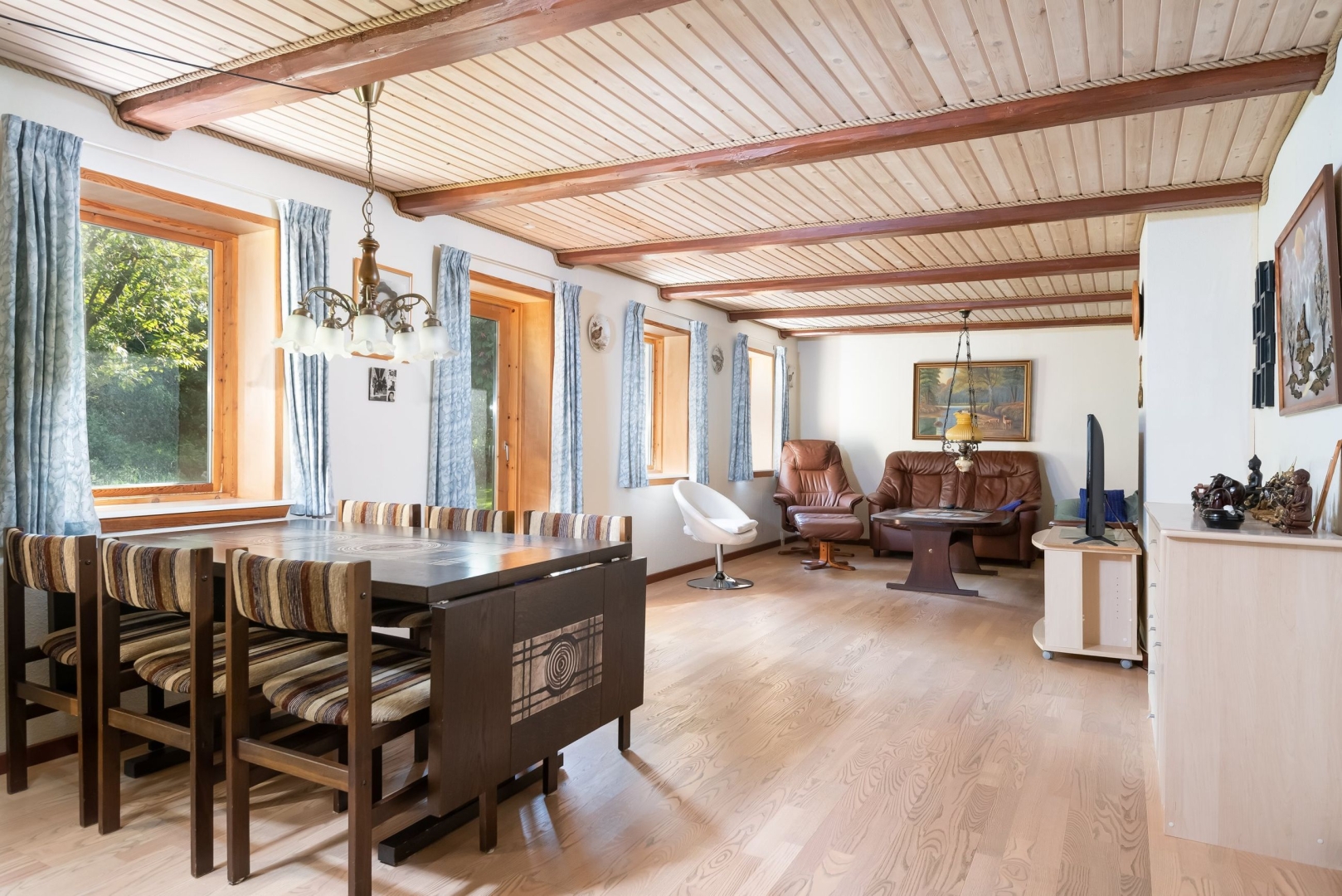 Boligen der er velindrettet med entré/bryggers med bordarrangement og plads til vaskemaskine og tørretumbler, pænt lyst køkken med god spiseplads, hyggelig spise- og opholdsstue med udgang til sydvendt have, lyst badeværelse med bruseniche, stort aktivitetsværelse, soveværelse og værelse. God trappeopgang fra entré til 1. sal med repos og 2 gode store værelser med loft til kip.