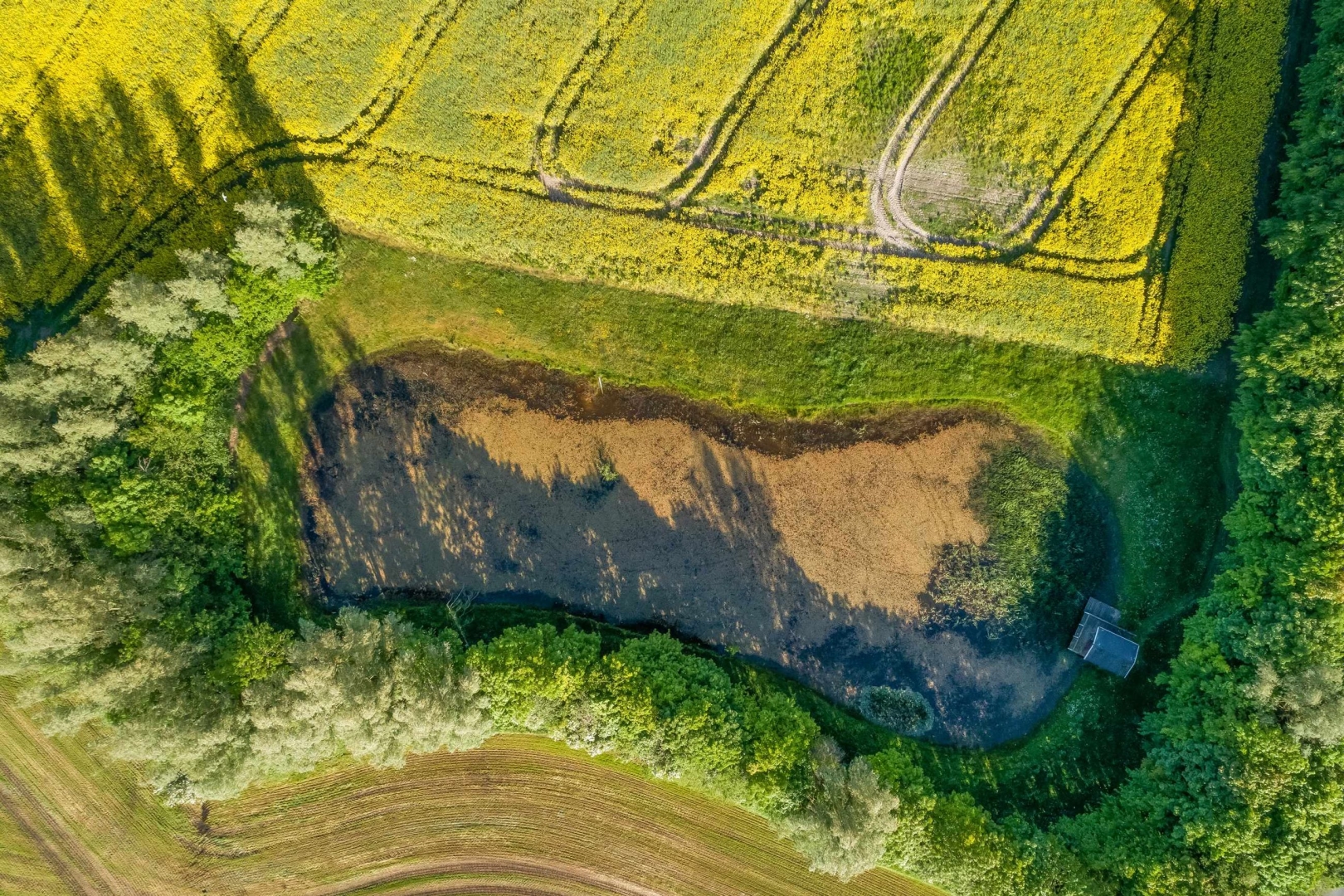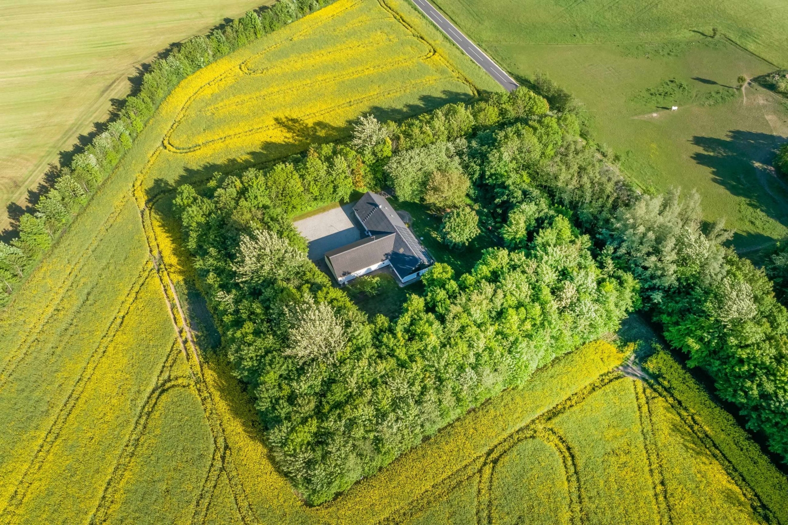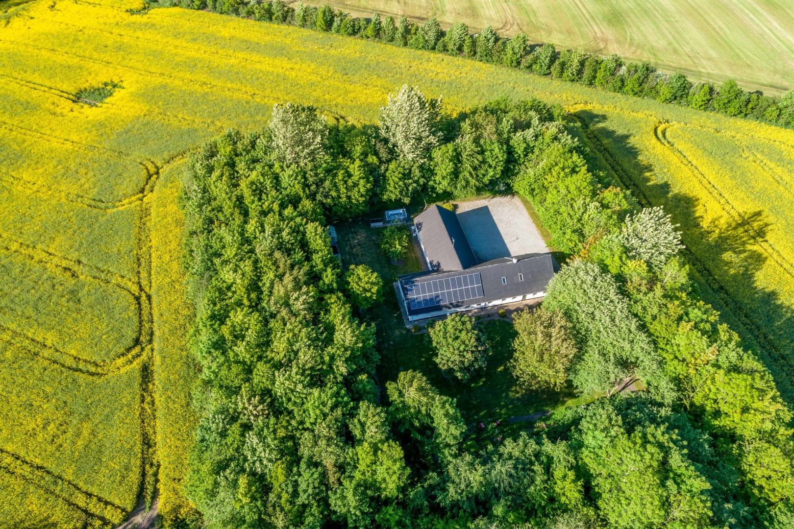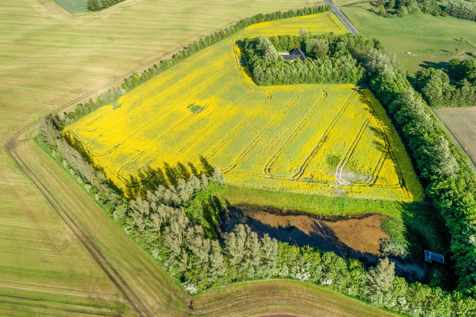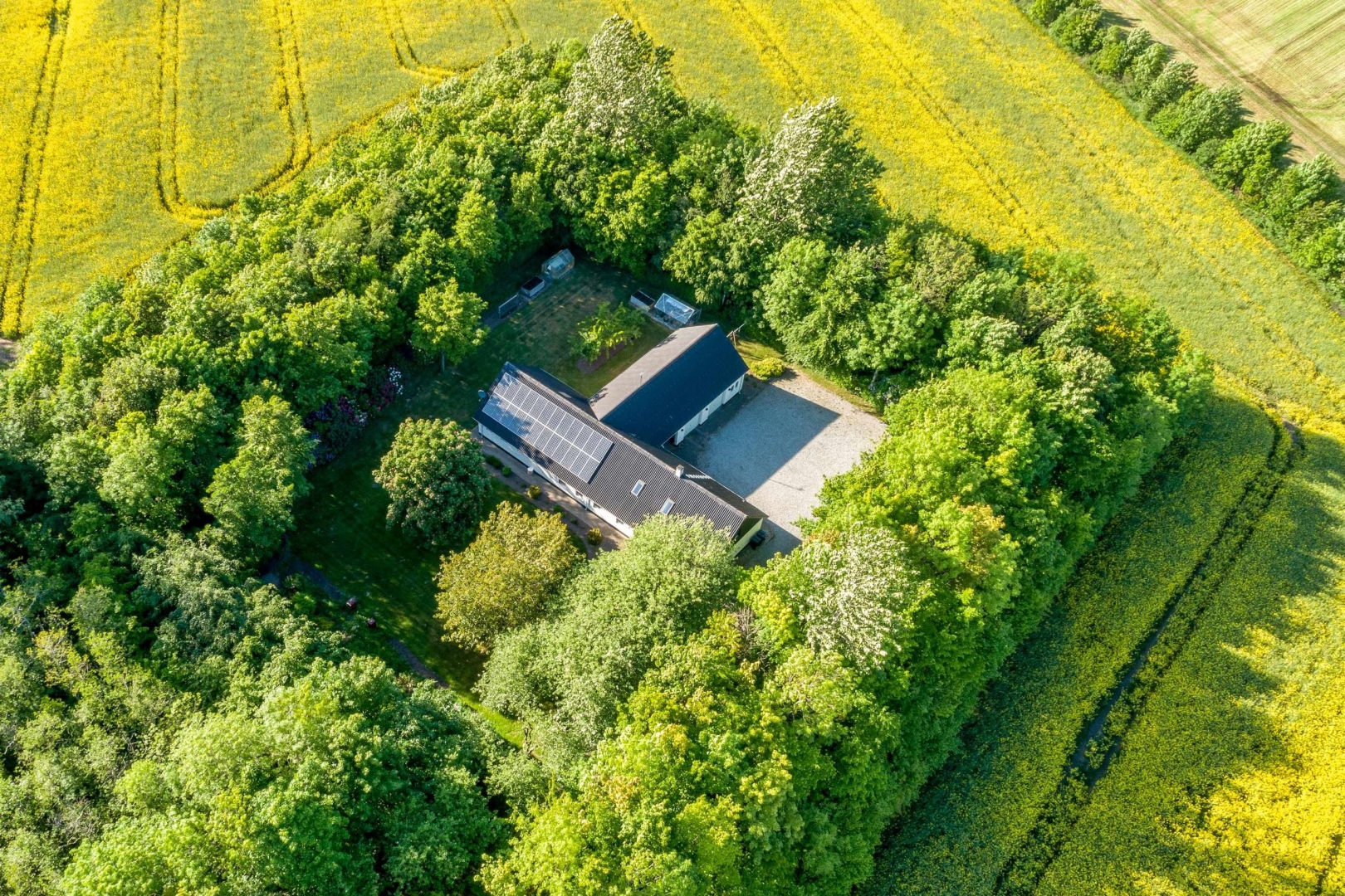 Hele ejendommens jordtilliggende er samlet ved bygningerme og er randbeplantet. Yderst på matriklen er der en stor flot sø. Ejendommens markareal er EU-berettiget og på tiden bortforpagtet.