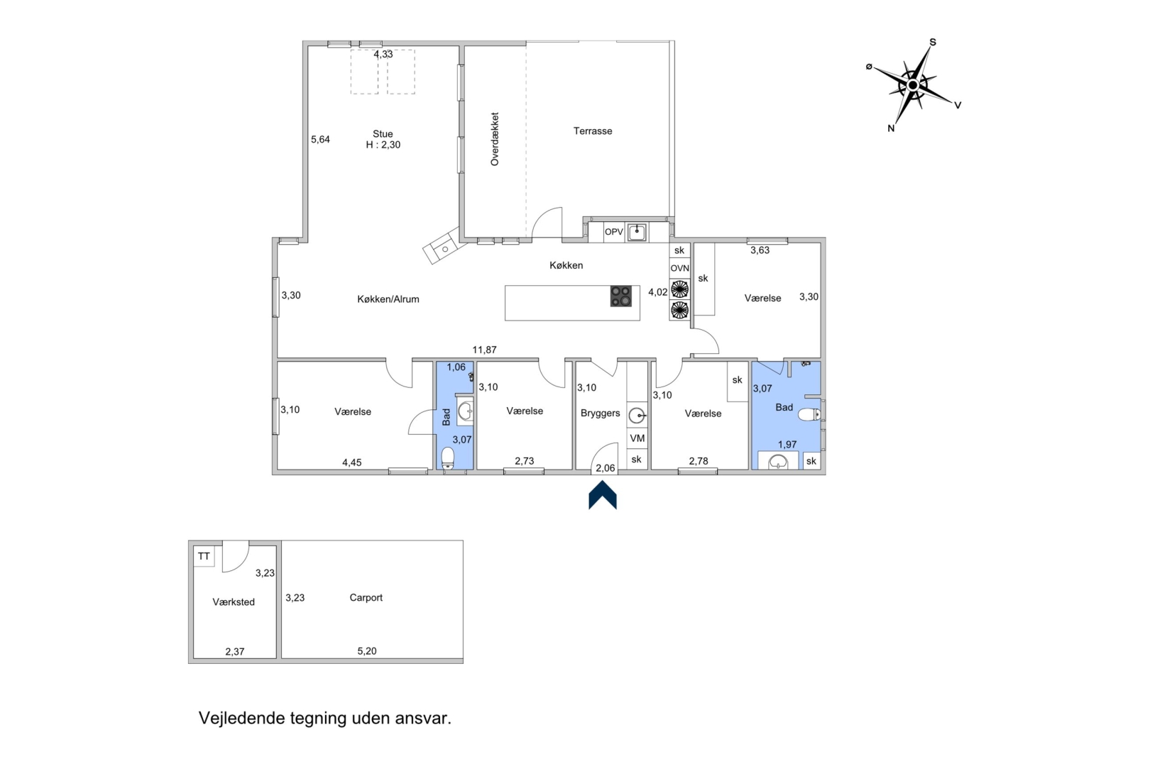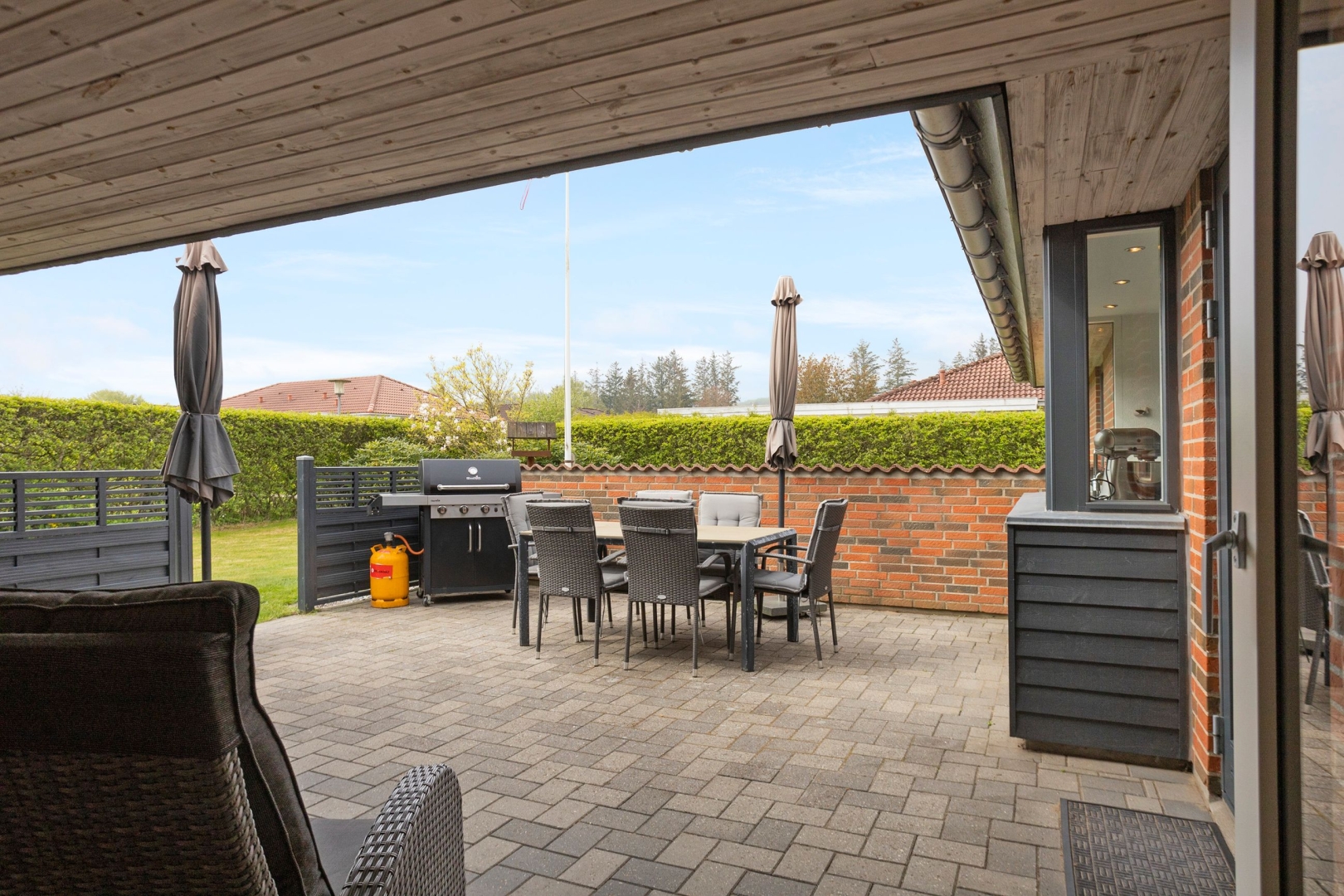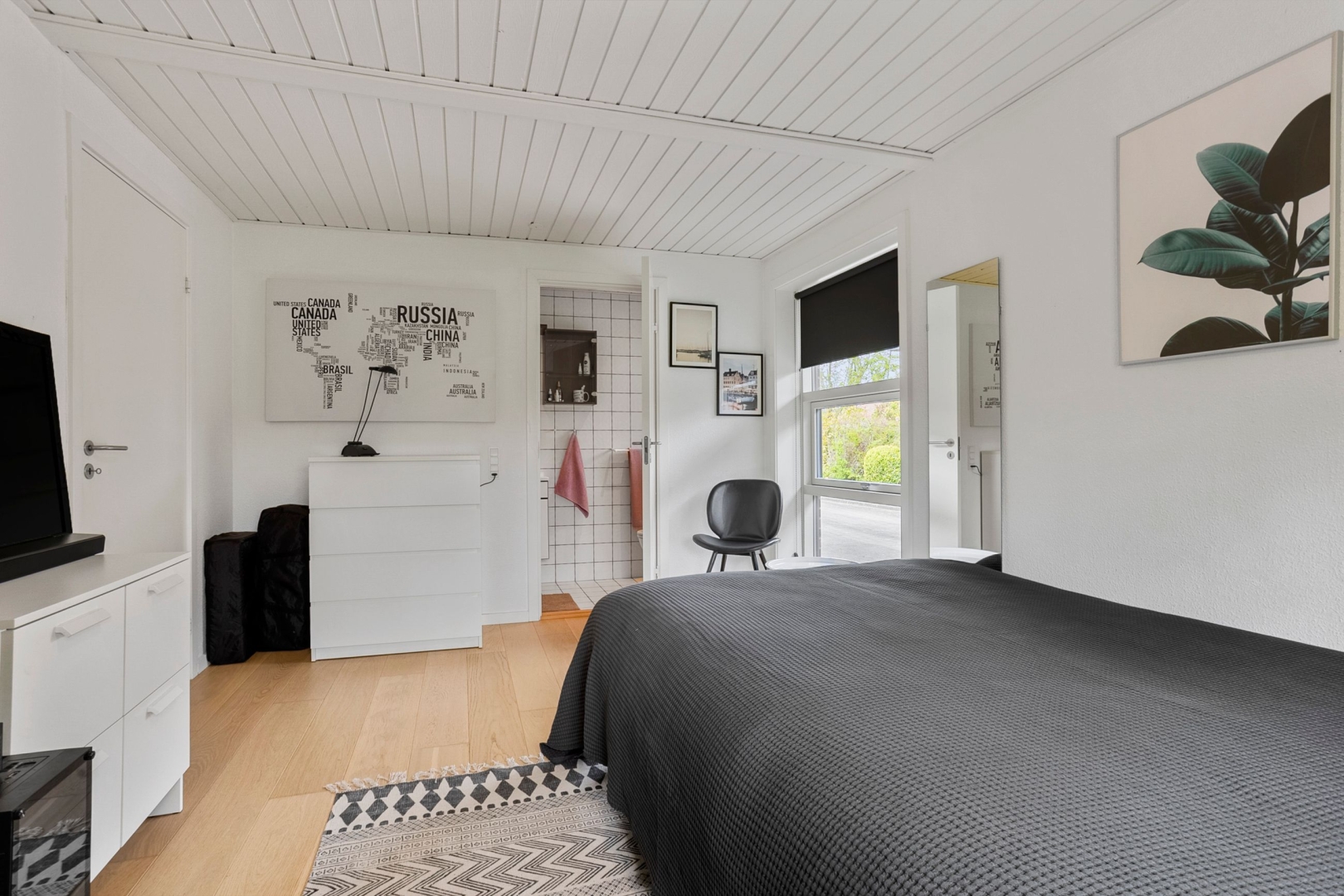 Boligarealet på 146 m² byder på et lyst og lækkert køkkenalrum med udgang til en privat og delvist overdækket terrasse som delvis er afskærmet af en halvmur, en rummelig opholdsstue med stort ovenlys, der lader lyset strømme ind, og et soveværelse med faste skabe, trægulv og direkte adgang til eget badeværelse med klinkegulv, gulvvarme og bruseniche. I forlængelse heraf ligger et børneværelse med trægulv og skabe. Derudover findes to yderligere børneværelser, hvoraf det ene er over 12 m² og har direkte adgang til boligens andet badeværelse, ligeledes med klinkegulv, gulvvarme og bruseniche. Boligen rummer desuden et praktisk bryggers med klinkegulv, bord med vask og plads til vaskemaskine.