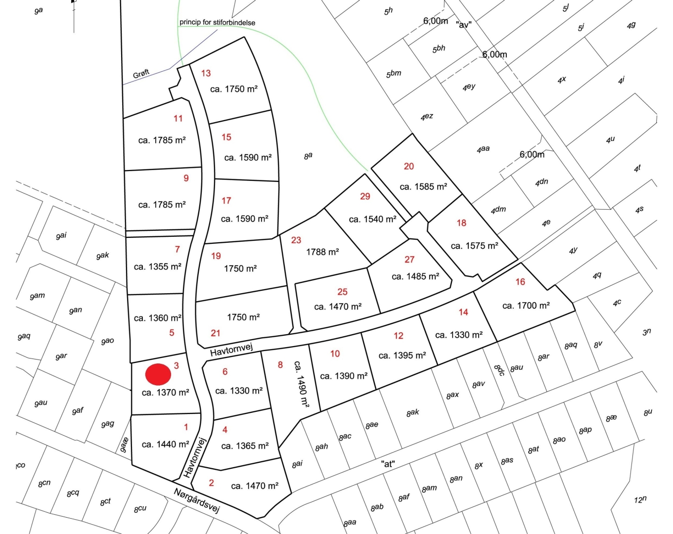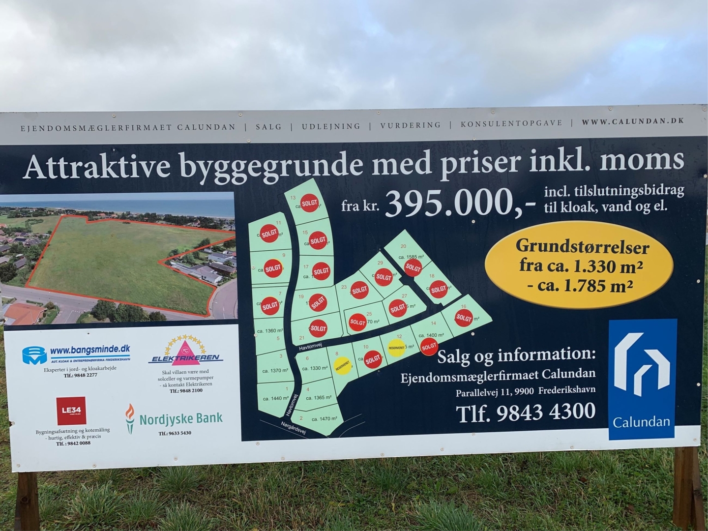 Grundene varierer i størrelse fra ca. 1.330 m² til ca. 1.785 m² og priserne starter ved kr. 395.000,00 inkl. tilslutningsbidrag til kloak, el og vand men eksl. tilslutningsbidrag til fx kabel-tv og fjernvarme.