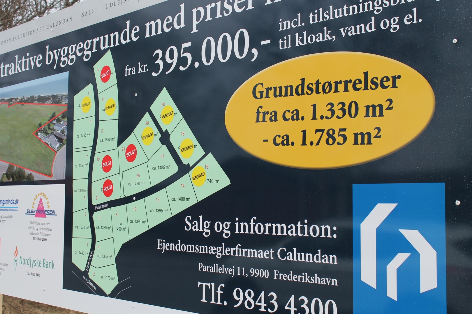 Grundene varierer i størrelse fra ca. 1.330 m² til ca. 1.785 m² og priserne starter ved kr. 395.000,00 inkl. tilslutningsbidrag til kloak, el og vand men eksl. tilslutningsbidrag til fx kabel-tv og fjernvarme.