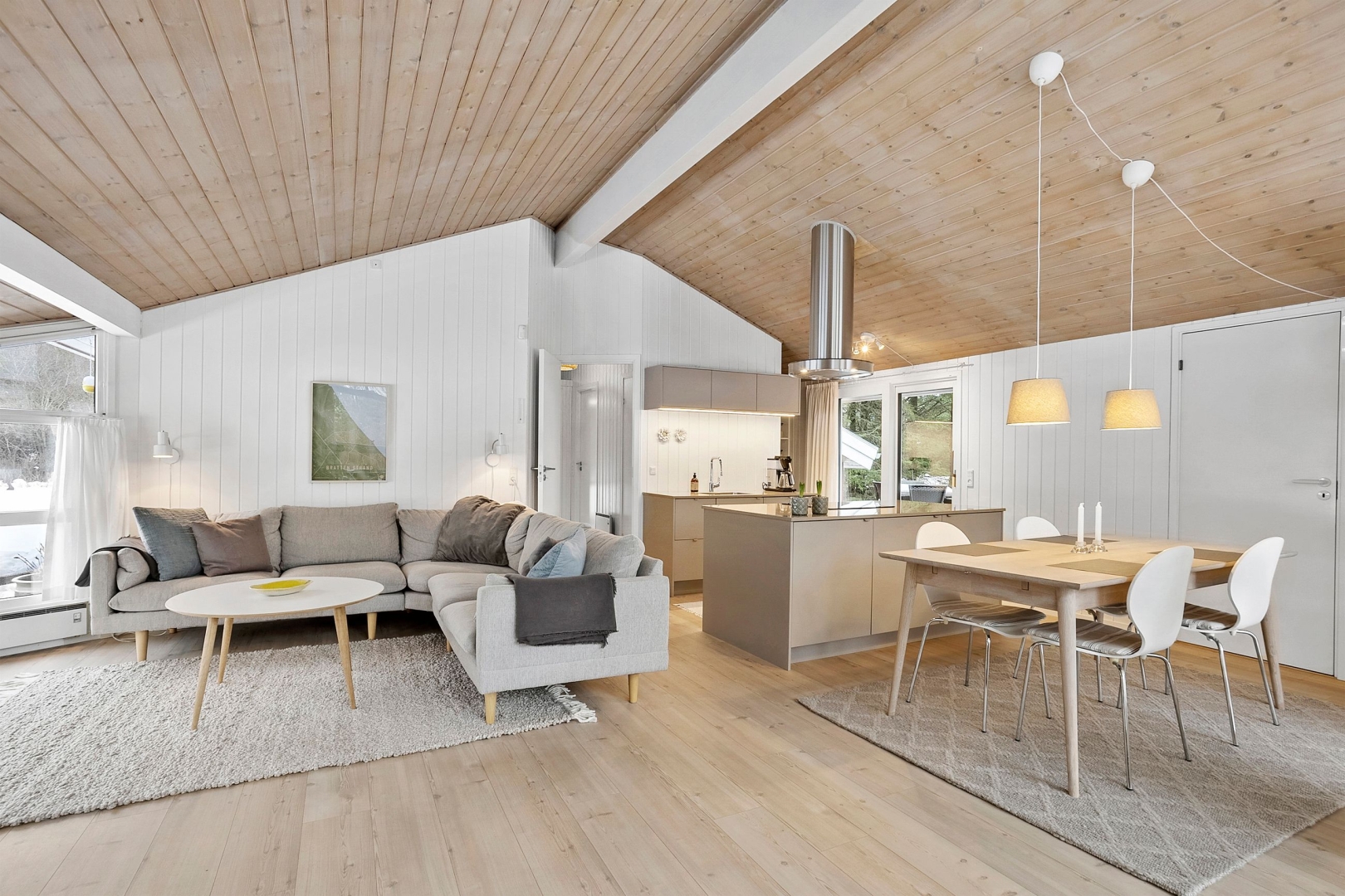 Den børnevenlige strand i Bratten ligger blot ca. 500 meter fra huset og er kendt for sit fine, hvide sand og de smukke klitter, hvor man altid kan finde læ og en god solkrog. Her kan I bade, sole jer eller nyde lange gåture langs vandet eksempelvis til den hyggelige havn i Strandby. Ønsker I en udflugt til Skagen eller Frederikshavn, kan toget nemt tages fra Rimmen Station, der ligger under to kilometer fra huset.