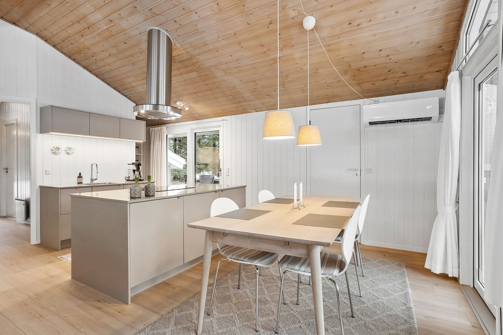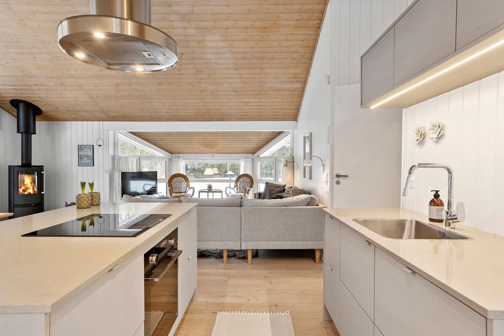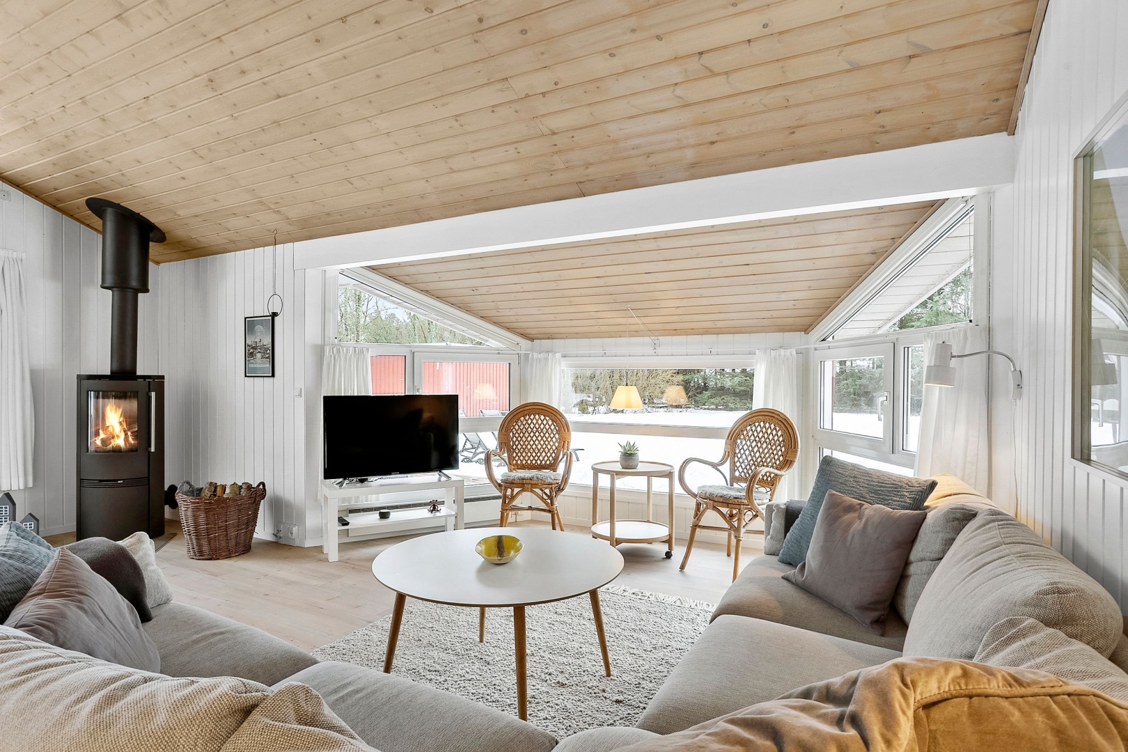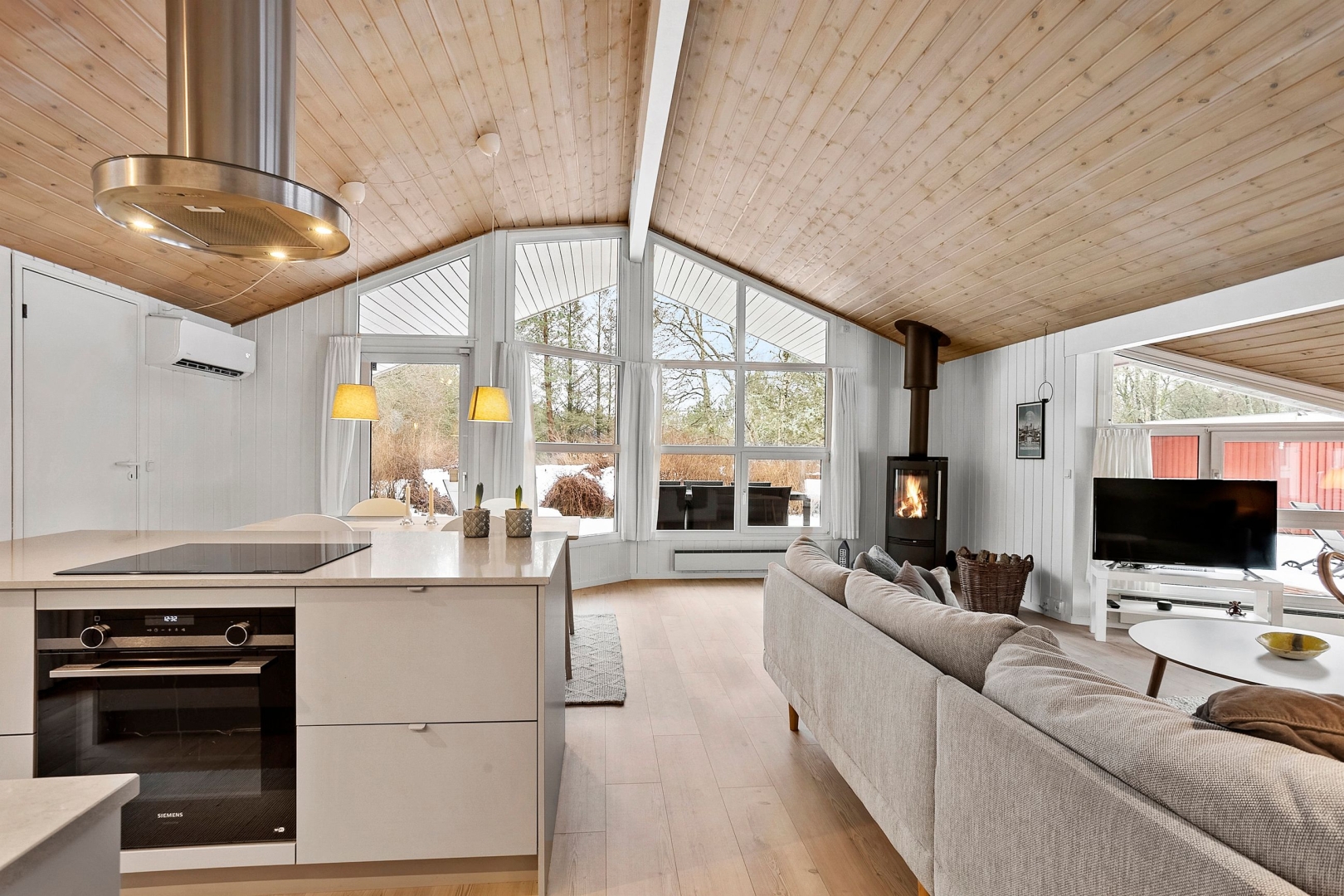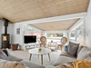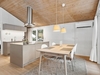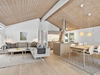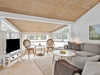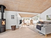 Fritidshuset byder på et skønt opholdsrum med loft til kip, hvor køkken, opholdsstue og spiseplads smelter naturligt sammen. Fra køkkenafdelingen er der via et skydedørsparti udgang til en dejlig morgenterrasse, og ved spisepladsen er den wi-fi-styrede luft-til-luft varmepumpe fint placeret. Herfra er der udgang til en delvist overdækket og sydvendt træterrasse, så udelivet kan nydes, selv når vejret ikke er helt med. Opholdsstuen er udstyret med brændeovn, som skaber varme og hygge på de kølige aftener, og den vestvendte karnap med glasfacade giver et fantastisk lysindfald og et smukt kig ud i omgivelserne. Derudover rummer huset soveværelse, værelse med skabe, et nedsænket værelse, gæstetoilet med klinkegulv og gulvvarme, stort badeværelse med bruseniche, klinkegulv med el-gulvvarme, loft til kip samt plads til både vaskemaskine og tørretumbler, entre med klinkegulv samt fordelingsgang med opgang til hems.