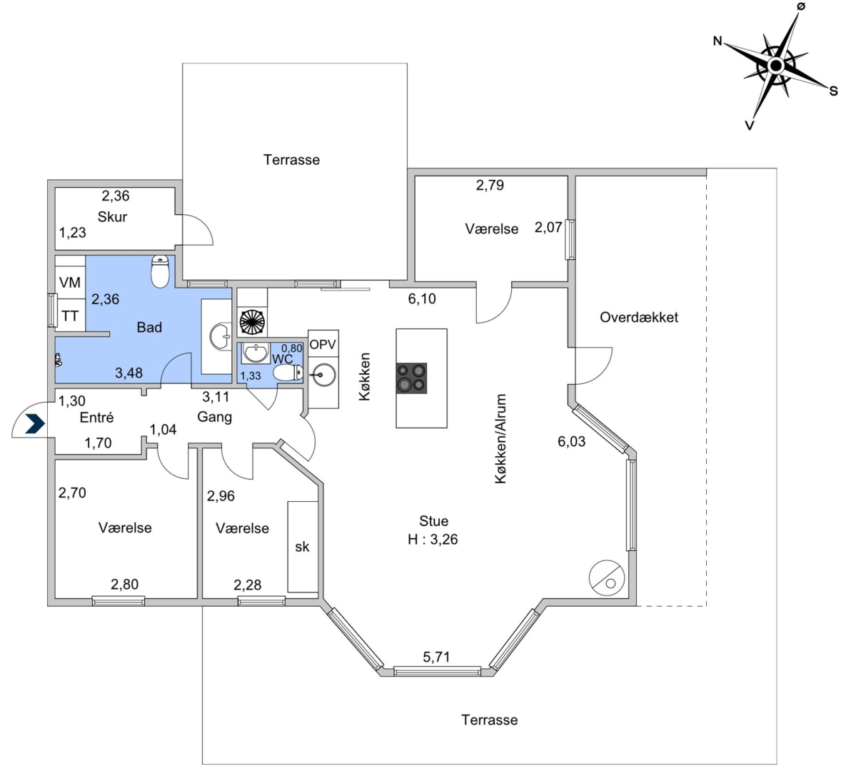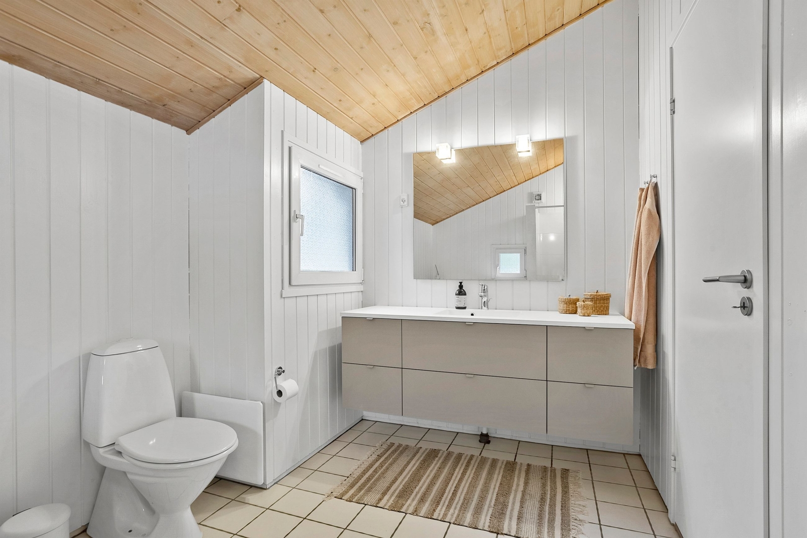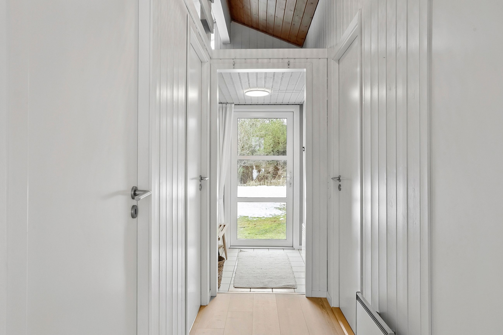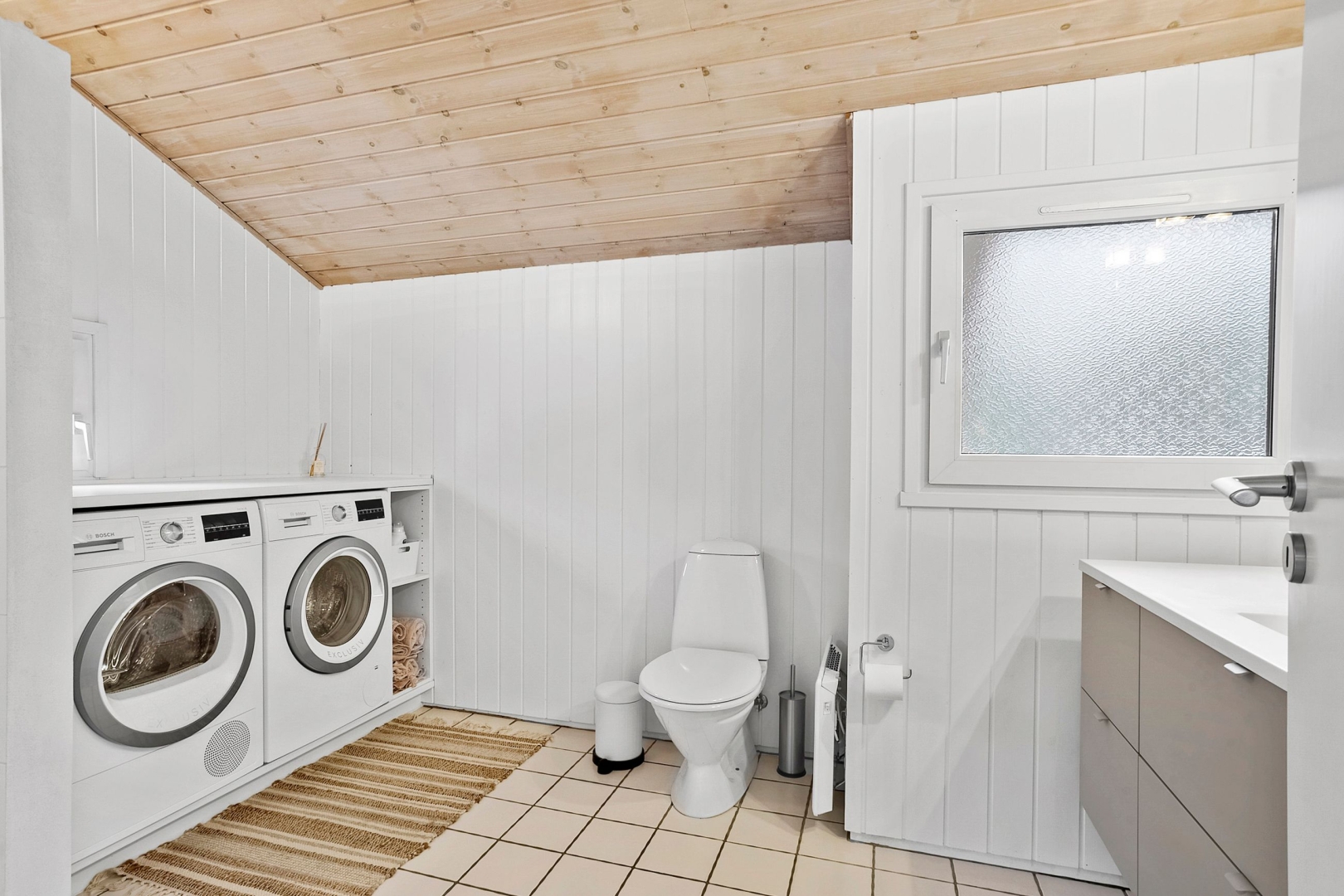 Fritidshuset byder på et skønt opholdsrum med loft til kip, hvor køkken, opholdsstue og spiseplads smelter naturligt sammen. Fra køkkenafdelingen er der via et skydedørsparti udgang til en dejlig morgenterrasse, og ved spisepladsen er den wi-fi-styrede luft-til-luft varmepumpe fint placeret. Herfra er der udgang til en delvist overdækket og sydvendt træterrasse, så udelivet kan nydes, selv når vejret ikke er helt med. Opholdsstuen er udstyret med brændeovn, som skaber varme og hygge på de kølige aftener, og den vestvendte karnap med glasfacade giver et fantastisk lysindfald og et smukt kig ud i omgivelserne. Derudover rummer huset soveværelse, værelse med skabe, et nedsænket værelse, gæstetoilet med klinkegulv og gulvvarme, stort badeværelse med bruseniche, klinkegulv med el-gulvvarme, loft til kip samt plads til både vaskemaskine og tørretumbler, entre med klinkegulv samt fordelingsgang med opgang til hems.
