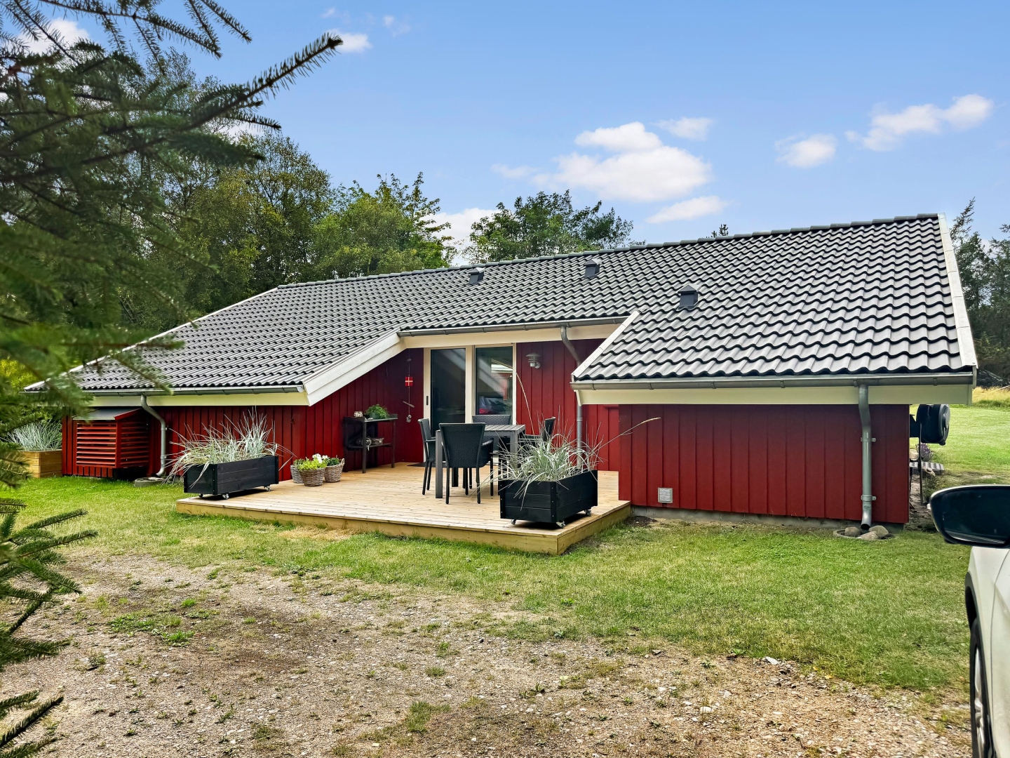 I 2025 er der anlagt nye træterrasser mod syd, vest og øst, alle træer mod nabo er topkappet, og der er installeret en ny wi-fi-styret varmepumpe.