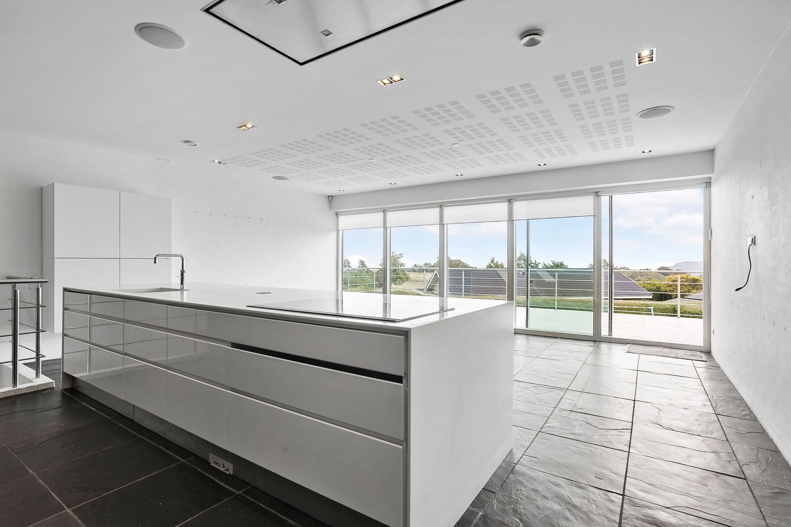 * Køkken/alrum med stor kogeø, vask og direkte adgang til den hævede, solrige terrasse.