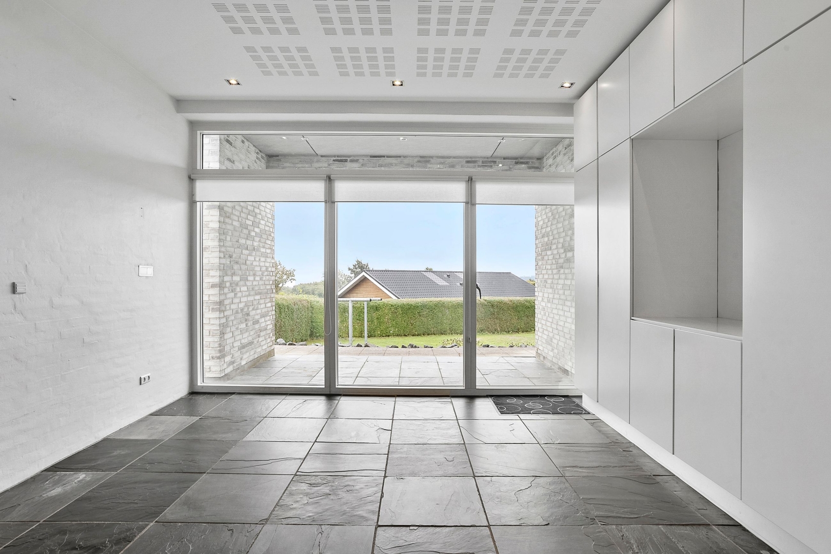 Et stort disponibelt rum, ideelt som hjemmebio, aktivitetsrum eller opbevaring. Herfra er der direkte udgang til terrasse og have.