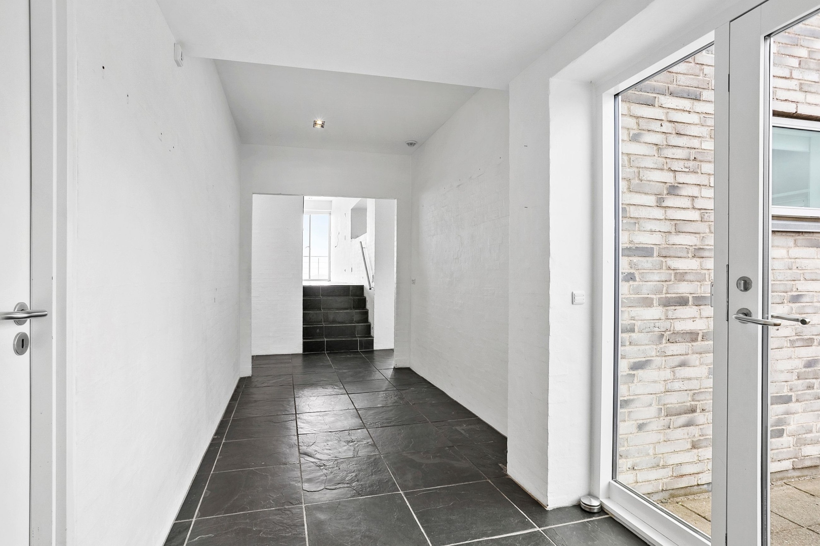 * Lys og rummelig entré, der leder videre til fordelingsgang og nedgang til køkken/alrum via 5 trin.