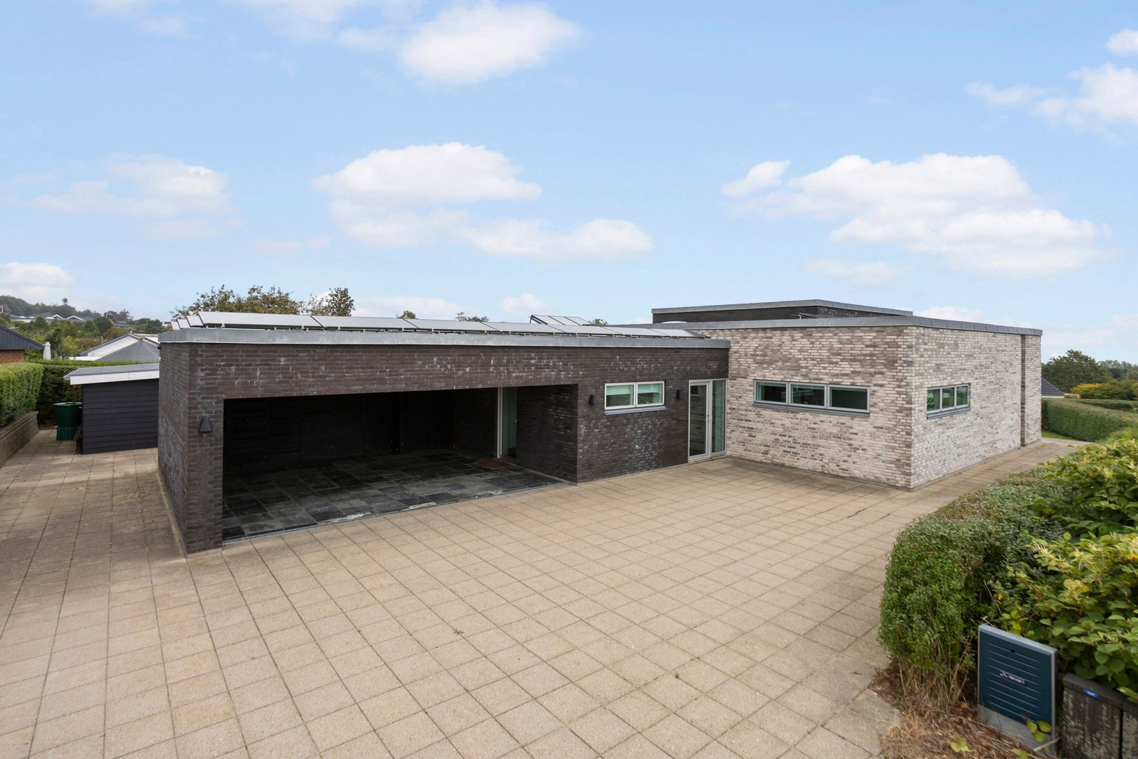 Villaen er placeret på en lettere kuperet grund med flere dejlige udeområder: overdækkede og åbne terrasser, en vestvendt lukket gårdhave samt en stor hævet terrasse med adgang fra alrummet perfekt til både afslapning og gæster.