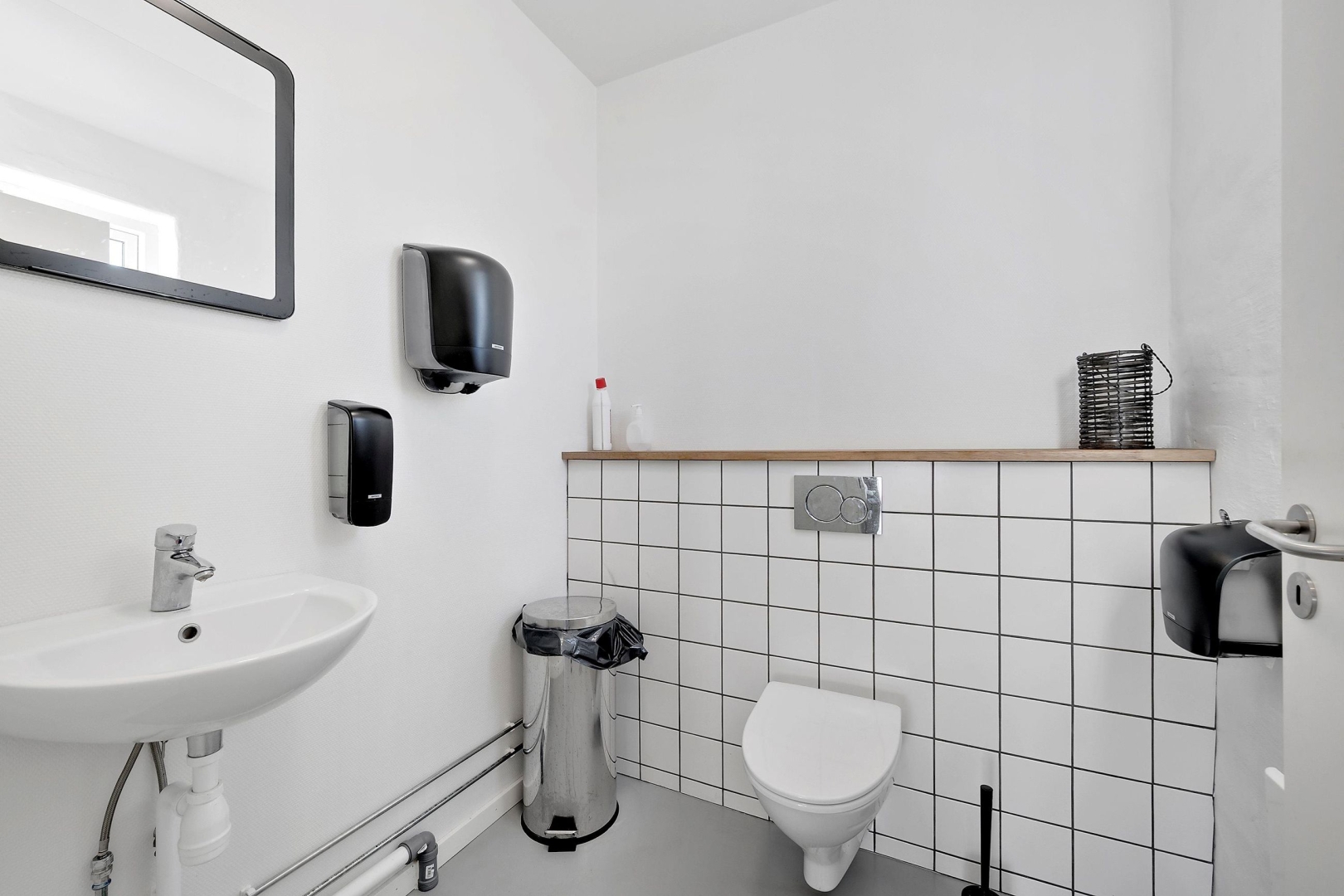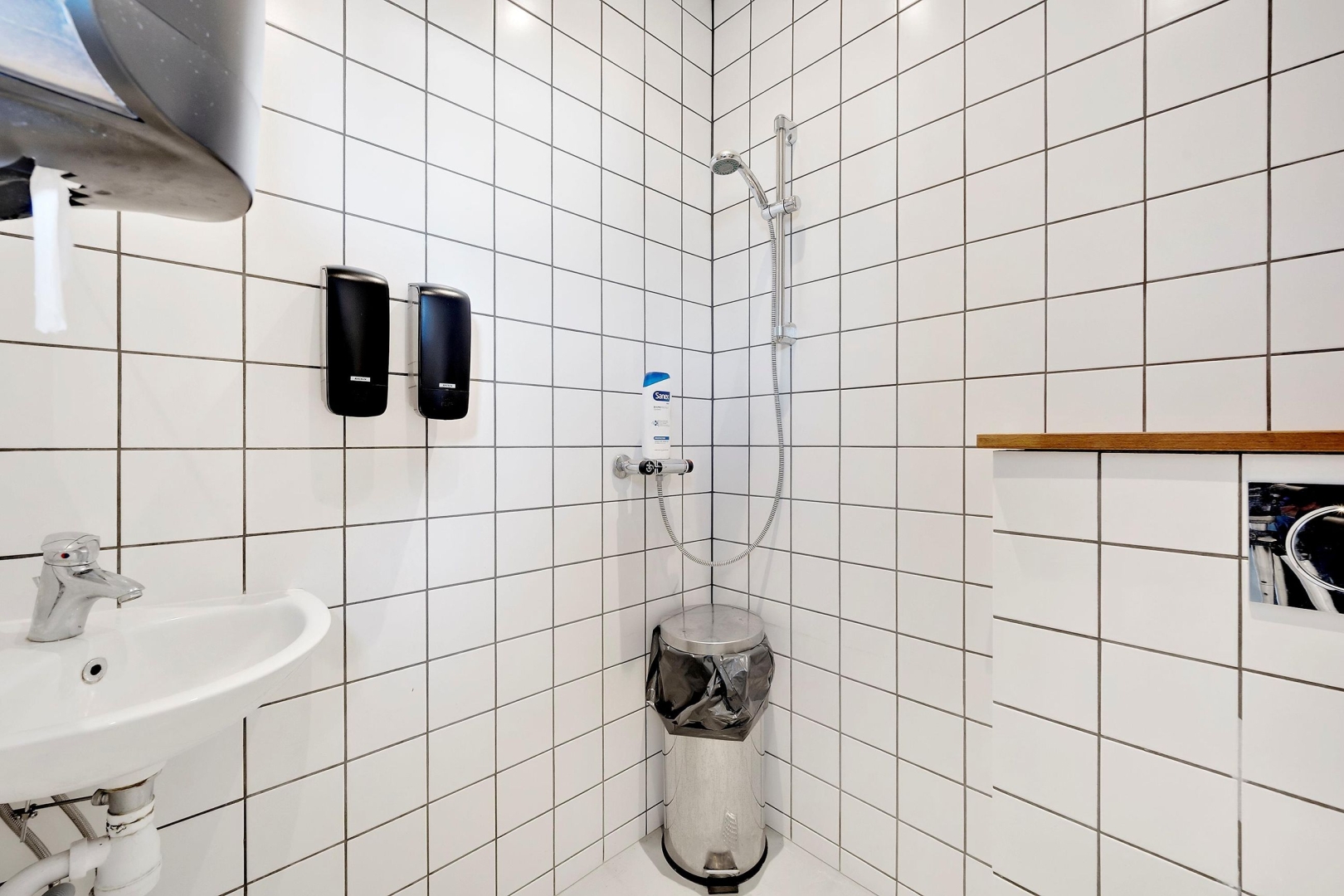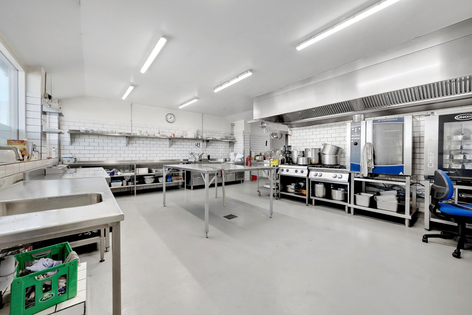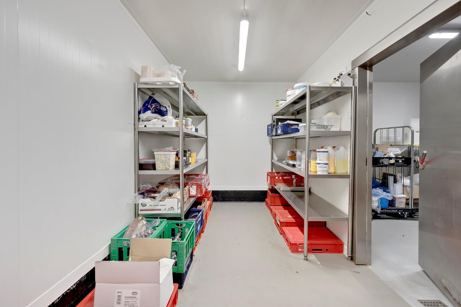 Bygningen er ideel til en bred vifte af virksomheder, der ønsker en placering på havnen i Frederikshavn. Den egner sig både til lager, logistik, administration og mindre produktion eller værksted. Bygningen blev oprindeligt opført i 1968, men har gennemgået en grundig renovering i de seneste år. Der er blandt andet lagt klinkegulve med gulvafløb og fliser på de fleste vægge, hvilket giver bygningen et funktionelt og præsentabelt udtryk. Ejendommens samlede areal er 213 kvadratmeter og indeholder et stort åbent lokale med receptionsdisk, 2 toiletter med forrum, et stort produktionslokale, kontor samt et kølerum. Ejendommen bruges i øjeblikket til cateringvirksomhed, men den rummelige indretning giver mulighed for mange forskellige anvendelser. Der er fast grundbelysning i bygningen-