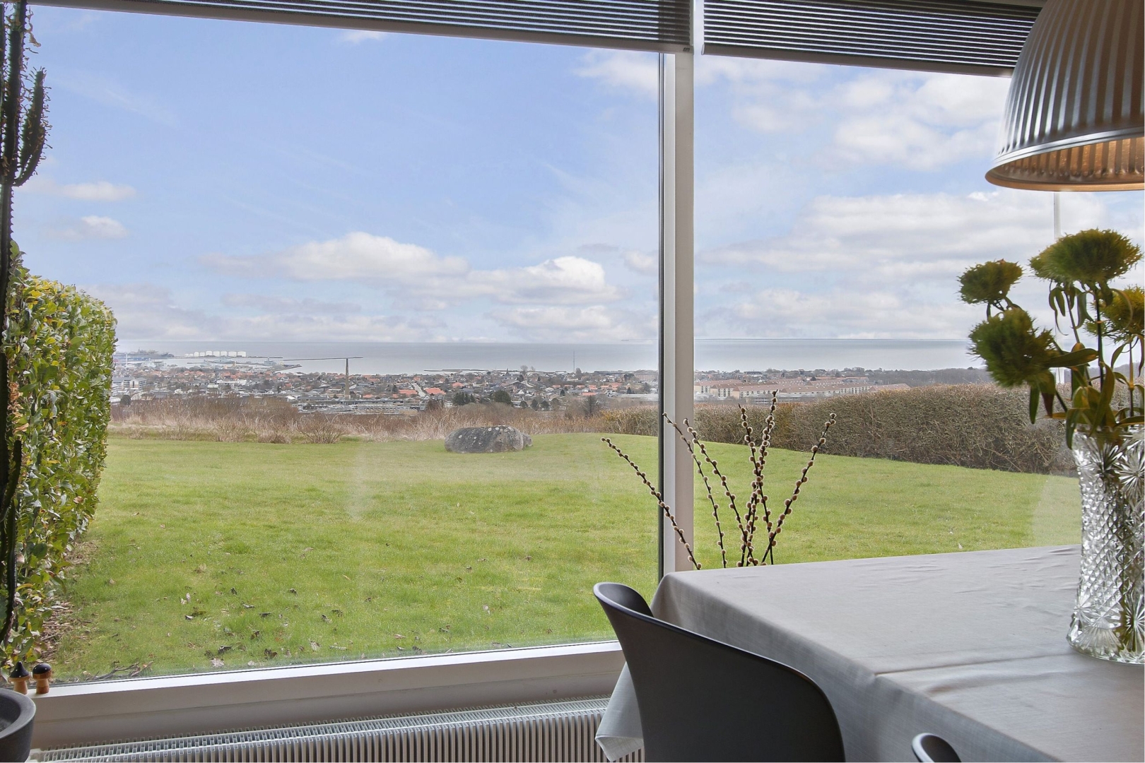Denne pragtfulde UDSIGTSVILLA, beliggende ca. 90 meter over havets overflade, vil dagligt forkæle jer med en betagende 180 graders panoramaudsigt til Kattegat og Frederikshavn by. Herudover får I udsigt til Læsø, øgruppen Hirsholmene og det smukt kuperede naturlandskab mod syd.
