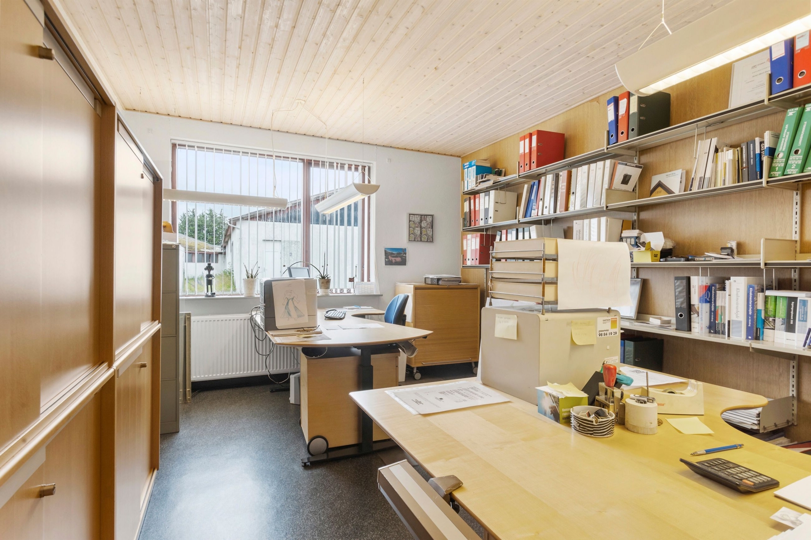 Kontor med plads til to arbejdsstationer, arkiv, mellemgang og toilet