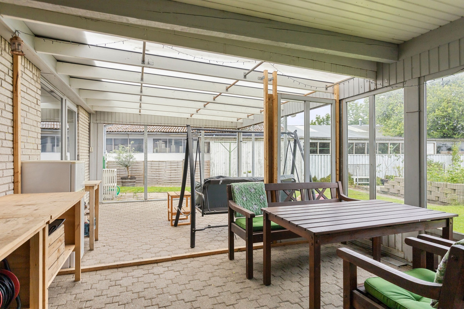 Vindfang og entré/hall - Stor, lys vinkelstue med skyddedør til stort værelse/aktivitetsrum/gildestue - Spisekøkken i moderne stil - Soveværelse med udgang til overdækket terrasse og haven samt direkte adgang til rummeligt badeværelse - godt værelse - Bryggers med plads til vaskemaskine og tørretumbler - GæstetoiletHaven er helt lukket og privat ideel til både afslapning og børneleg.