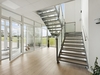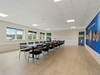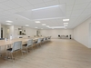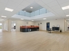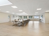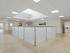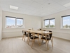 Overetagen rummer yderligere kontorer, et stort mødelokale, og en kantine med tilhørende køkken. Den elegante balkon med udsigt til stueetagen og det unikke lysindfald fra specialdesignede vinduer bidrager til et inspirerende arbejdsmiljø.