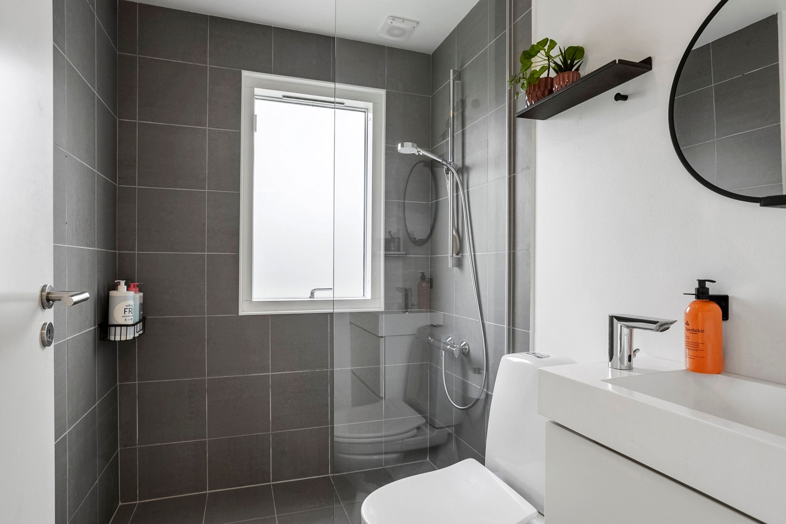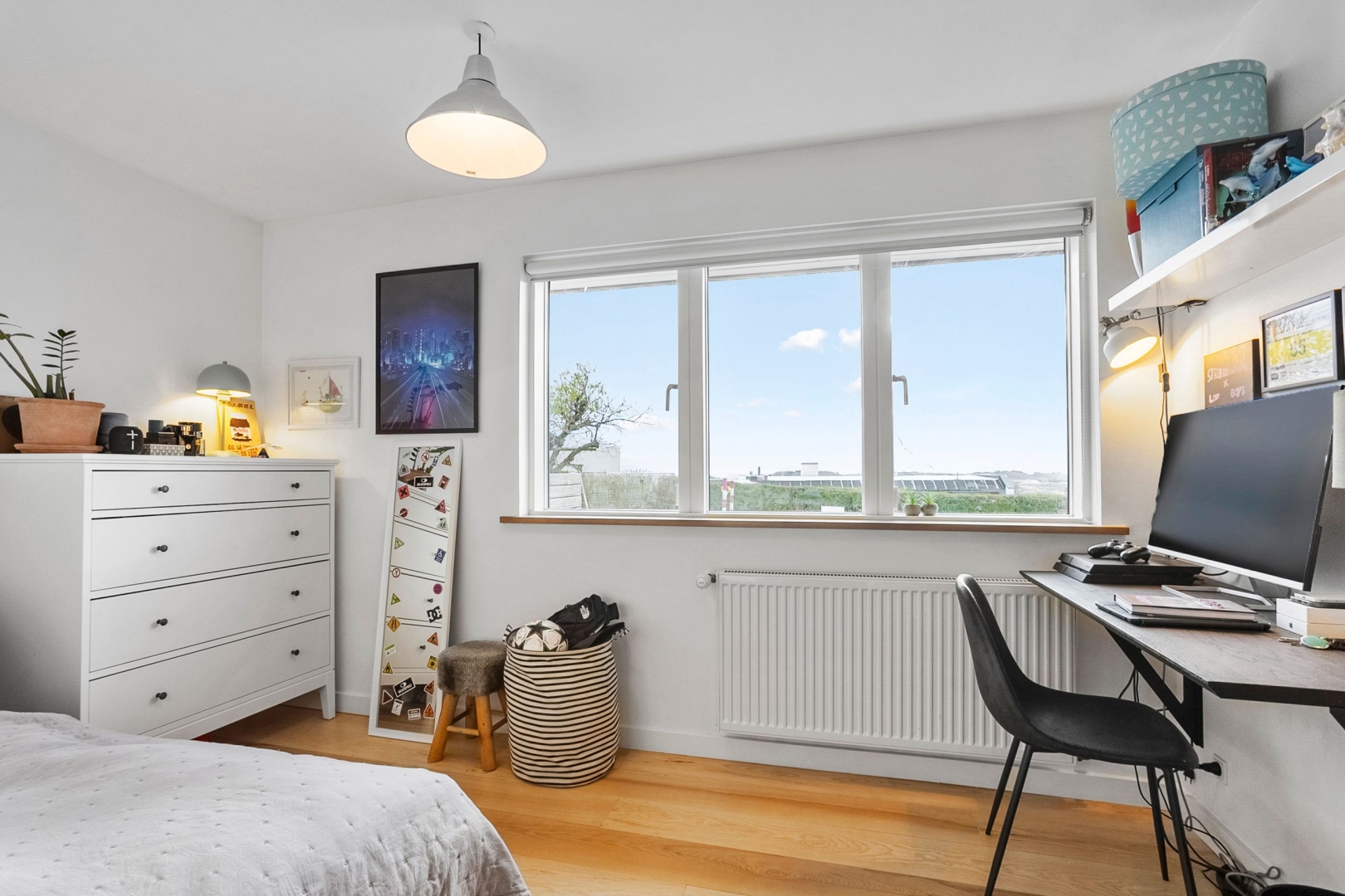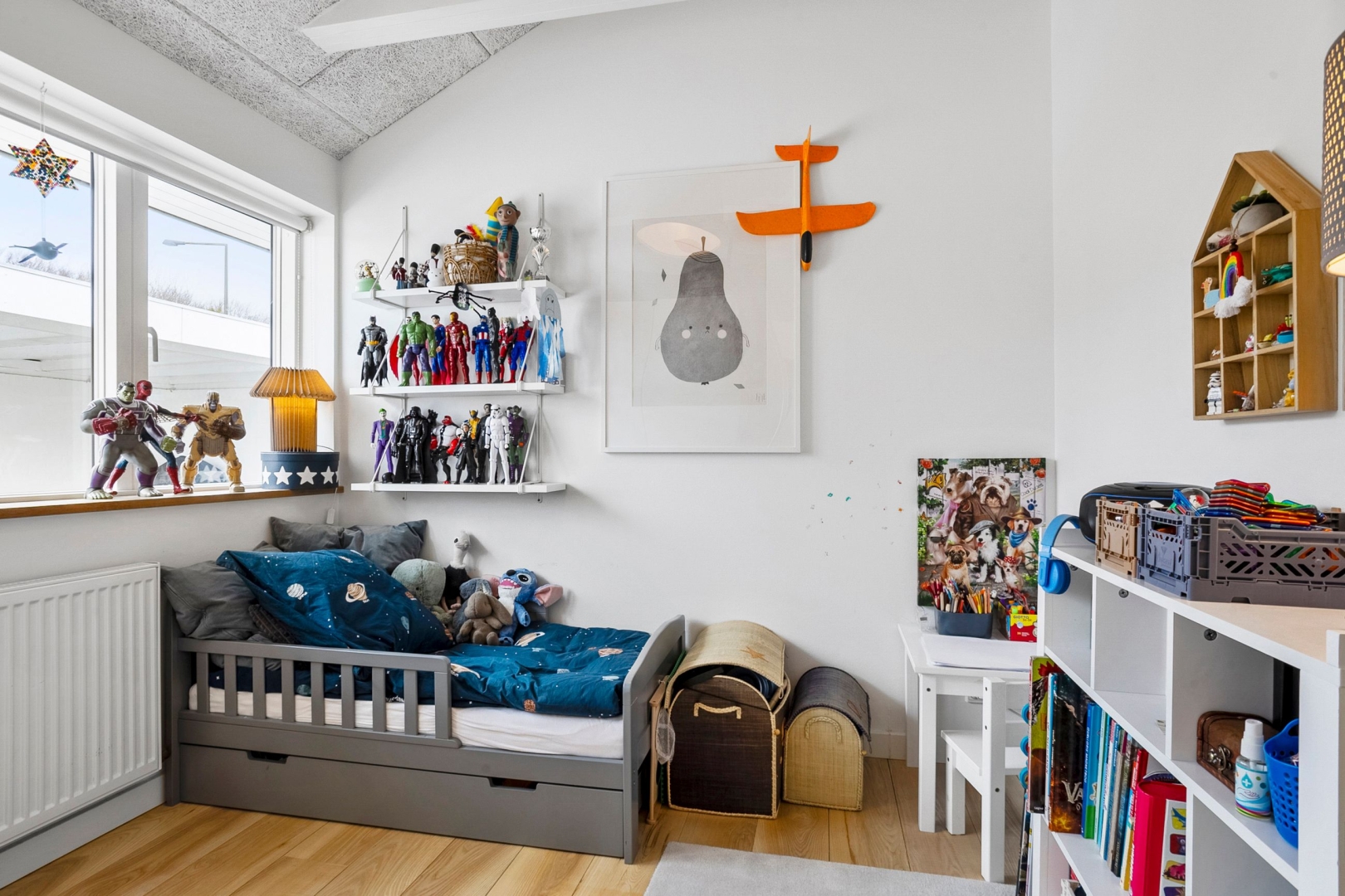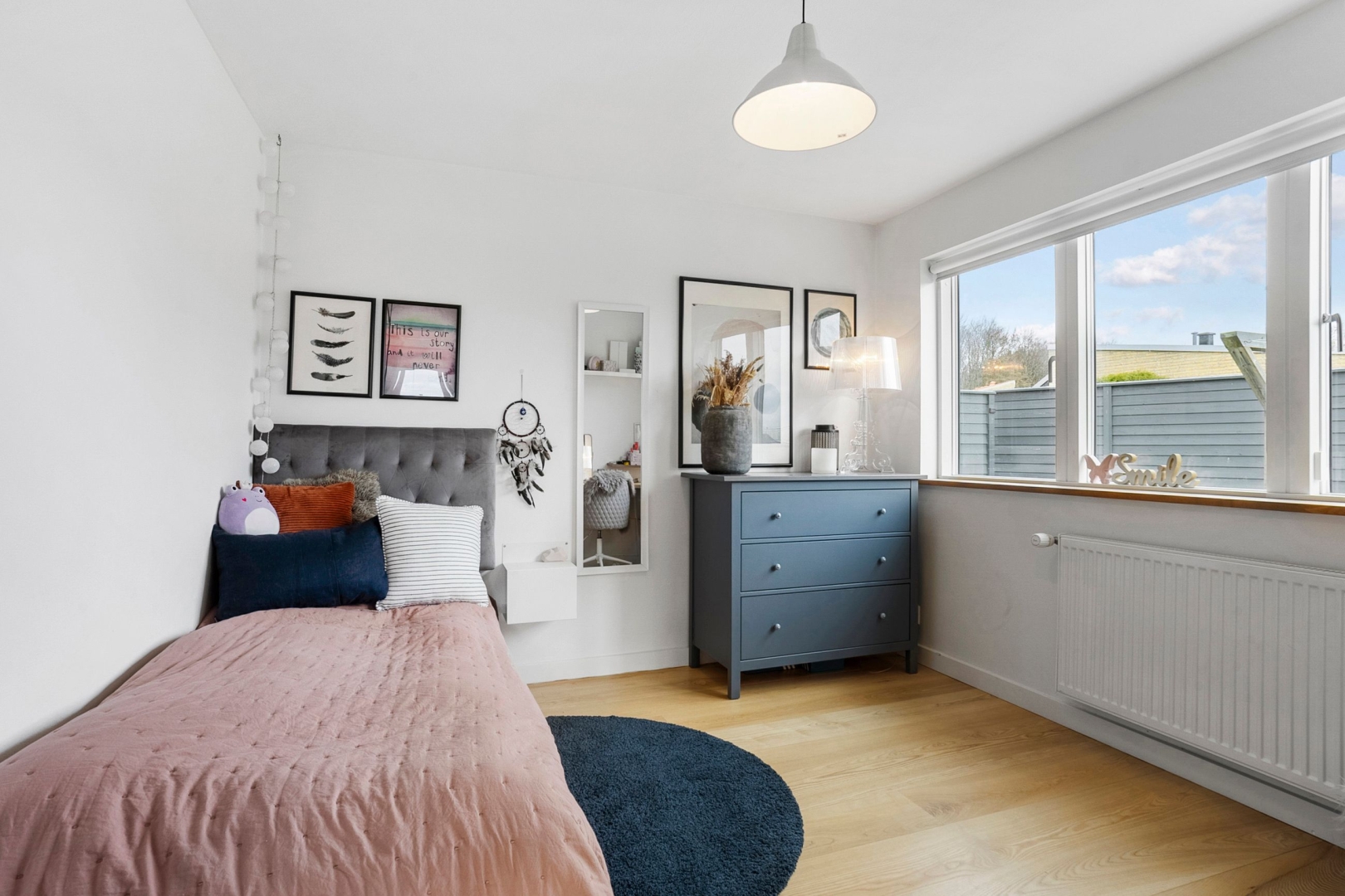 Den separate ungdomsafdeling rummer to gode værelser med trægulv, et badeværelse med bruseniche og gulvvarme samt en praktisk mellemgang, der skaber en ideel og privat afdeling til familiens unge.