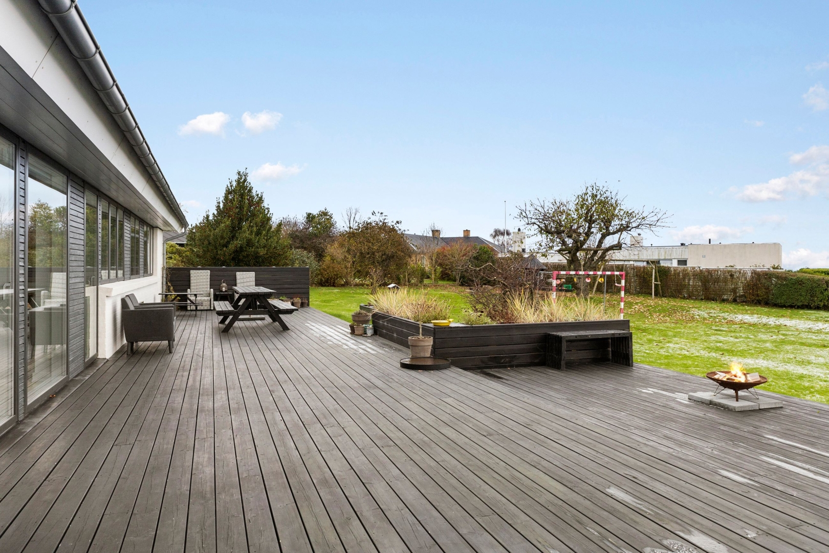 Udendørs mødes I af en bred indkørsel fra 2010, som fører til både en muret garage på 27 m² og en carport på 21 m². Indkørslen fungerer samtidig perfekt til boldspil, basketball eller hockey, mens de voksne kan nyde udsigten fra den afskærmede terrasse