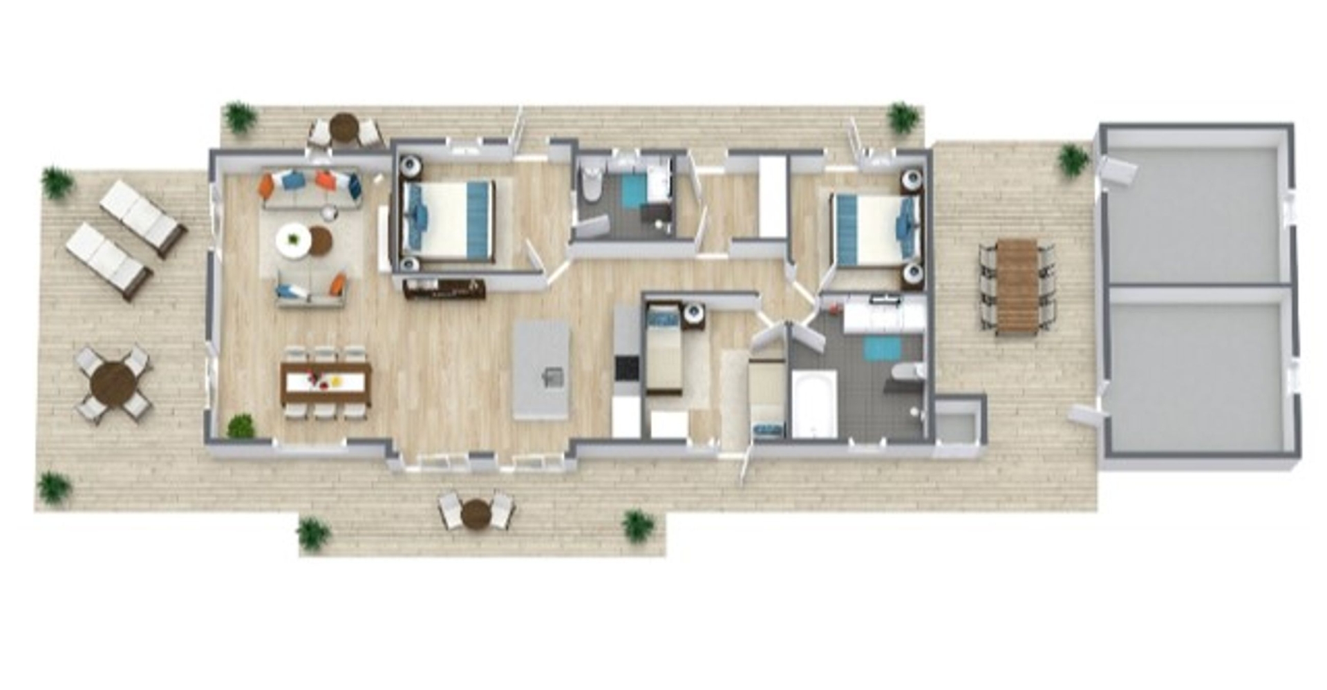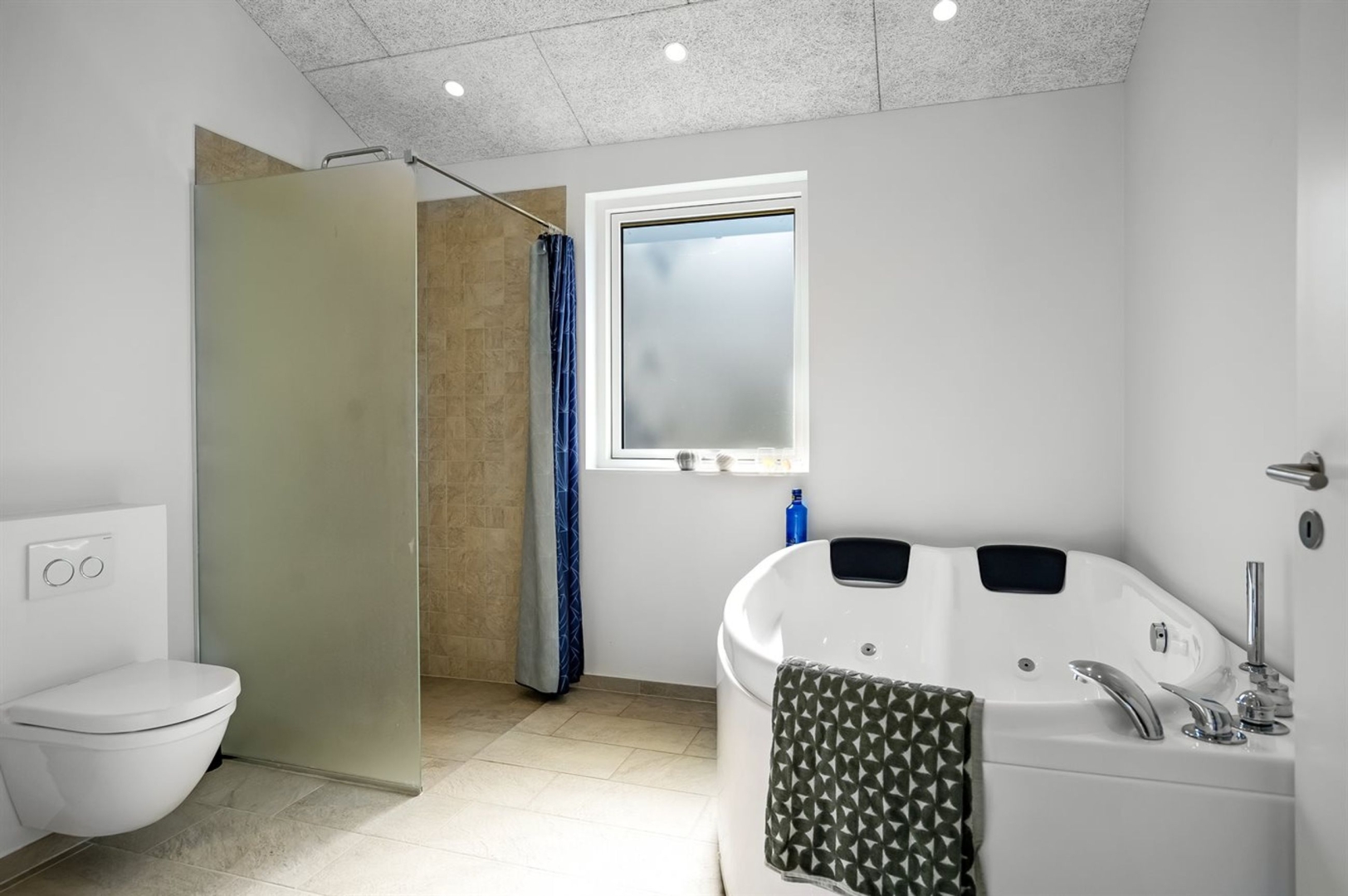 Huset fremstår lyst, moderne og gennemtænkt med gulvvarme i hele boligen og en planløsning, der inviterer til både samvær og afslapning. Her får du tre gode soveværelser, hvoraf forældresoveværelset har eget badeværelse og direkte udgang til terrassen. I alt er der to badeværelser, og det ene er indrettet med to-personers spabad perfekt efter en dag med strand, sol og frisk havluft.