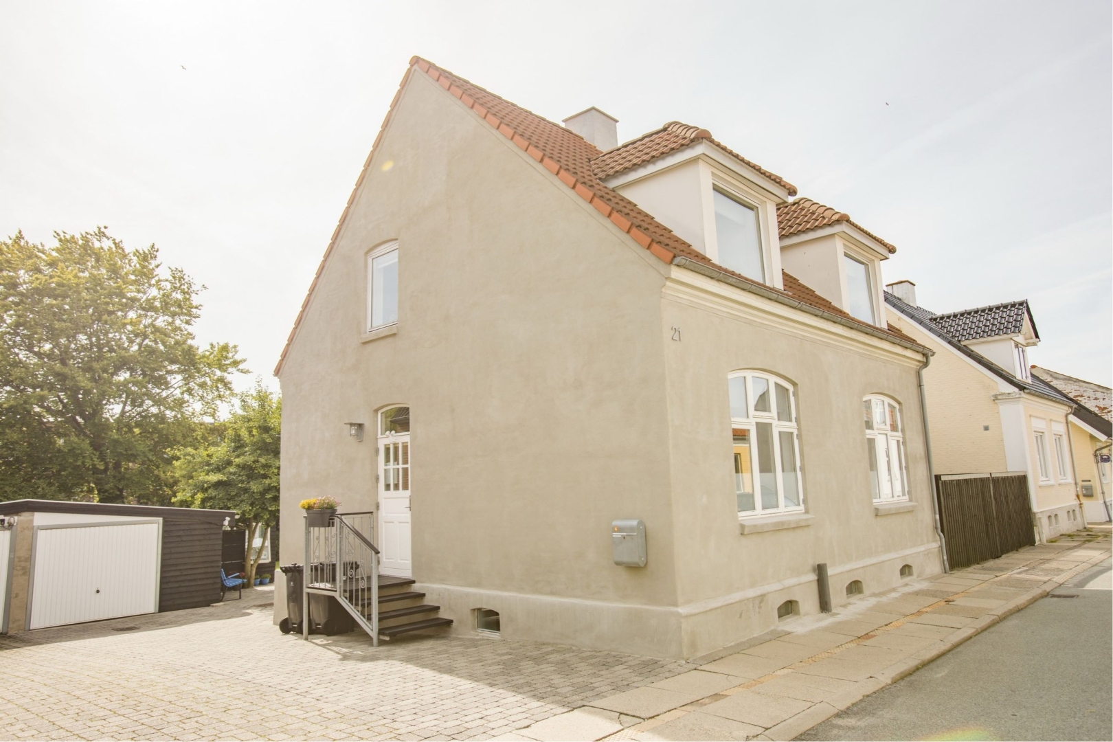 Dette renoverede byhus, beliggende på en rolig villavej tæt på byens centrum, kombinerer klassisk charme med moderne bekvemmeligheder. Huset har også en stor garage med værkstedsmuligheder.