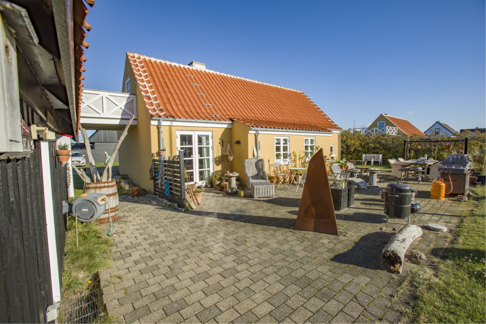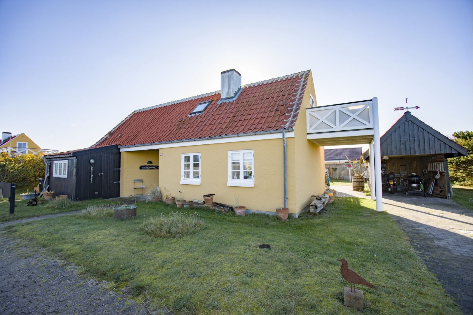 Villaen, opført i 1985, fremstår med vandskurede vægge og et harmonisk udtryk i halvandet plan. Du mødes af 7 m² indbygget udhus. Inde bydes du velkommen i en lys forgang med garderobe og klinkegulv. Et pænt badeværelse med bruseniche giver plads til rolig morgenstart, mens soveværelset, med udgang til terrassen, indbyder til langsomme morgener og kaffe i solen. Et ekstra værelse giver mulighed for gæster eller kreativ udfoldelse. Bryggerset er praktisk indrettet med bord som er forberedt til vask, mens det lyse køkken åbner sig mod det hyggelige alrum med brændeovn husets hjerte hvor varme og fællesskab smelter sammen. Herfra er der udgang til en skøn, ugeneret terrasse og en overskuelig have, som indbyder til lange sommerdage og stille aftener.På førstesalen finder du en dejlig stue og endnu et værelse begge med adgang til en rummelig altan, hvor udsigten til klitterne, de majestætiske skibe i horisonten, det historiske Sømærke og Gl. Skagens særlige stemning kan nydes i fred og ro.