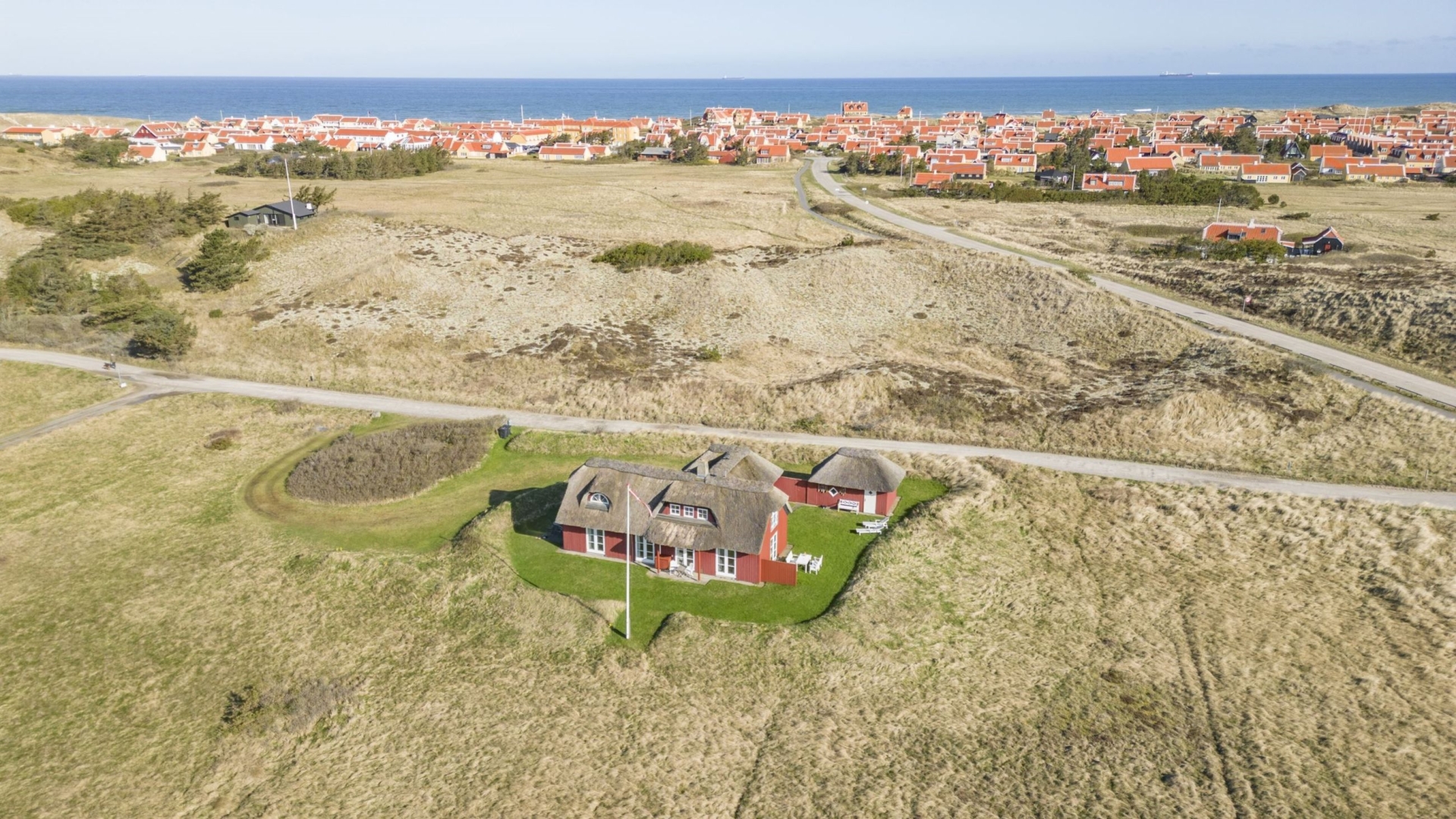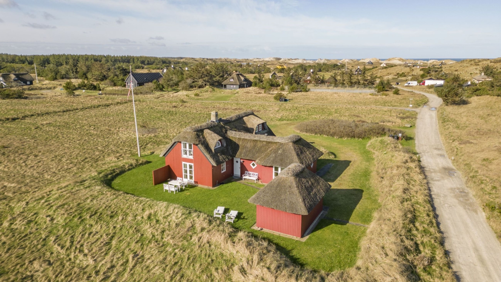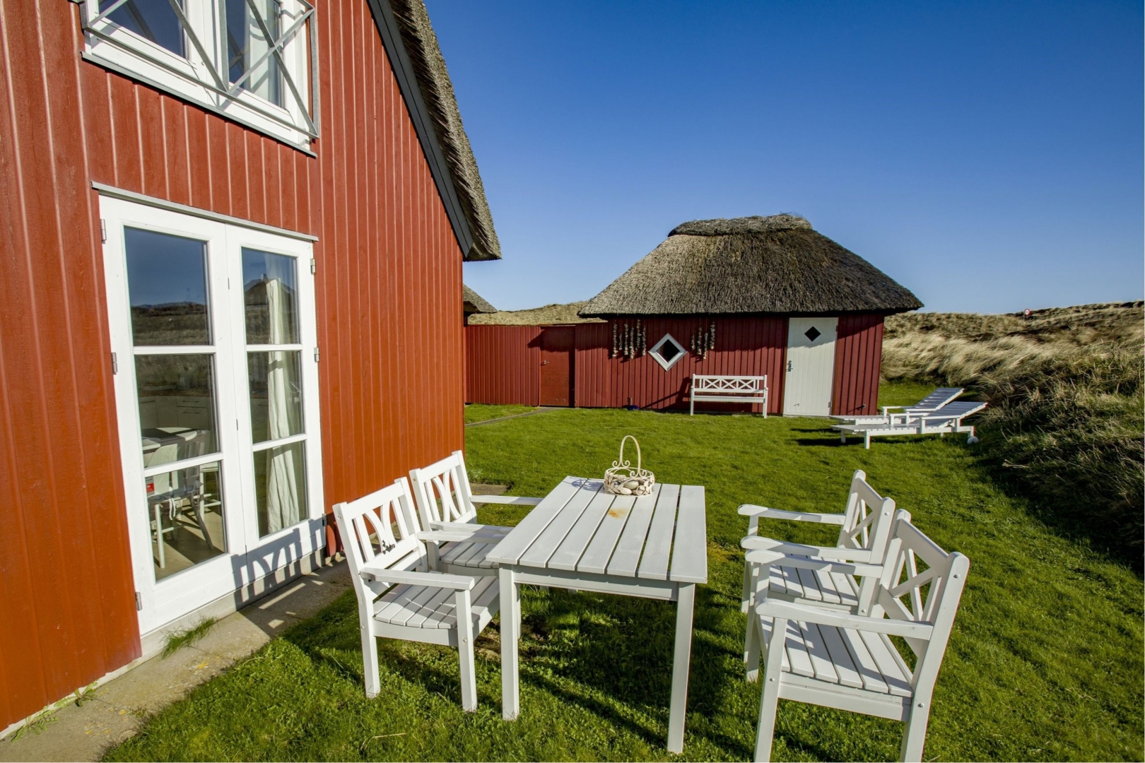 Yderligere er der garagebygning i samme idylliske og charmerende stil som sommerhuset med tilhørende udhus. Udenfor venter en velholdt have fyldt med idyl og ugeneret grund som afskærmes af klit - herunder en flagstang samt flere terrasser, der giver mulighed for afslappende solrige dage.