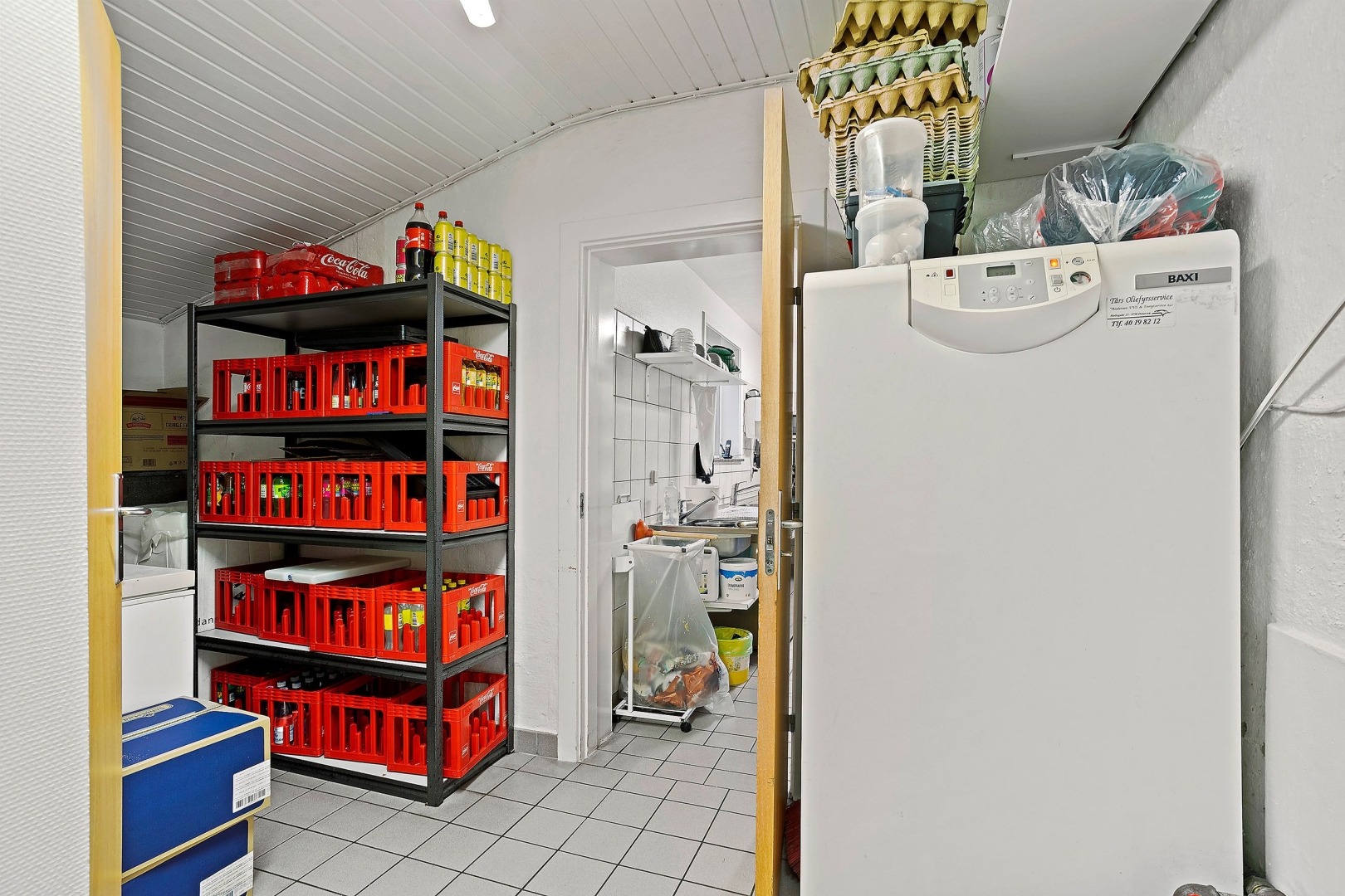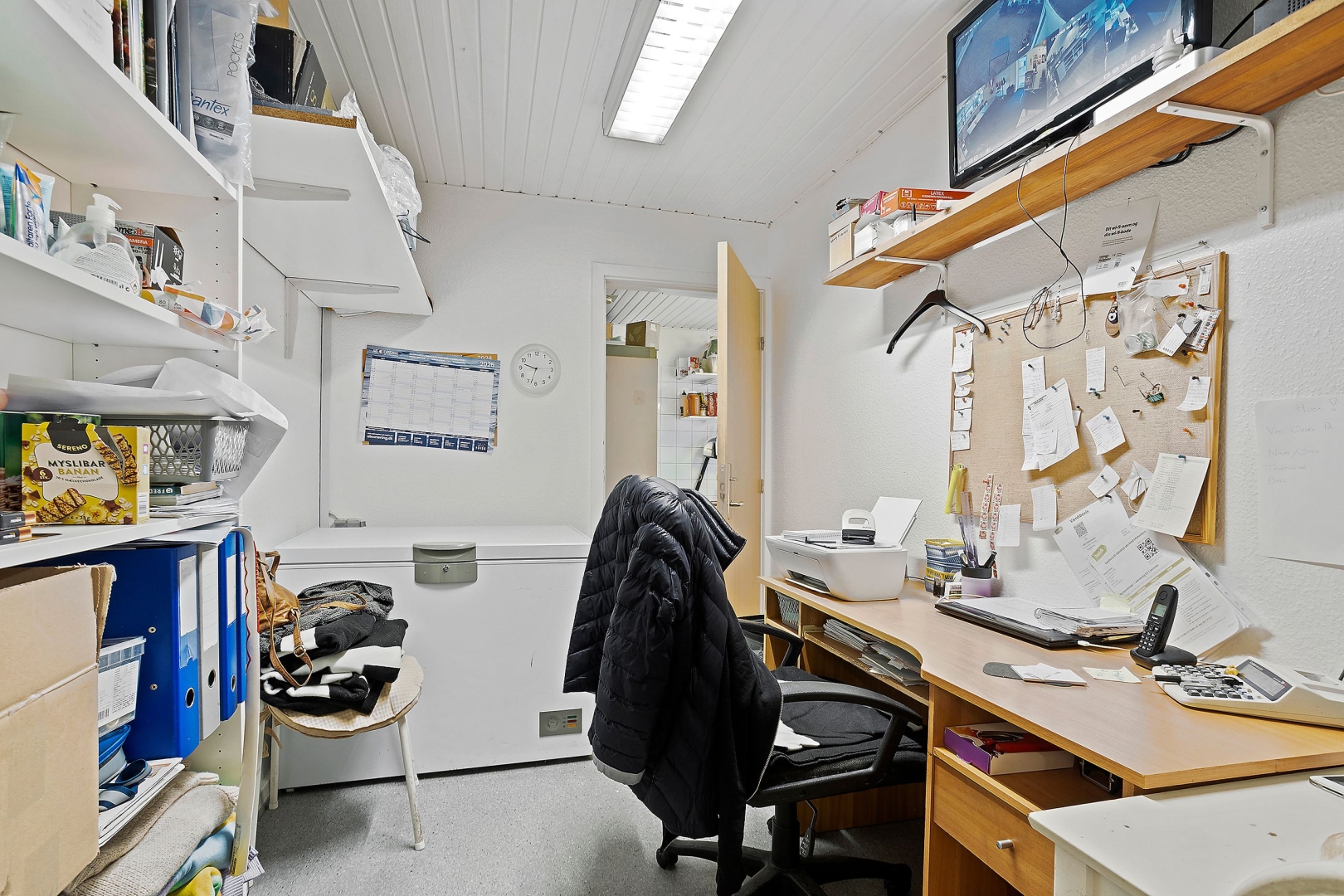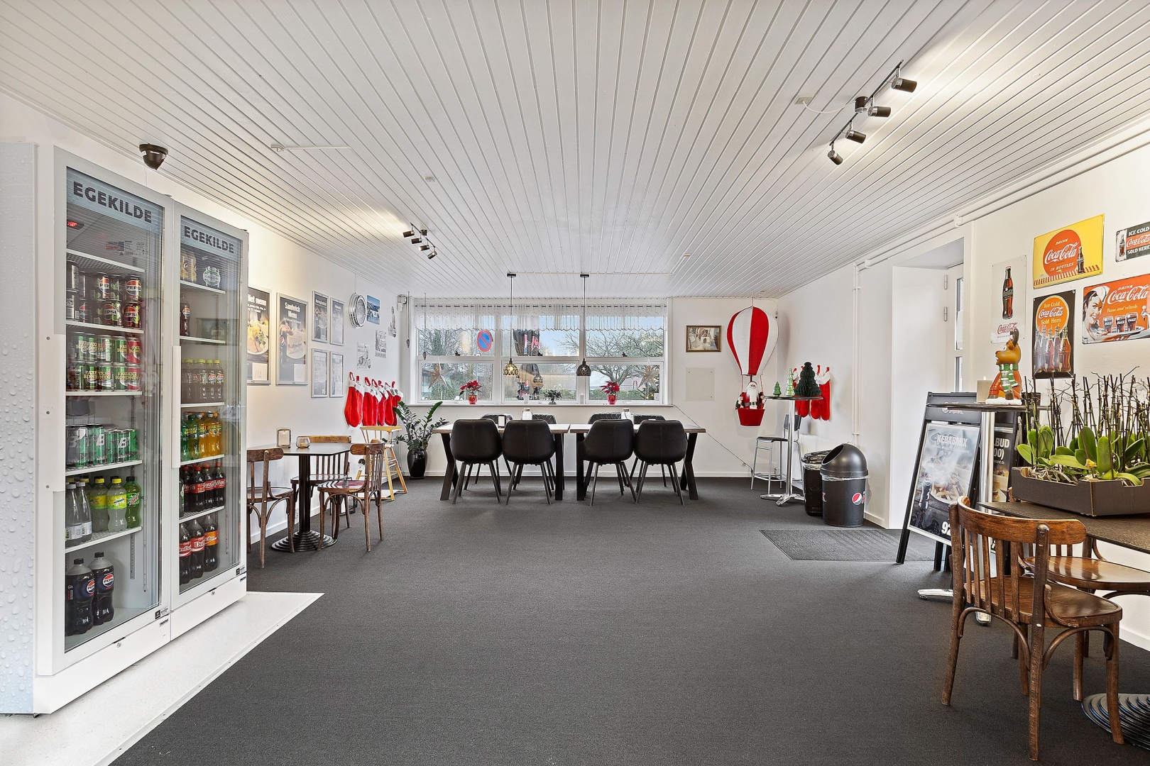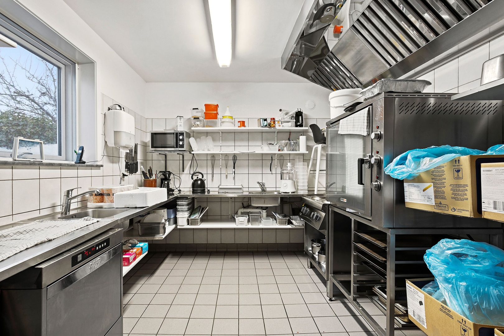 I det tilstødende lokale er der yderligere plads til 40 gæster samt adgang til mellemgang, herre- og dametoiletter, personaleindgang, omklædning og personaletoilet. Dertil kommer et stort og funktionelt restaurationskøkken med stålvaske, stålborde, industriopvasker, ovn og et bredt udvalg af professionelt køkkenudstyr.