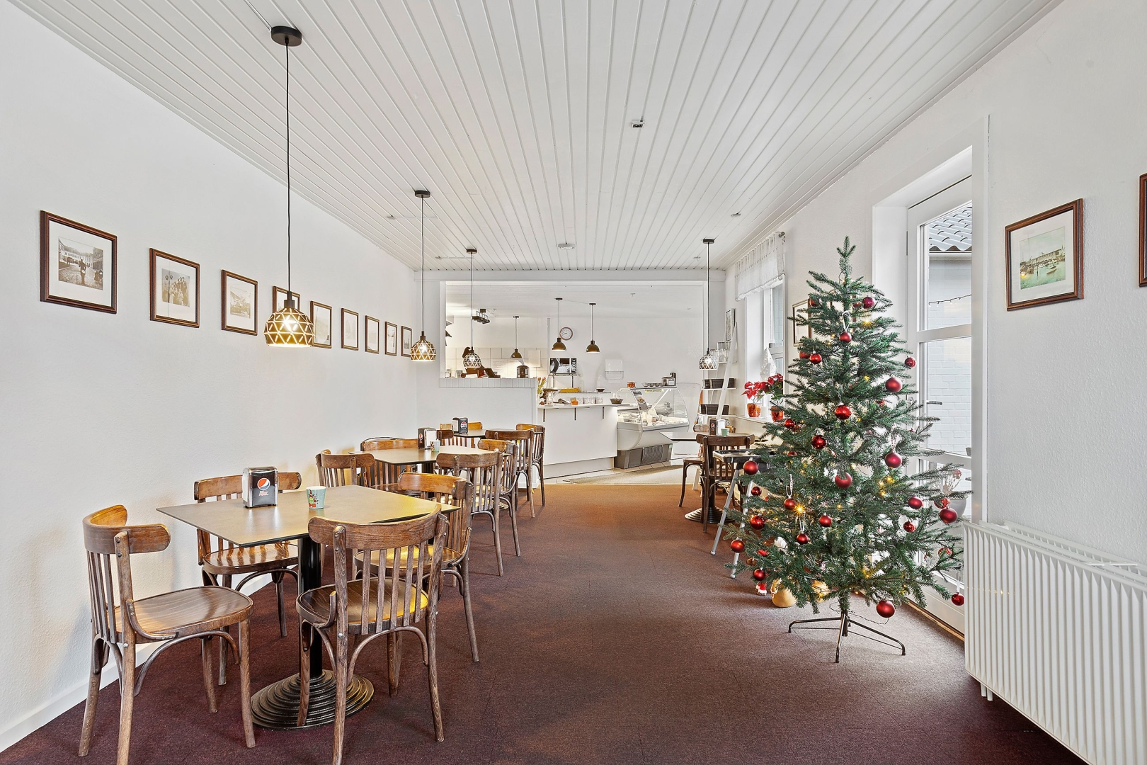 Caféen er beliggende i egen flot og velholdt bygning, der præsenterer sig indbydende både ude og inde. Det hyggelige caféområde rummer 16 siddepladser og en velindrettet betjeningsdisk med alt nødvendigt udstyr til produktion af sandwiches, burgere m.m. både til takeaway og servering på stedet.