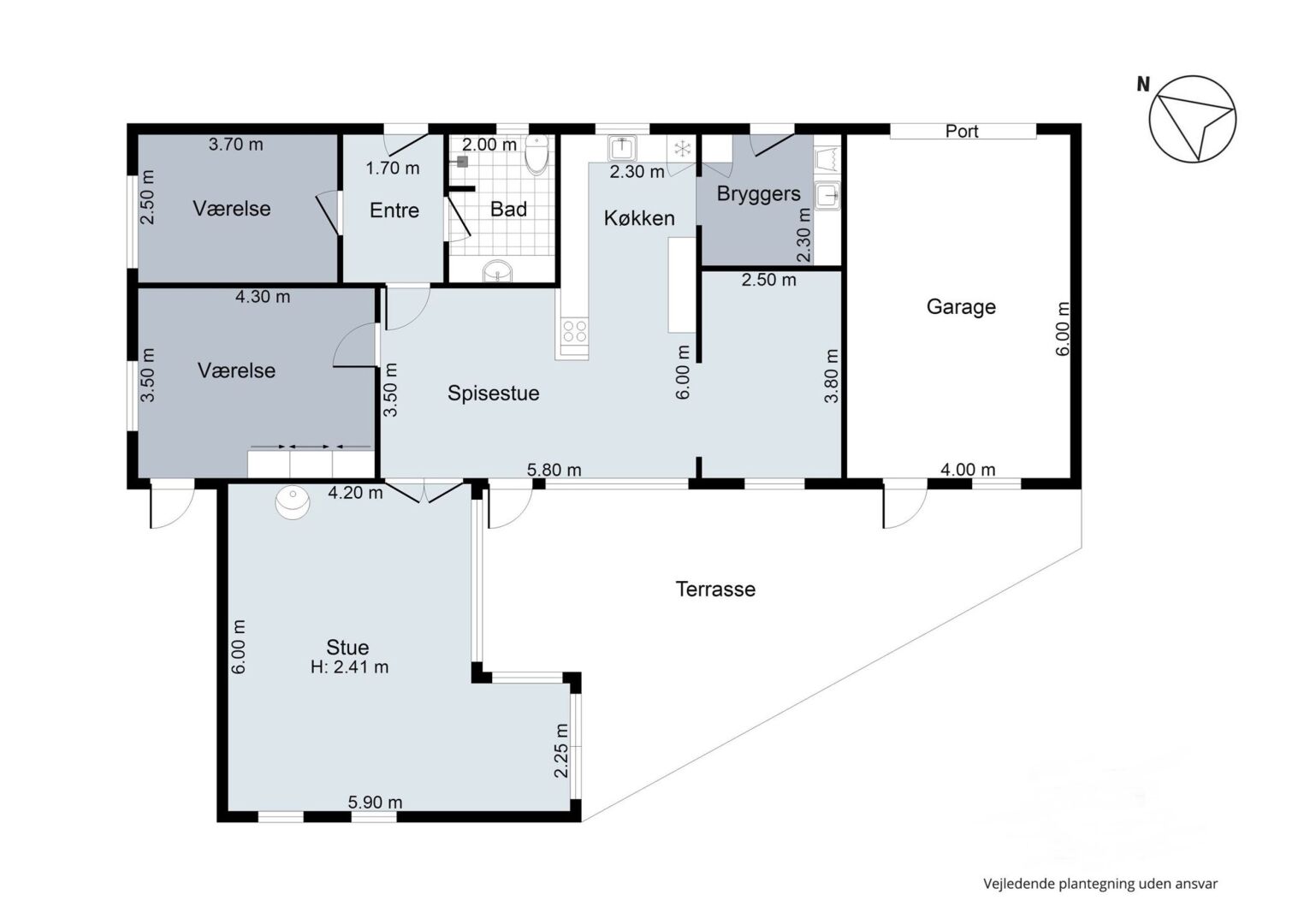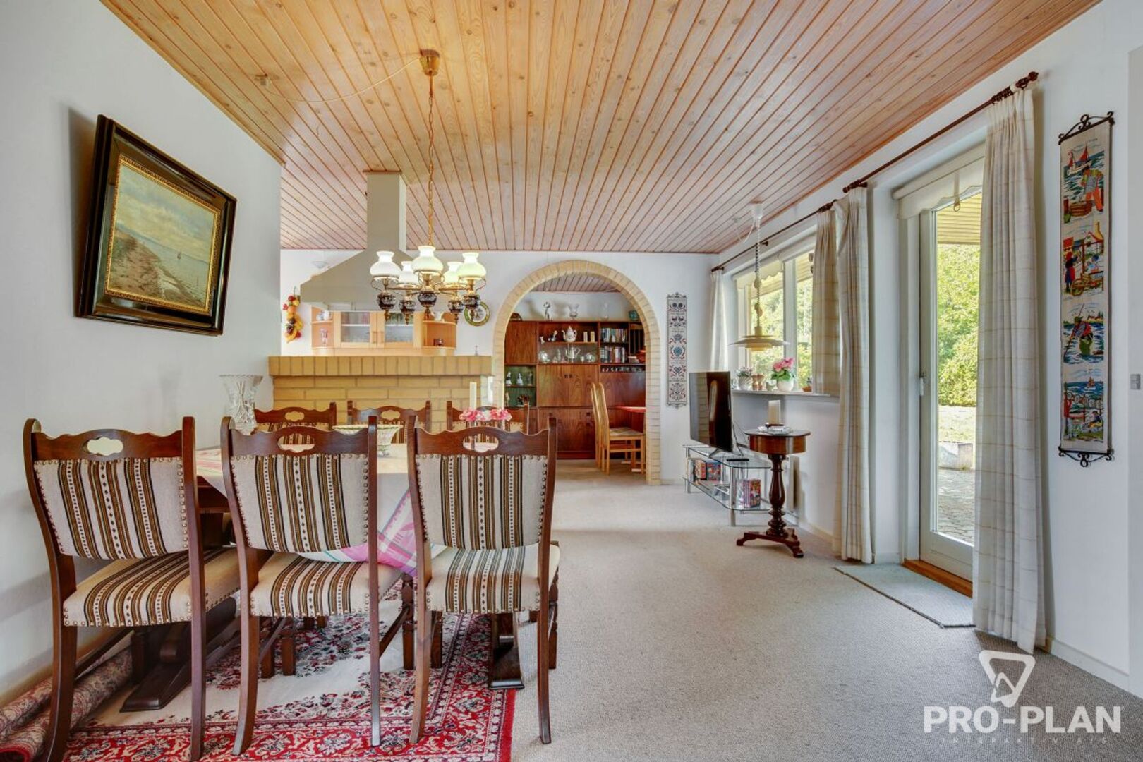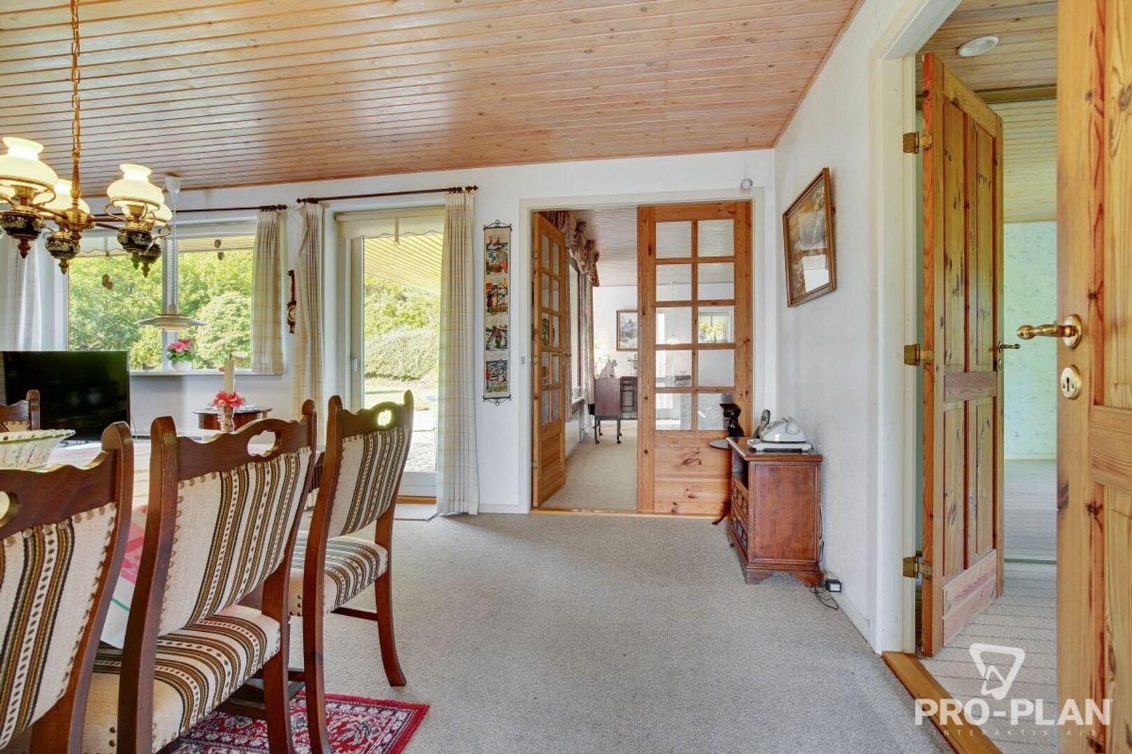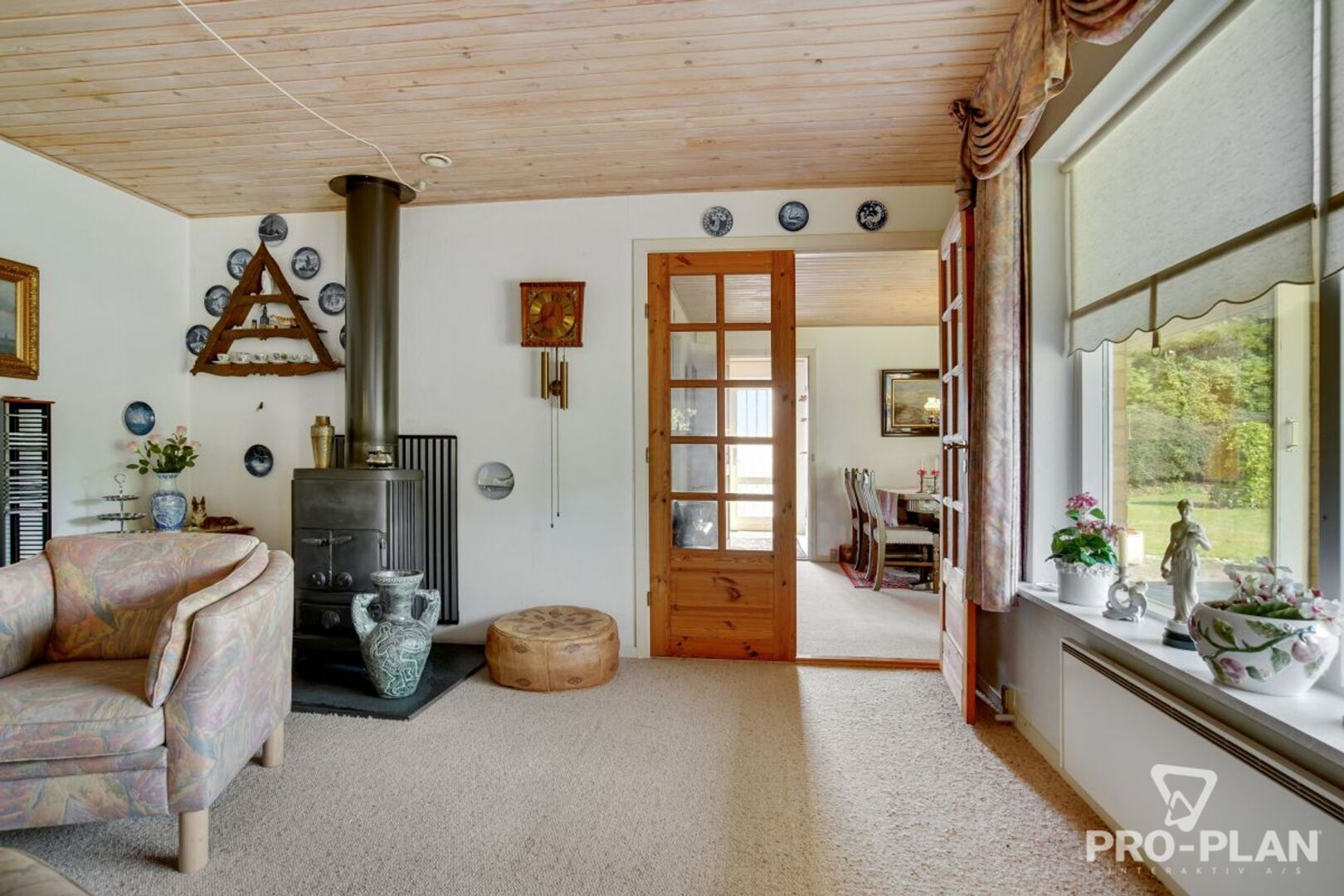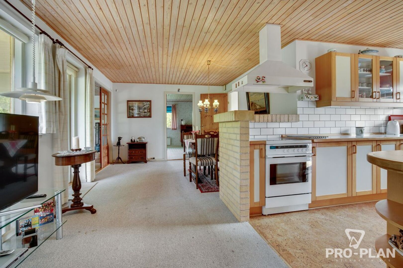 Boligen indeholder et praktisk bryggers med vask og klinkegulv. Fra køkkenalrummet er der udgang til en delvist overdækket, vestvendt terrasse, som giver gode muligheder for at nyde eftermiddag og aften i solen. Opholdsstuen er indrettet med brændeovn (bemærk: denne skal udskiftes) samt dobbelte glasdøre til alrummet, hvilket skaber en god sammenhæng mellem rummene. Derudover findes spisestue/værelse, soveværelse med skabe og direkte udgang til terrasse, et børneværelse samt badeværelse med bruseniche og el-gulvvarme. Entréen byder velkommen til boligen.