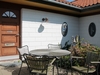 Grunden er på i alt 941 m² og er anlagt med en bred, flisebelagt indkørsel, der fører op til carporten. Haven er overskuelig og let at vedligeholde med et mindre græsareal, buske og enkelte fritstående træer. Udendørsopholdet byder på flere muligheder med blandt andet en vestvendt terrasse, hvor der er læ for vinden, samt en skøn sydvendt terrasse opbygget i hårdttræ. Den sydvendte terrasse danner ideelle rammer for sommerens afslappende stunder her kan man nyde solen, tænde op i grillen eller blot være sammen med venner og familie til langt ud på aftenen. Og når duggen falder, eller vejret driller, er en del af terrassen overdækket, så hyggen fortsætter uforstyrret.