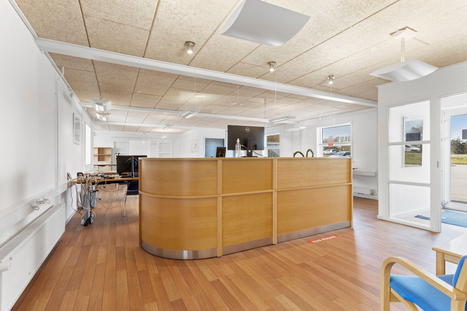 få minutter fra motorvej E45. Ejendommen ligger synligt, men roligt tilbagetrukket fra Ålborgvej - med Bygma