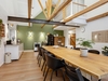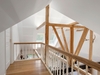 Når man træder ind i boligen, mødes man af en flot hall med elegant trappe og kig til førstesalen. Herfra er der adgang til et fantastisk køkken/alrum med synlige bjælker, loft til kip, stort foldbart terrassedørsparti mod syd, to ovenlysvinduer og direkte udgang til en stor flisebelagt terrasse. Det nuværende køkken er opsat som en midlertidig løsning, hvilket giver den kommende ejer mulighed for selv at vælge drømmekøkkenet og sætte sit eget præg. I stueplan finder man desuden et lækkert badeværelse med glasafskærmet bruseniche, væghængt toilet og stilrent vaskemøbel, en hyggelig opholdsstue med synlige bjælker og udgang til sydvendt terrasse, to gode værelser samt bryggers og entre med praktisk adgang til garagen.