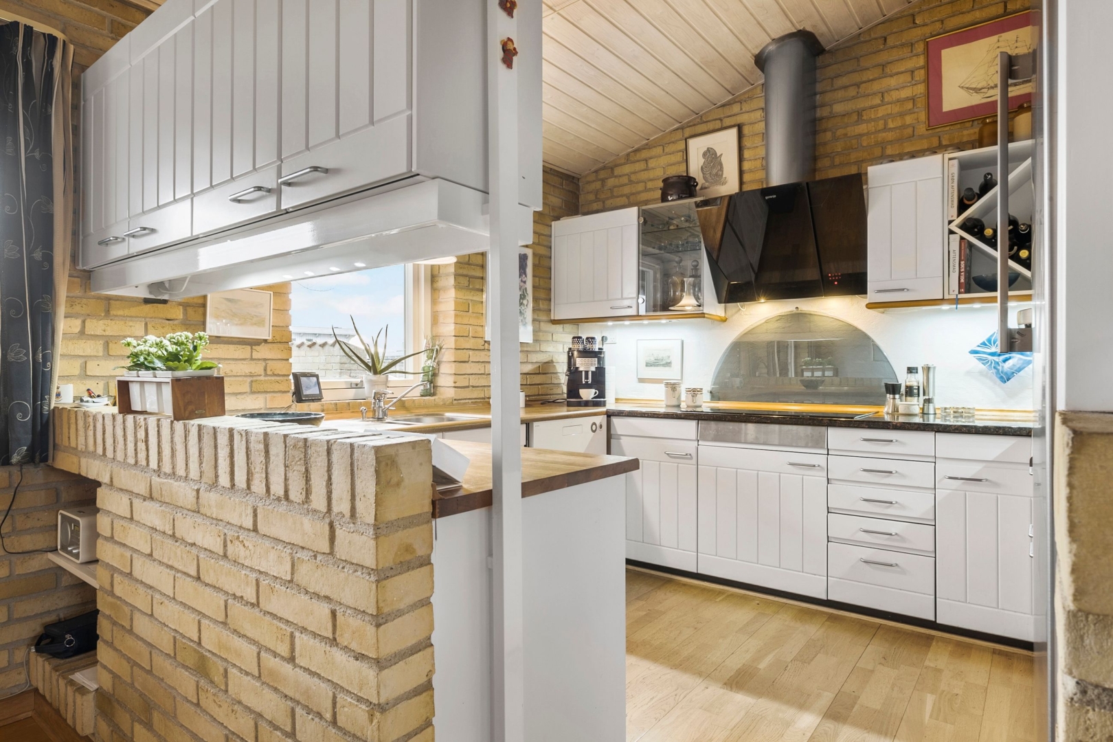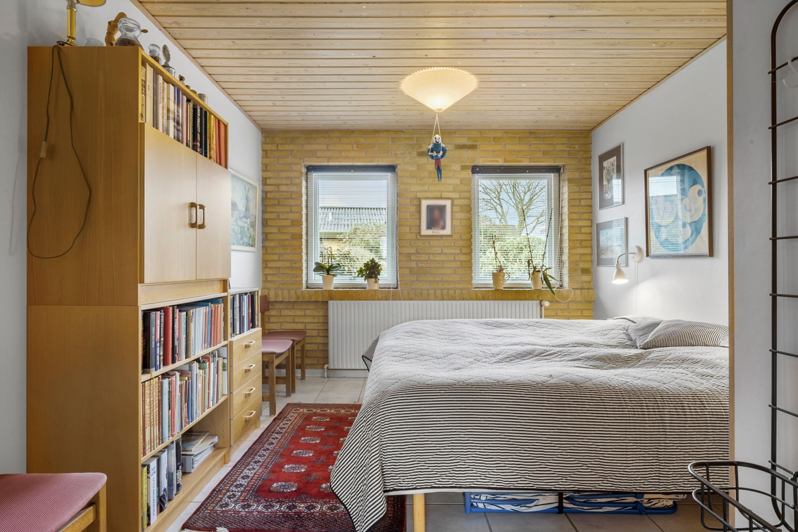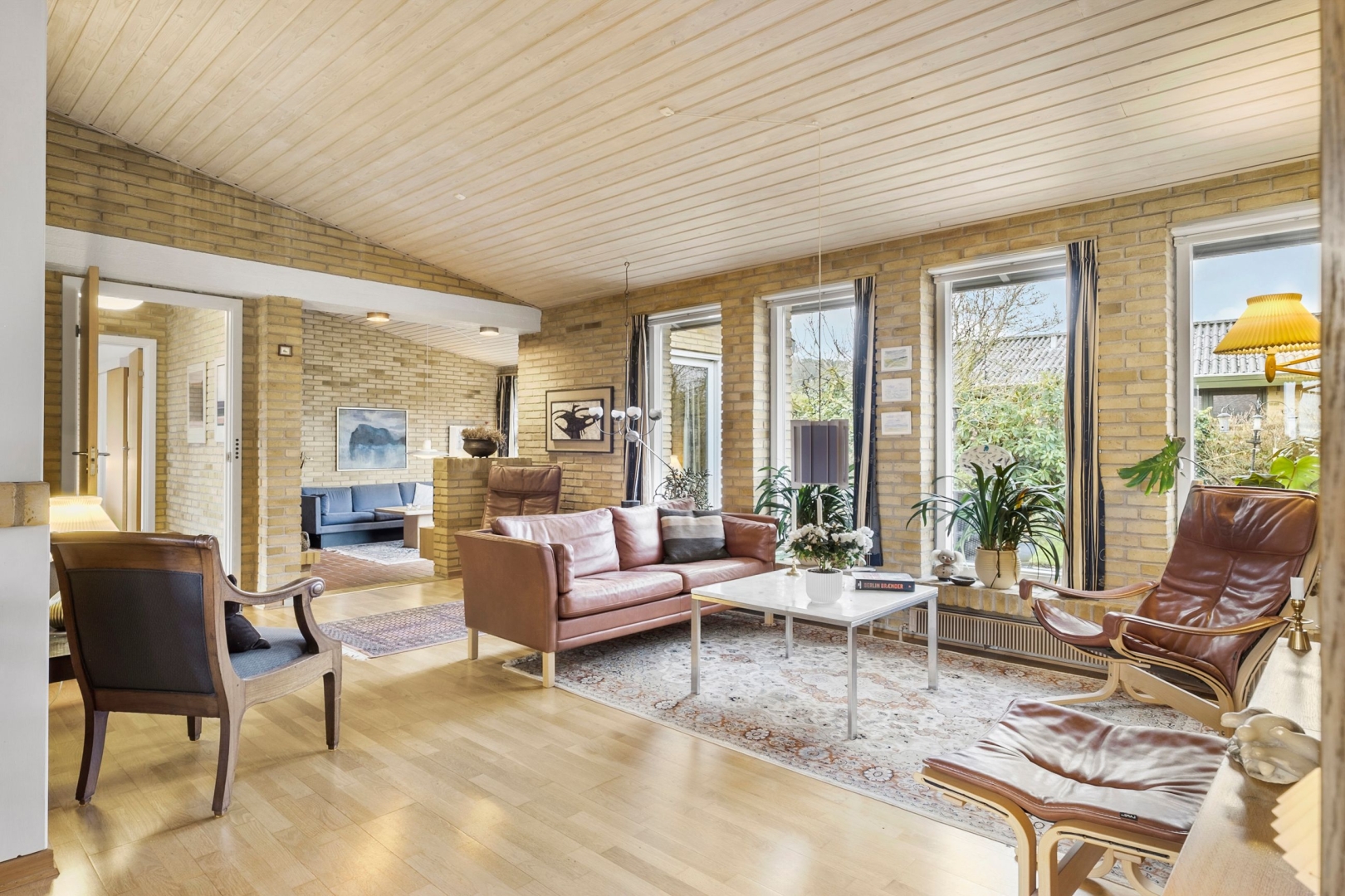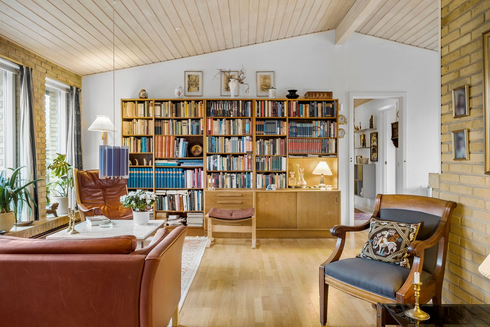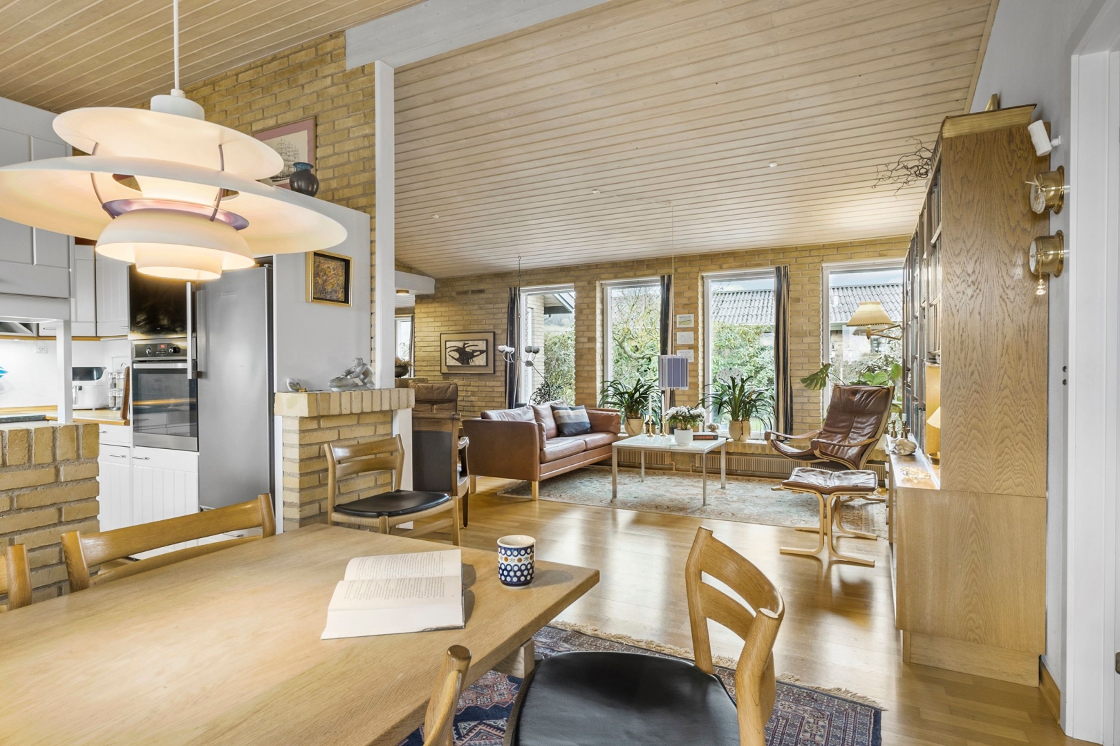Er I på udkig efter en villa, hvor I drømmer om at bo tæt ved vandet og i en arkitektonisk anderledes og spændende villa, så bør I kigge nærmere på Marinus Bødkers Vej 20. Denne villa, der blev opført i 1980, er tegnet af den anerkendte arkitekt Uffe Mayntzhusen. I tæt samarbejde med arkitekten har den nuværende ejer valgt utraditionelle løsninger, både udvendigt og indvendigt. Villaen er blandt andet opført med en forskudt tagkonstruktion, murede gavle og et flot rødt vingeteglstag. Indvendigt er villaen grundmuret, og flere opholdsrum har loft til kip, hvilket skaber en særlig rummelighed og lys.