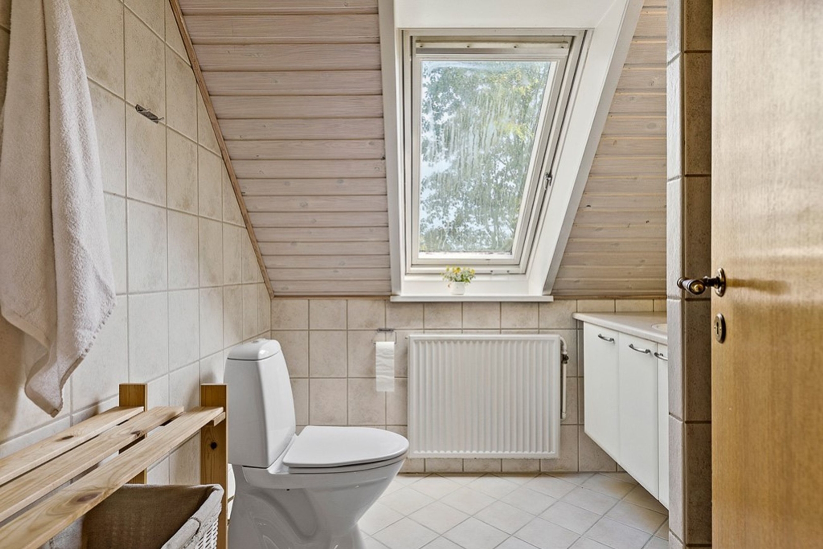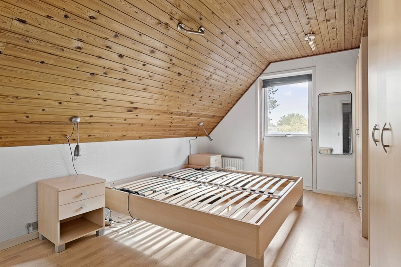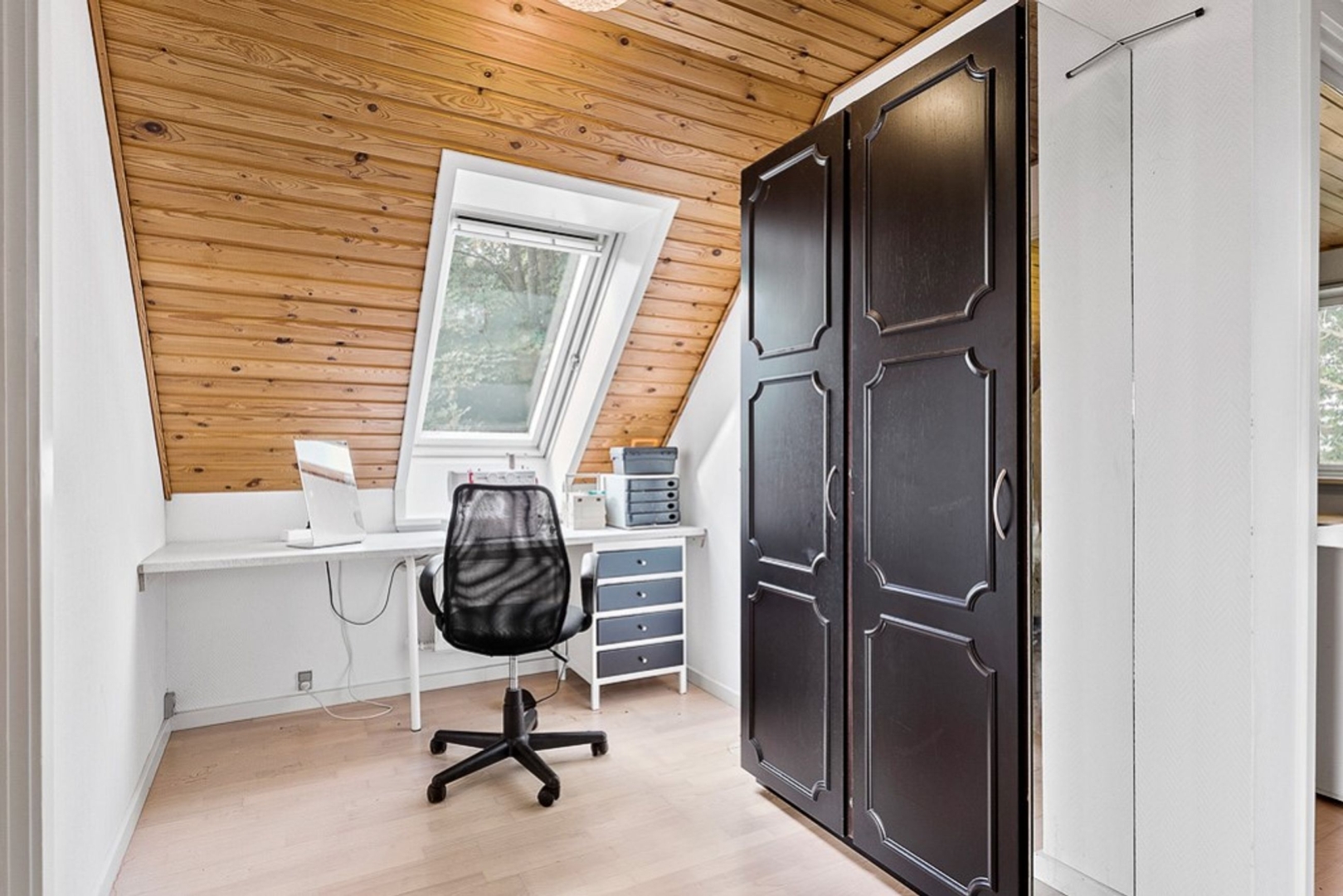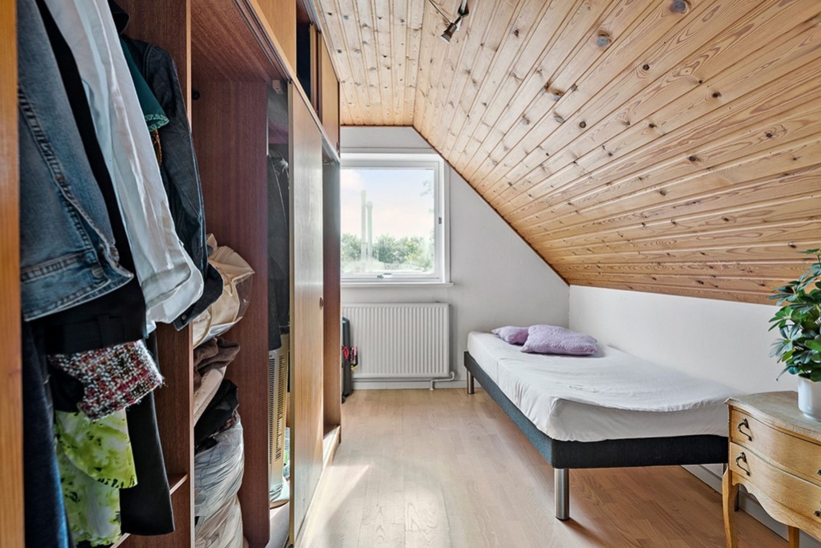 fra mellemgang er der trappe til overetagen som indeholder - forstue - 2 store gavl værelser - badeværelse med bruser - stor tagterrasse