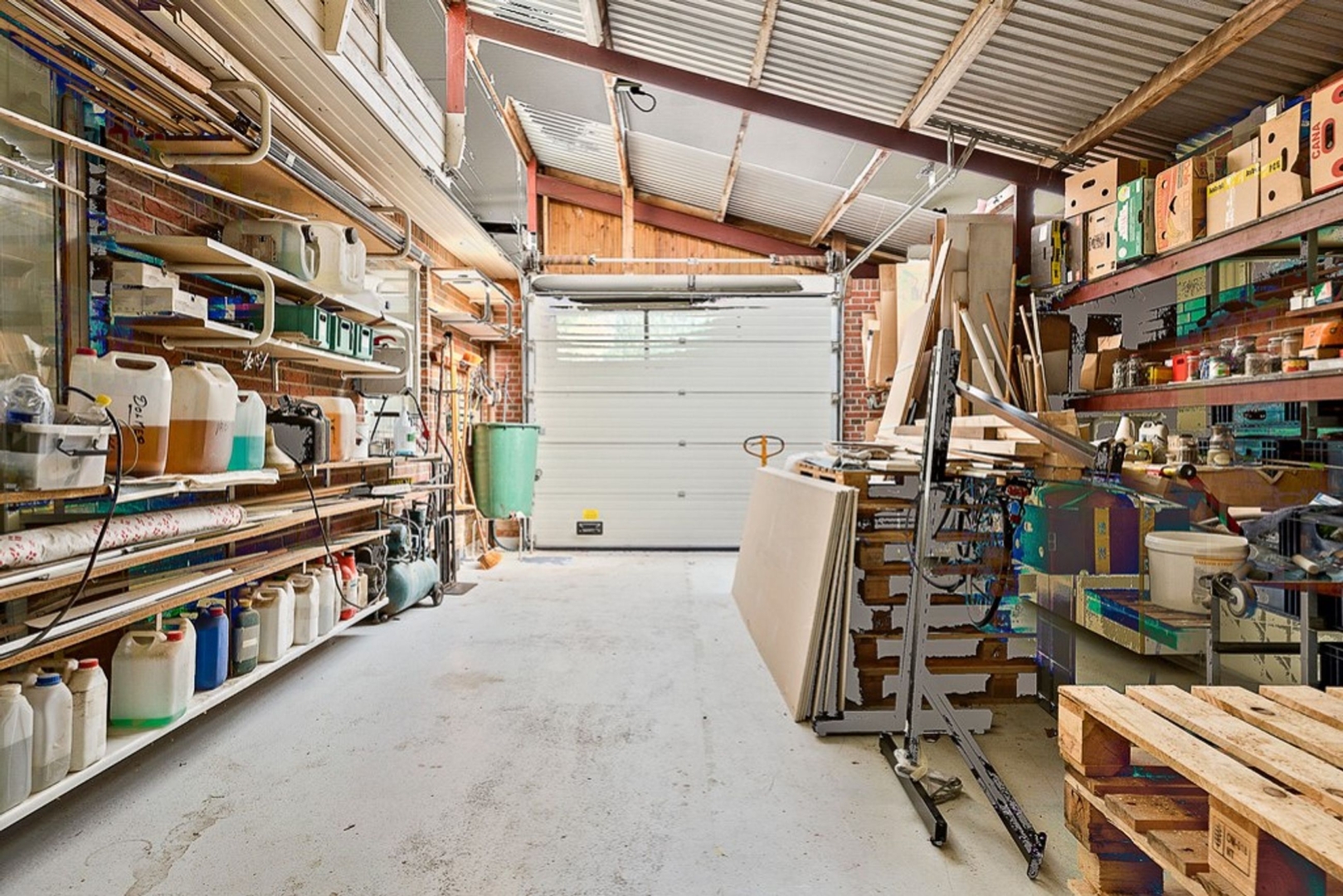 Fra bryggerset er der adgang til værkstedsdelen, som er opdelt i to rum: et opvarmet værksted og et uopvarmet lager. Begge rum har porte. Derudover er der carport og flere disponible bygninger med træbeklædning.