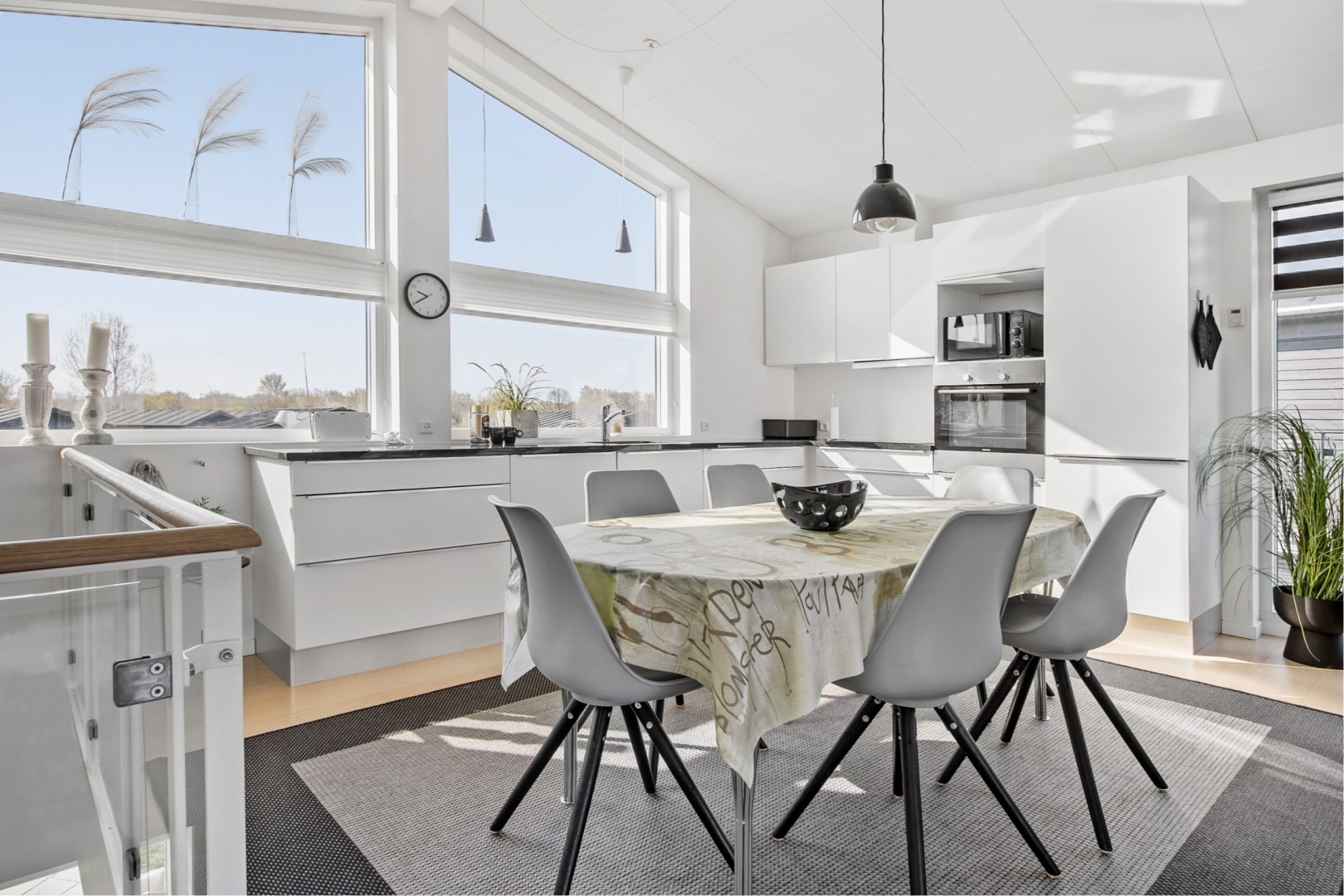 I den nordlige del af Frederikshavn og med havudsigt, ligger denne lækre helårsvilla/feriebolig som er opført i 2012 og som er med et velindrettet boligareal på 108 m² + ca. 41 m² terrassearealer på 1. sal. hvoraf ca. 17 m² er overdækket.