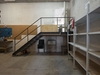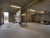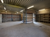 Koldlager med stålplader som tagbelægning og træbeklædning og støbt gulv med afløb.