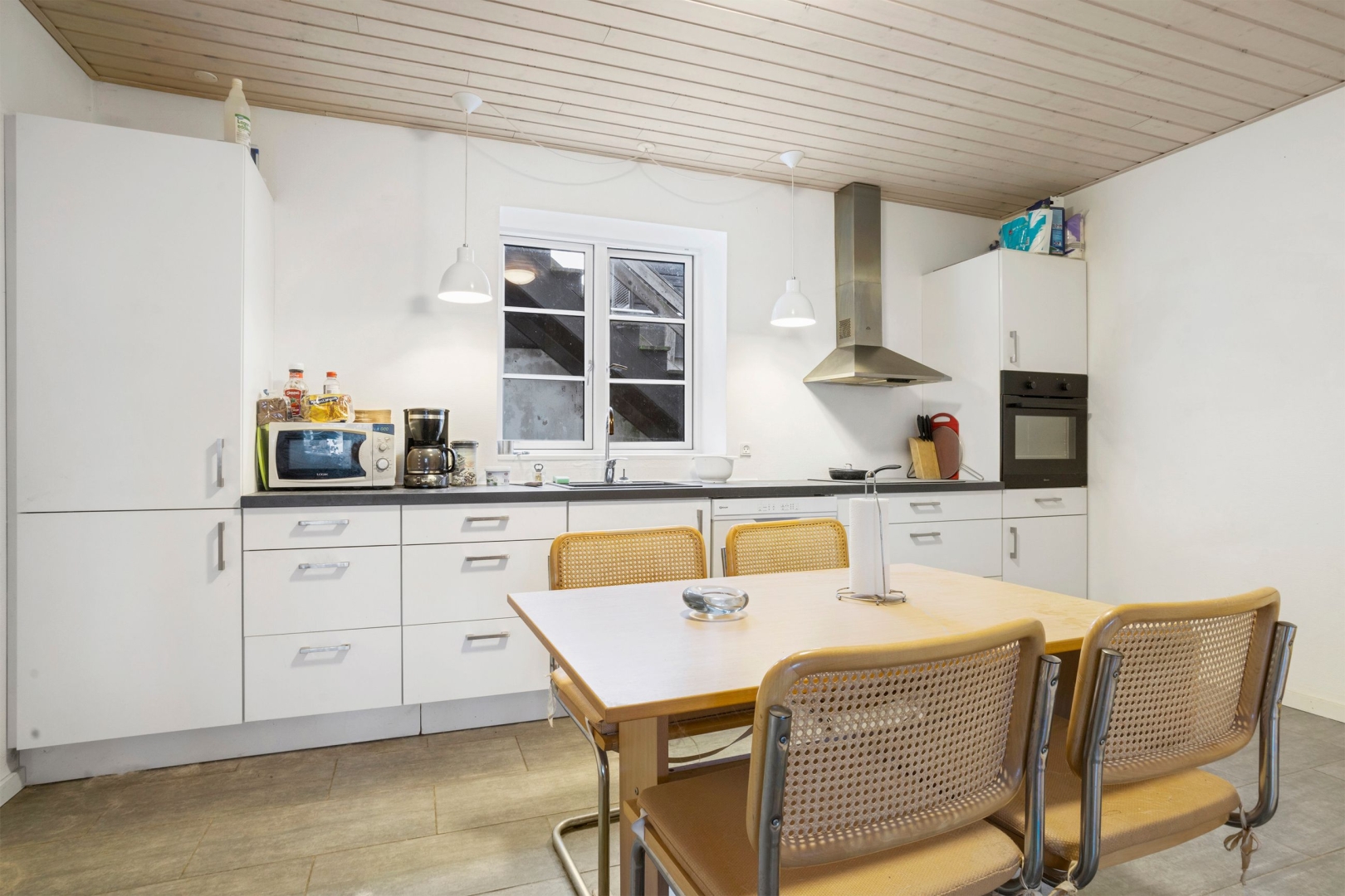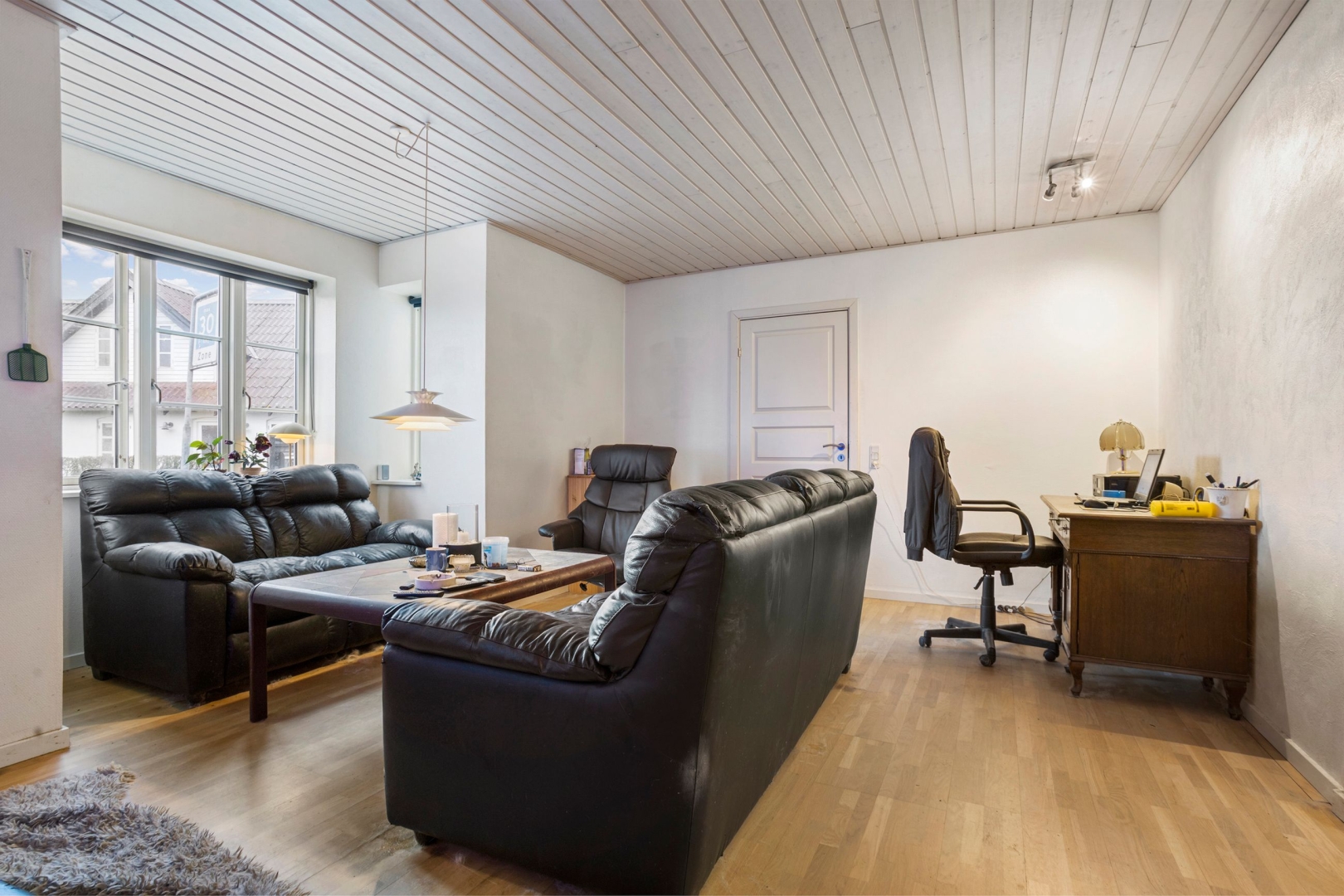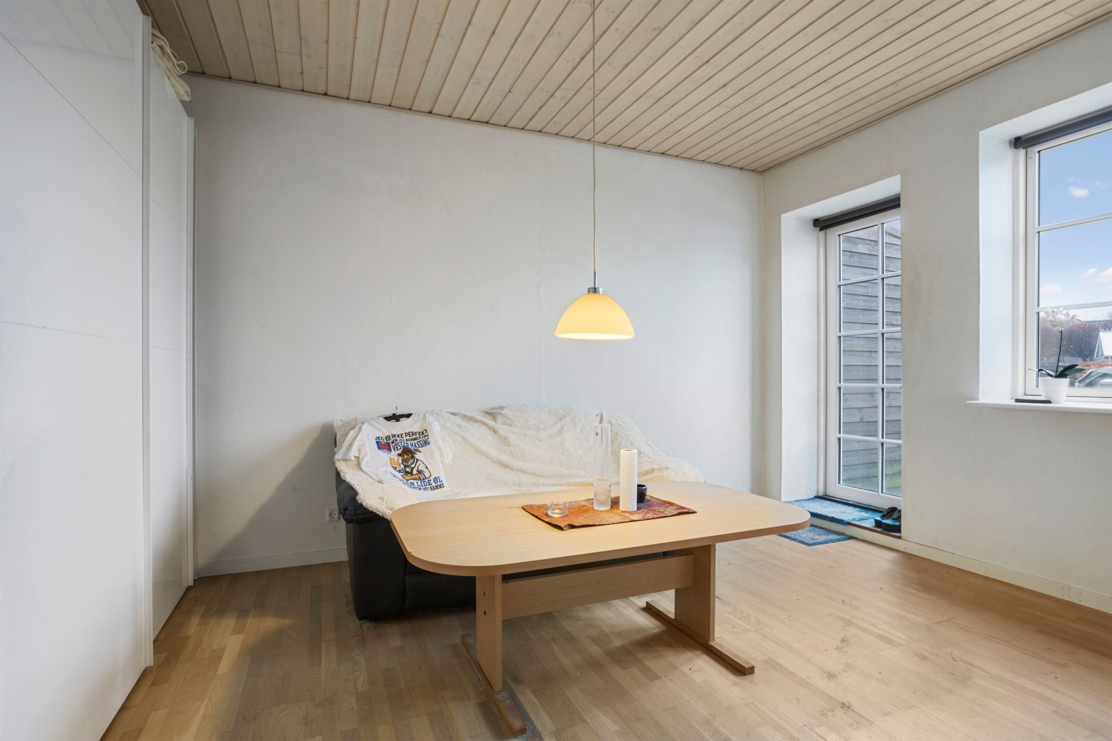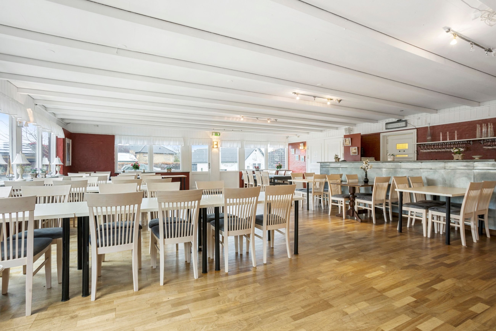 ·Lejlighed tilknyttet selskabslokalet: Der har tidligere været indgang til en separat lejlighed, som består af entre, et nyere elementkøkken med spiseplads og opholdsstue, et soveværelse, to værelser og et nyere badeværelse.